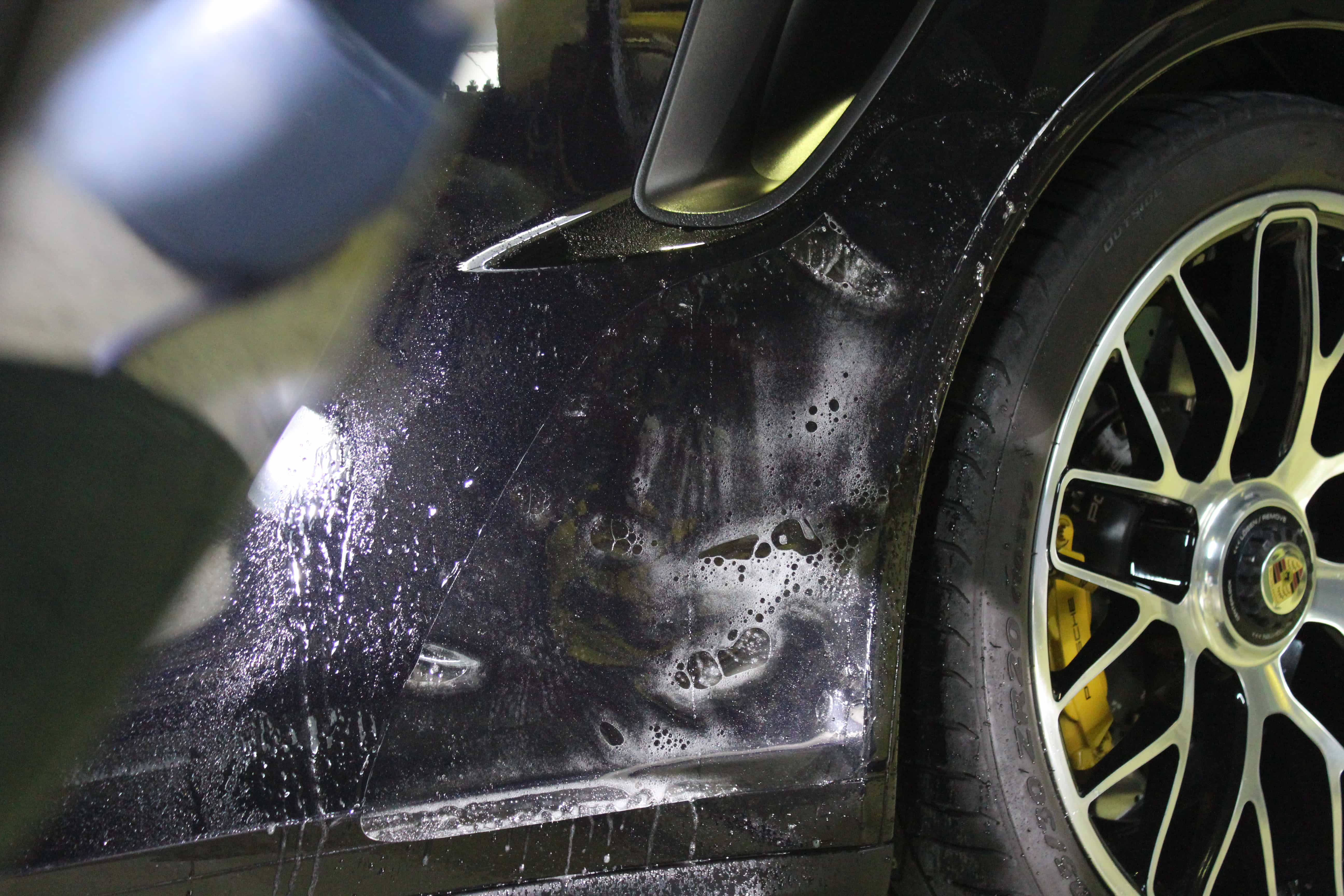 タイヤで跳ね上げた石でダメージ (ペイントプロテクションフィルム)