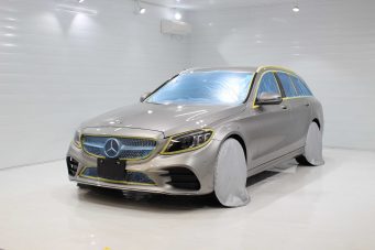 MベンツCクラスSWにボディーコーティングとプロテクションフィルム施工。