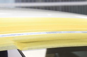 マセラティ・クアトロポルテの窓枠モールに腐食防止プロテクションフィルム施工。