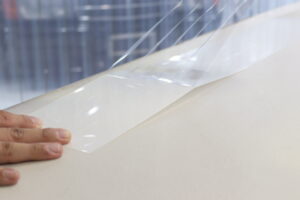 欧州車の窓枠メッキモールにプロテクションフィルム施工。
