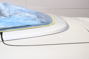 欧州車の窓枠メッキモールに腐食防止プロテクションフィルム施工。