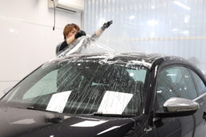 ピアノブラックパネルのルーフをプロテクションフィルムで守る