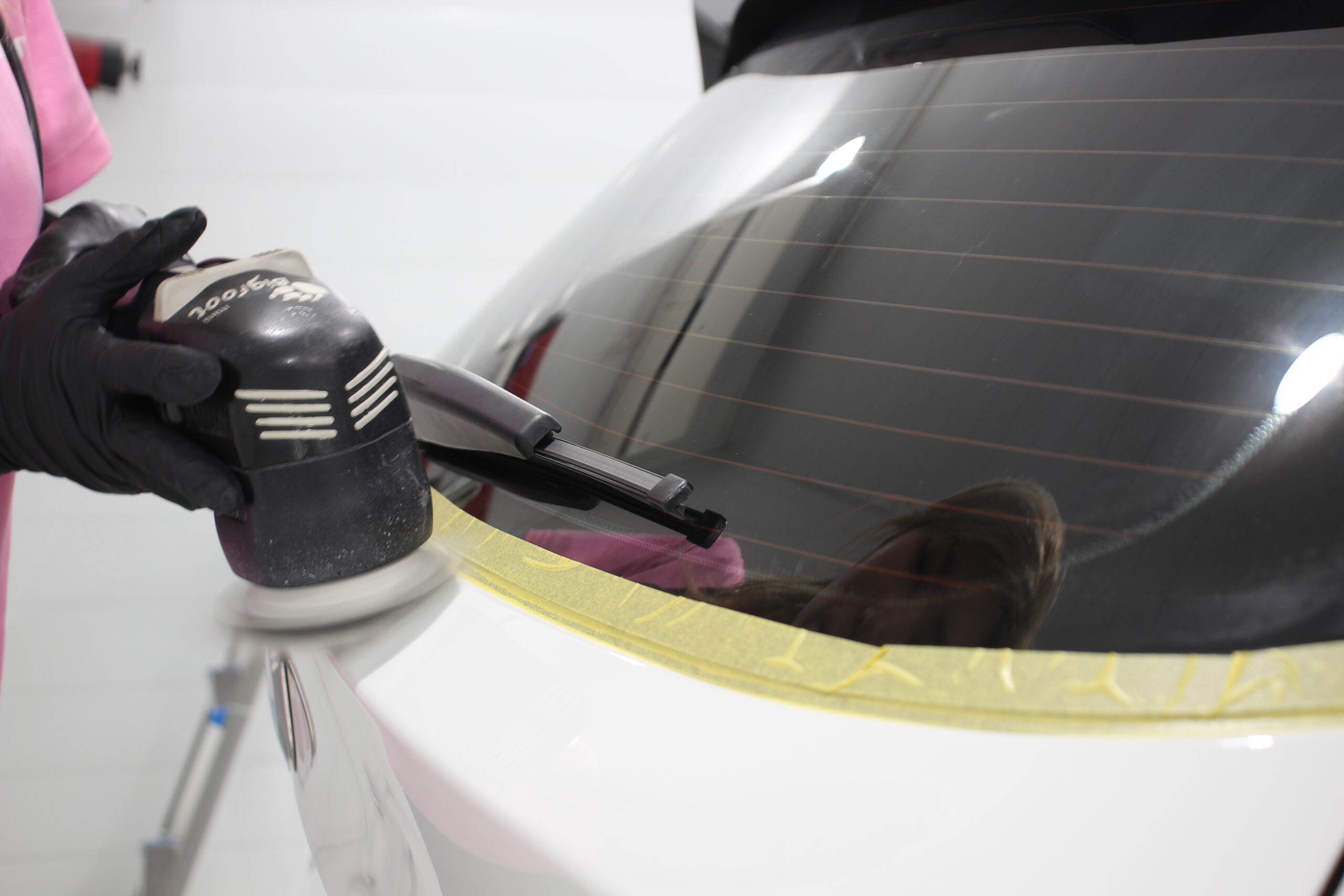 少しお疲れ気味になってしまっているボディーを、表面を整えると共にボディコーティングを施工するために下地も作ります。