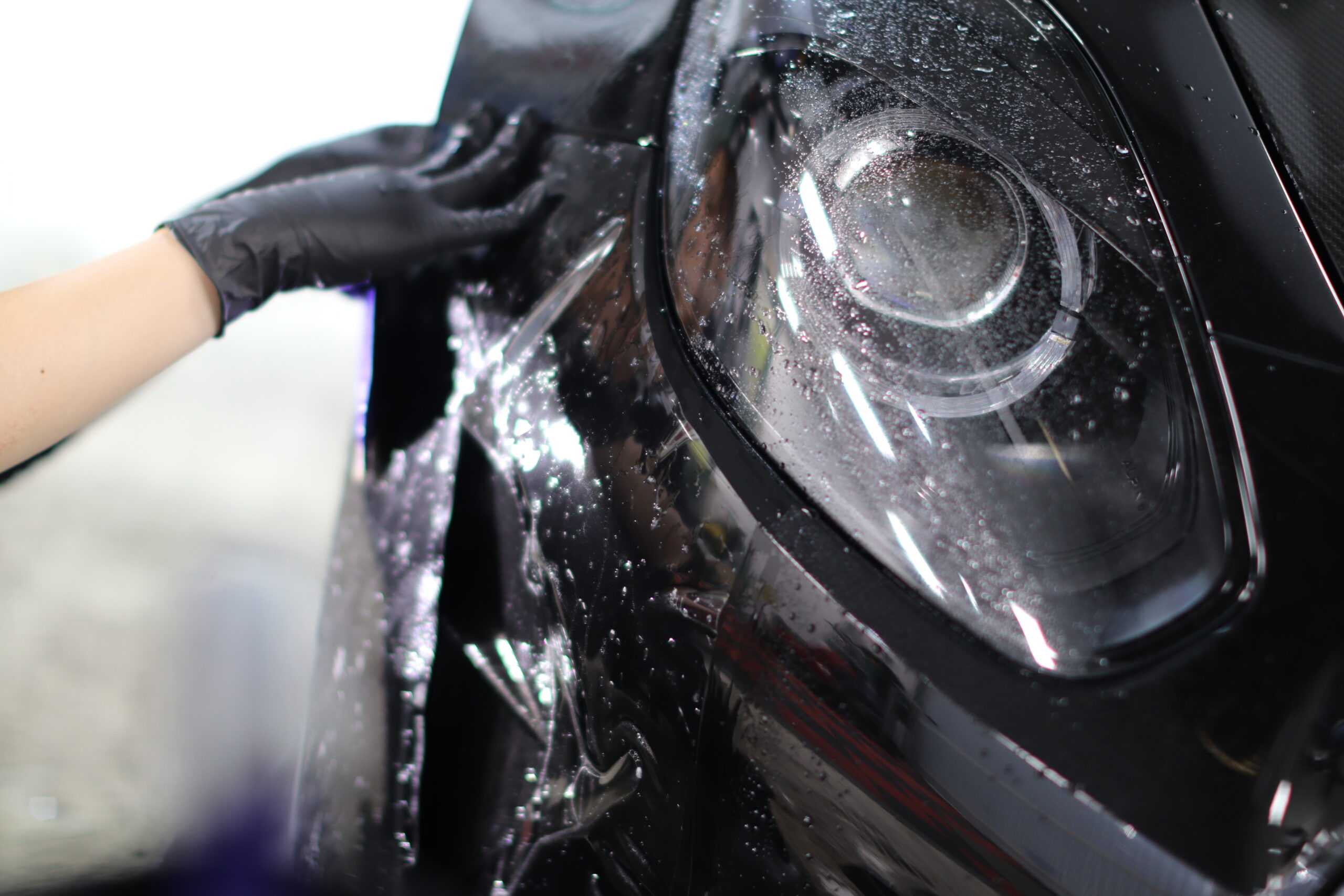 スポーツ走行を楽しむためにフロントバンパーなどに施工したプロテクションフィルムが今回ダメージを受けてしまい、ダメージ部分を貼り替えさせていただきます。