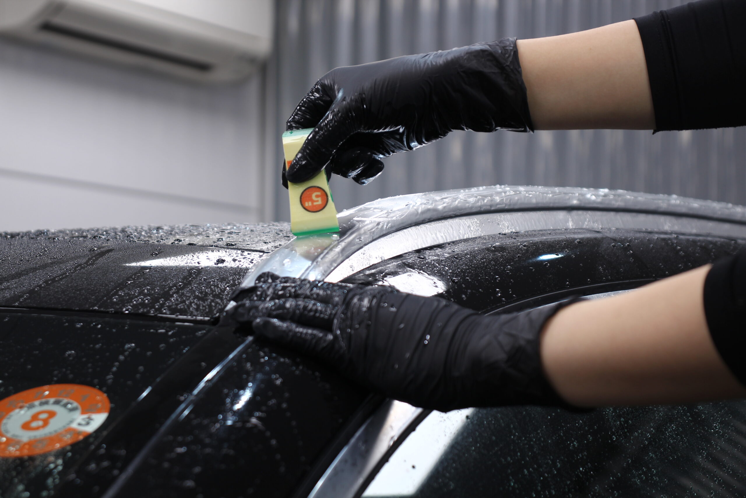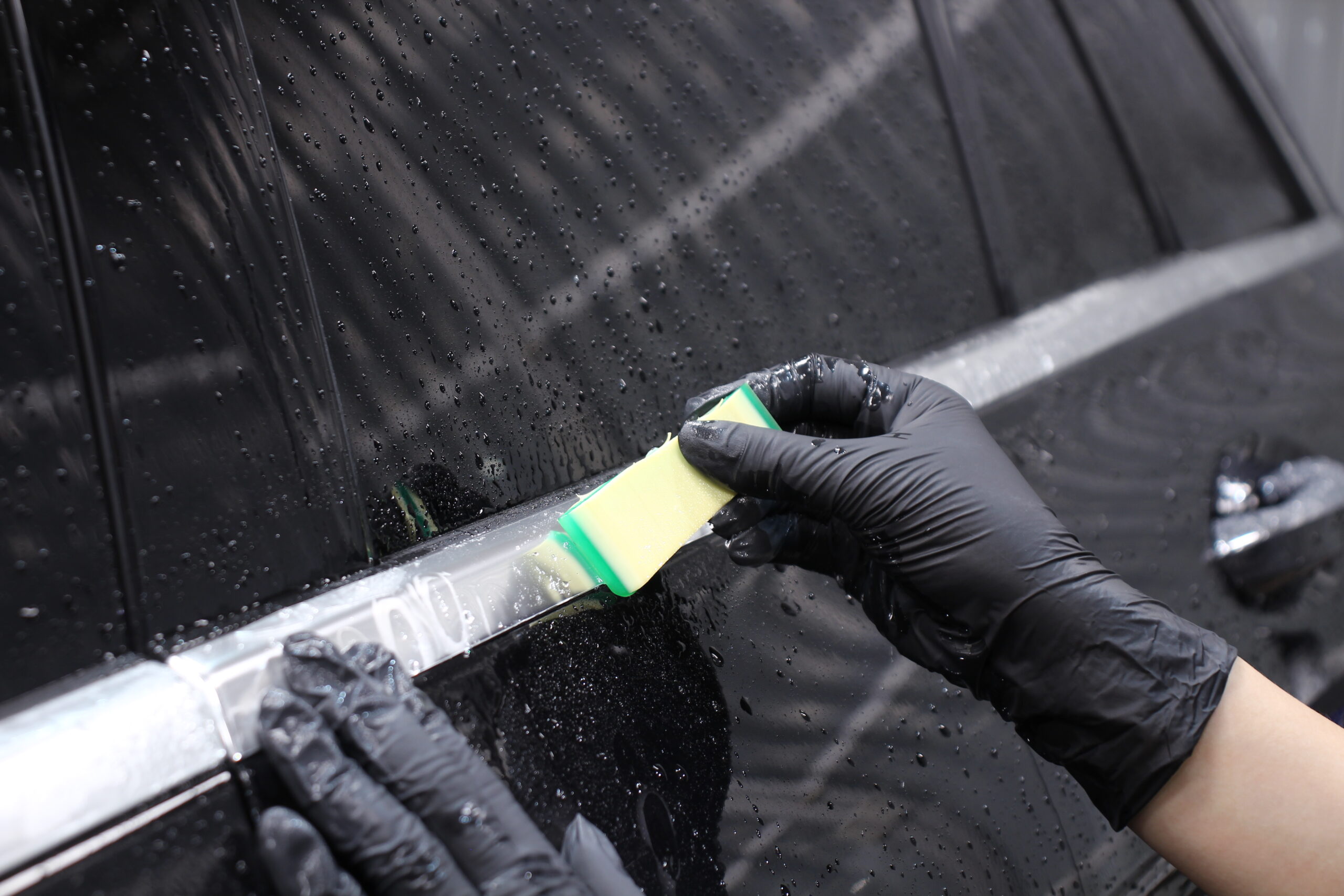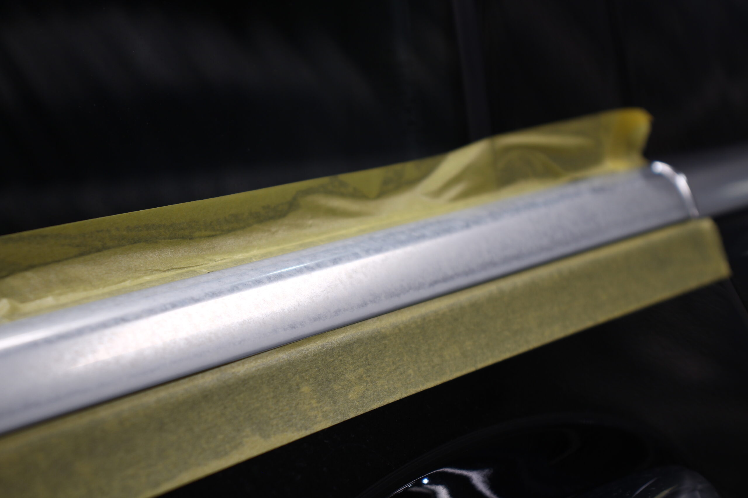 欧州車の窓枠モールが腐食してしまった物を綺麗にしてプロテクションフィルムで保護する