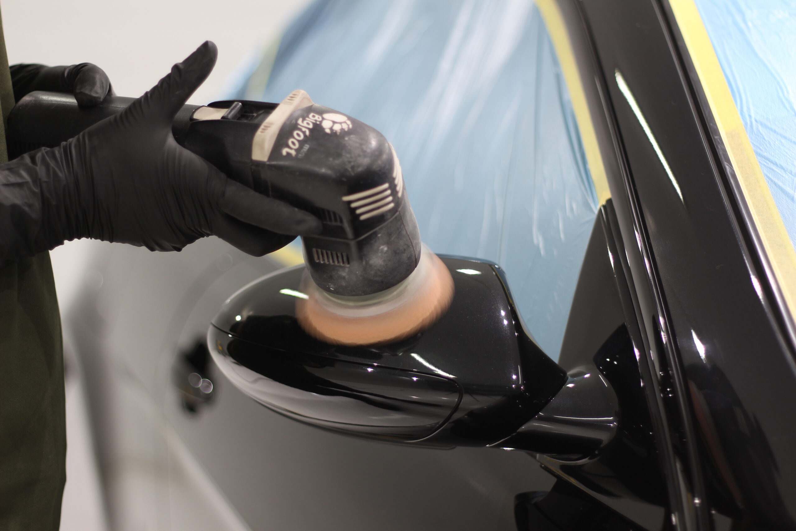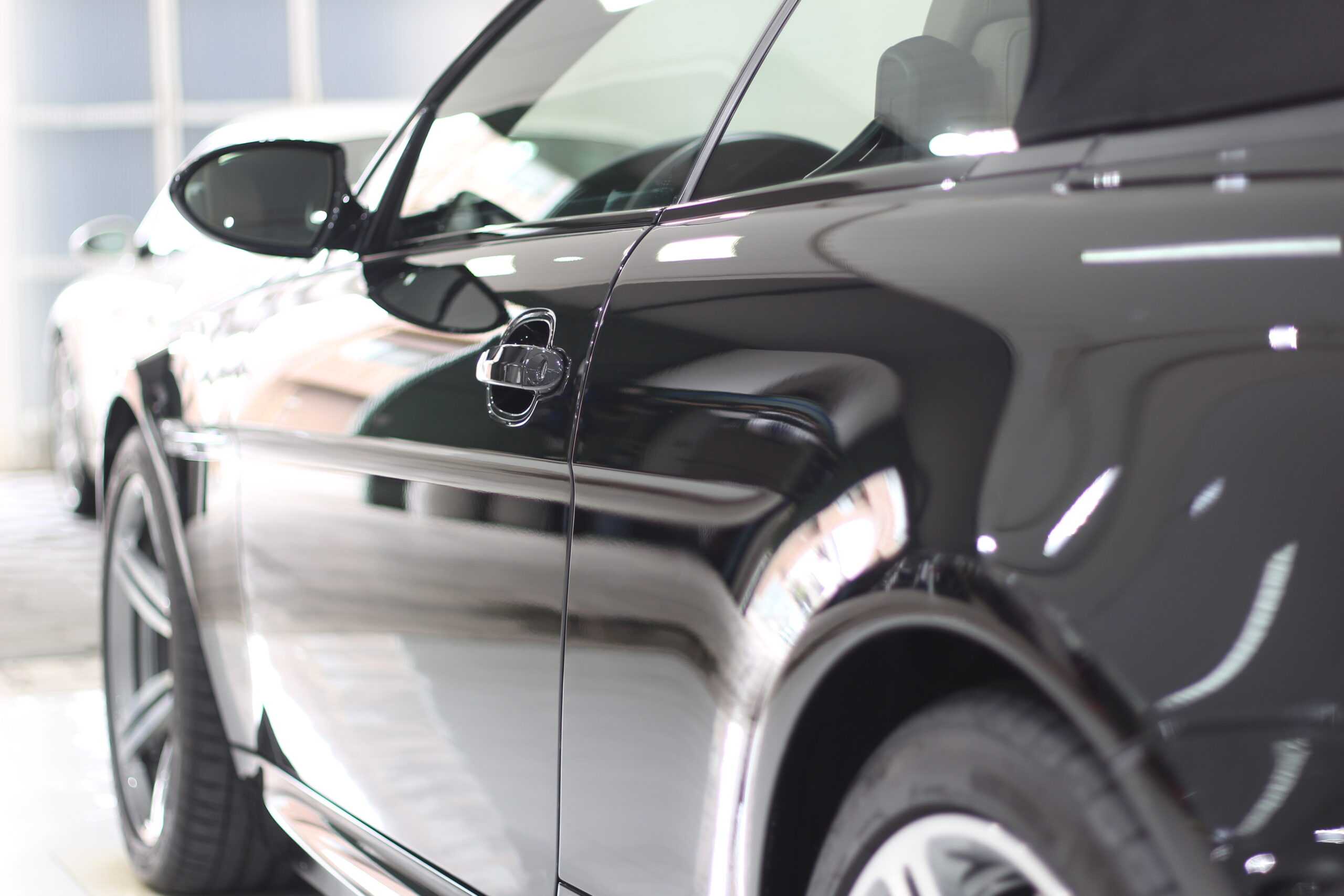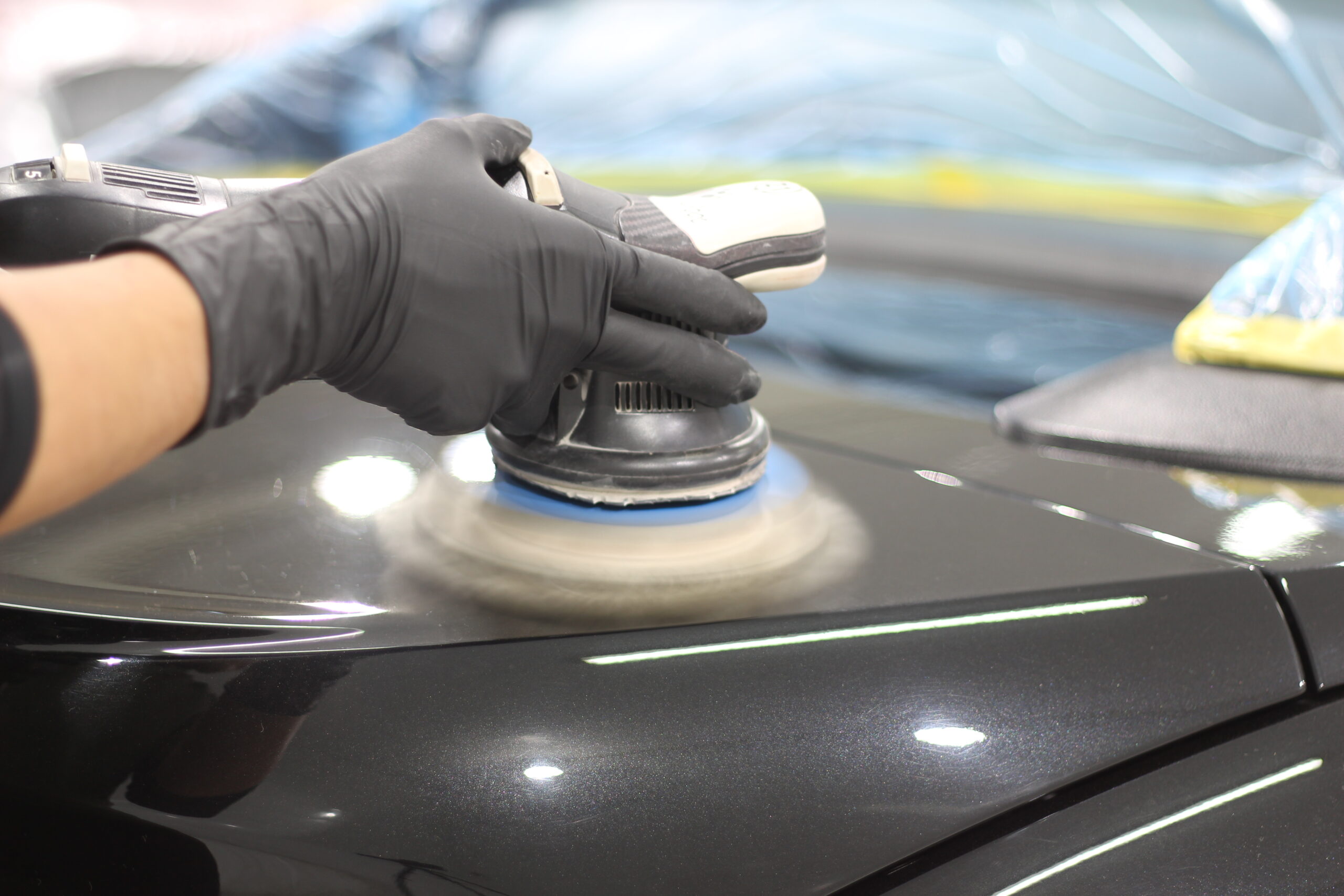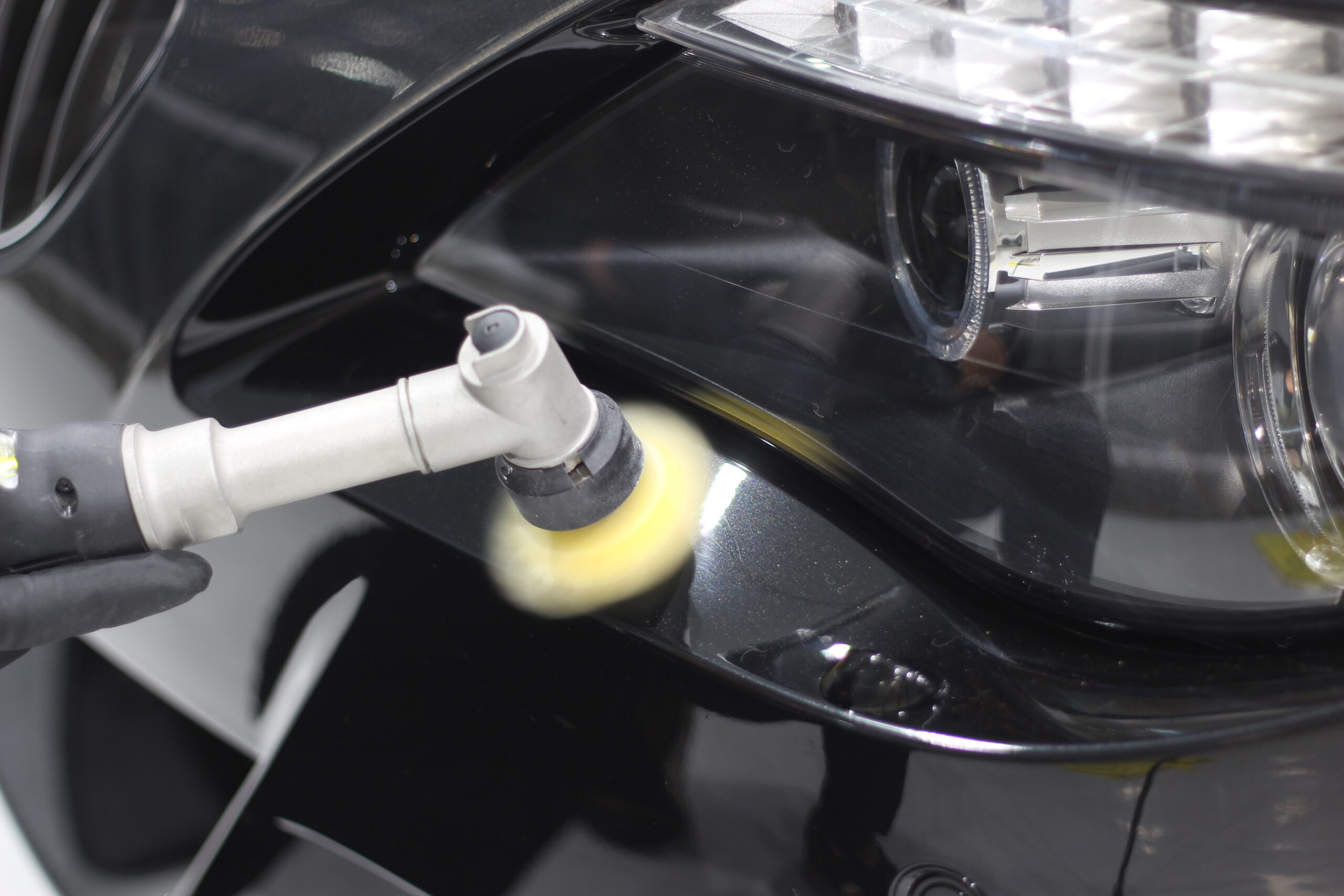 欧州車特有の非常に高硬度な塗装に長年のスクラッチ傷などが刻まれてしまい、通常の研磨ではなかなか除去して美しい状態に戻すことが難しいですが、ここは職人の腕と長年のノウハウで抜群の美しい塗装面に変化させる研磨術で下地処理をおこないます。