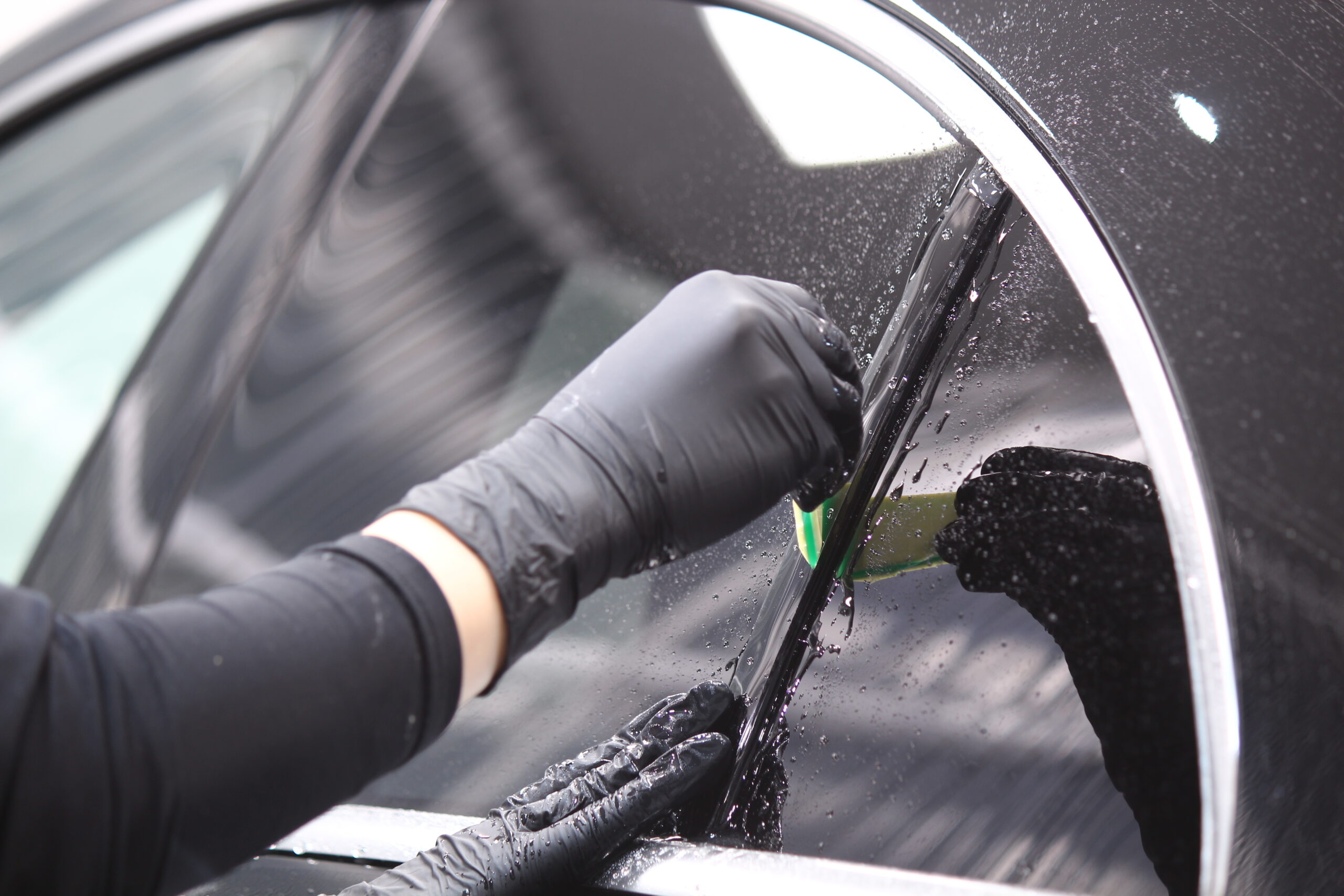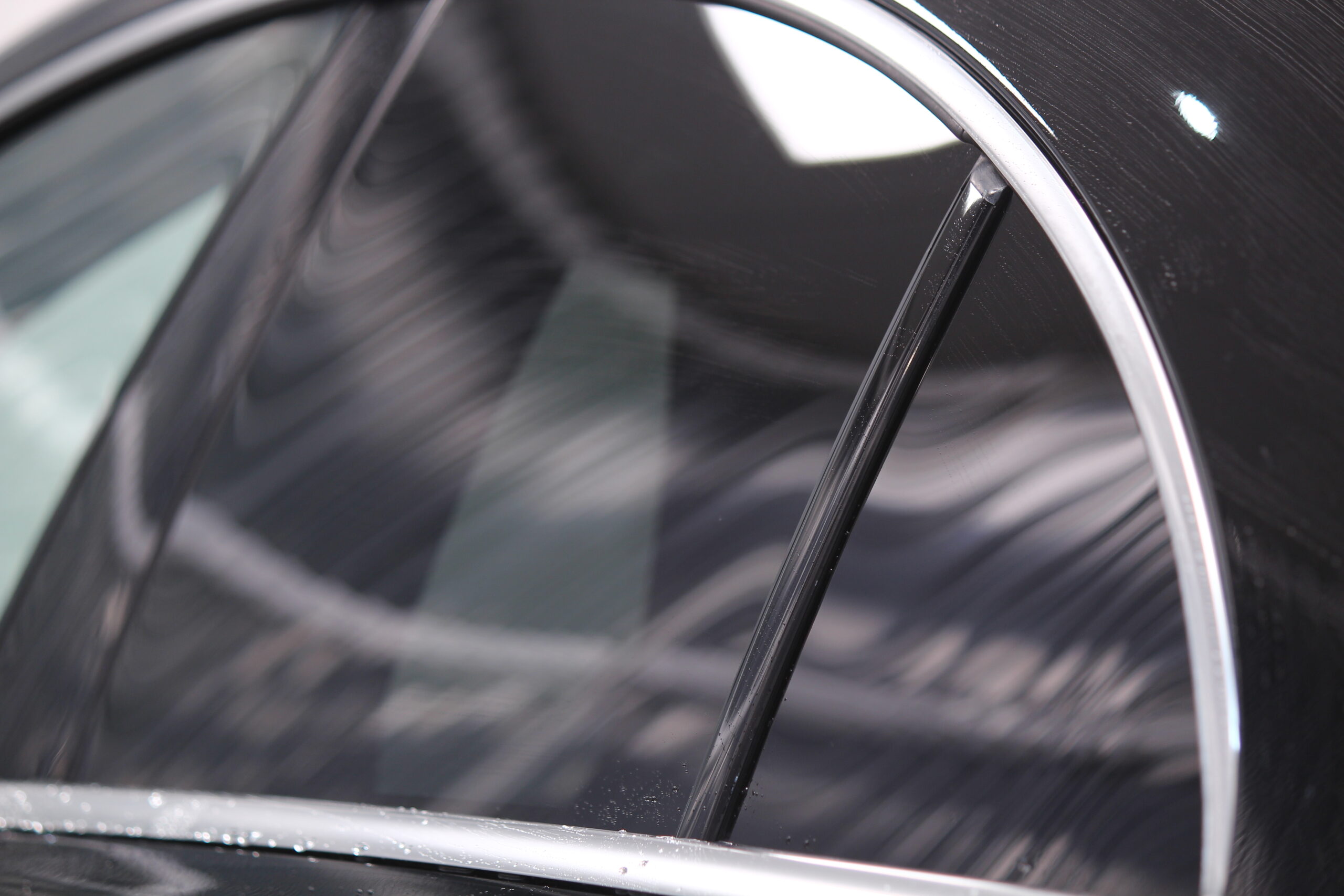 白く錆びる欧州車の窓枠モールにプロテクションフィルム施工