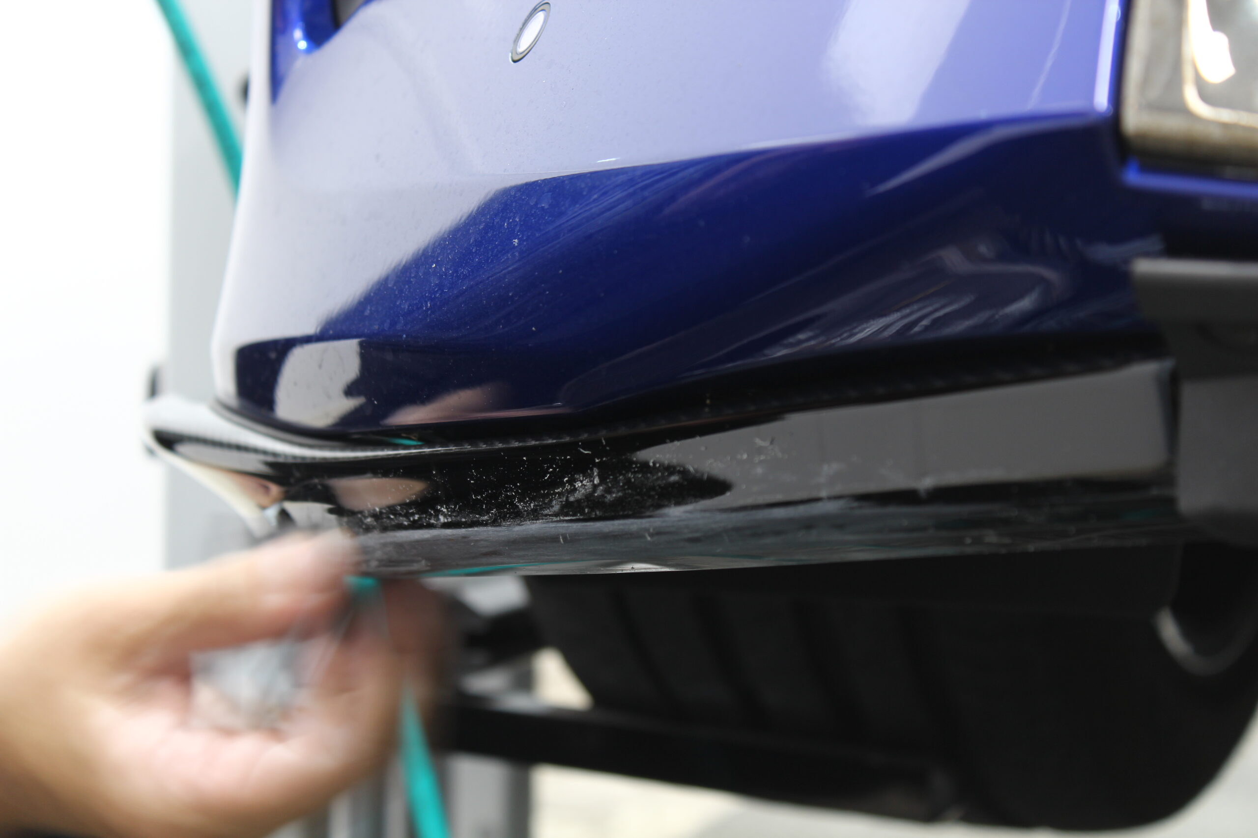 プロテクションフィルムと言えども耐えられないダメージは多くあり、今回のようなフロントバンパーリップ部分に貼ったカーボンプロテクションフィルムも段差などにヒットし激しくダメージを受けてしまうと削れ破れてしまいます。