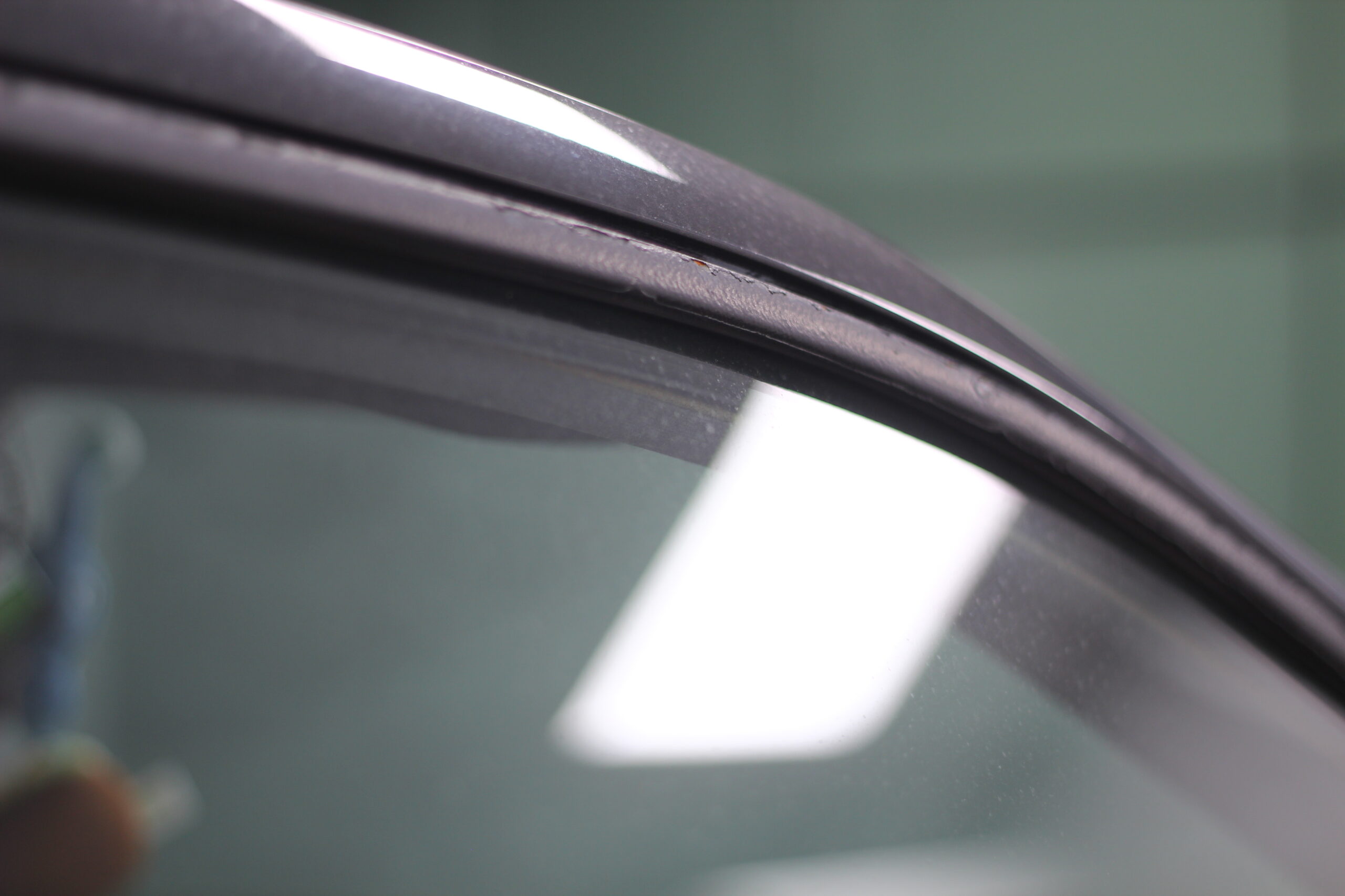 今回このボロボロに劣化した塗装を除去しグロスブラックのフィルムで窓枠のリメイクをしていきます。