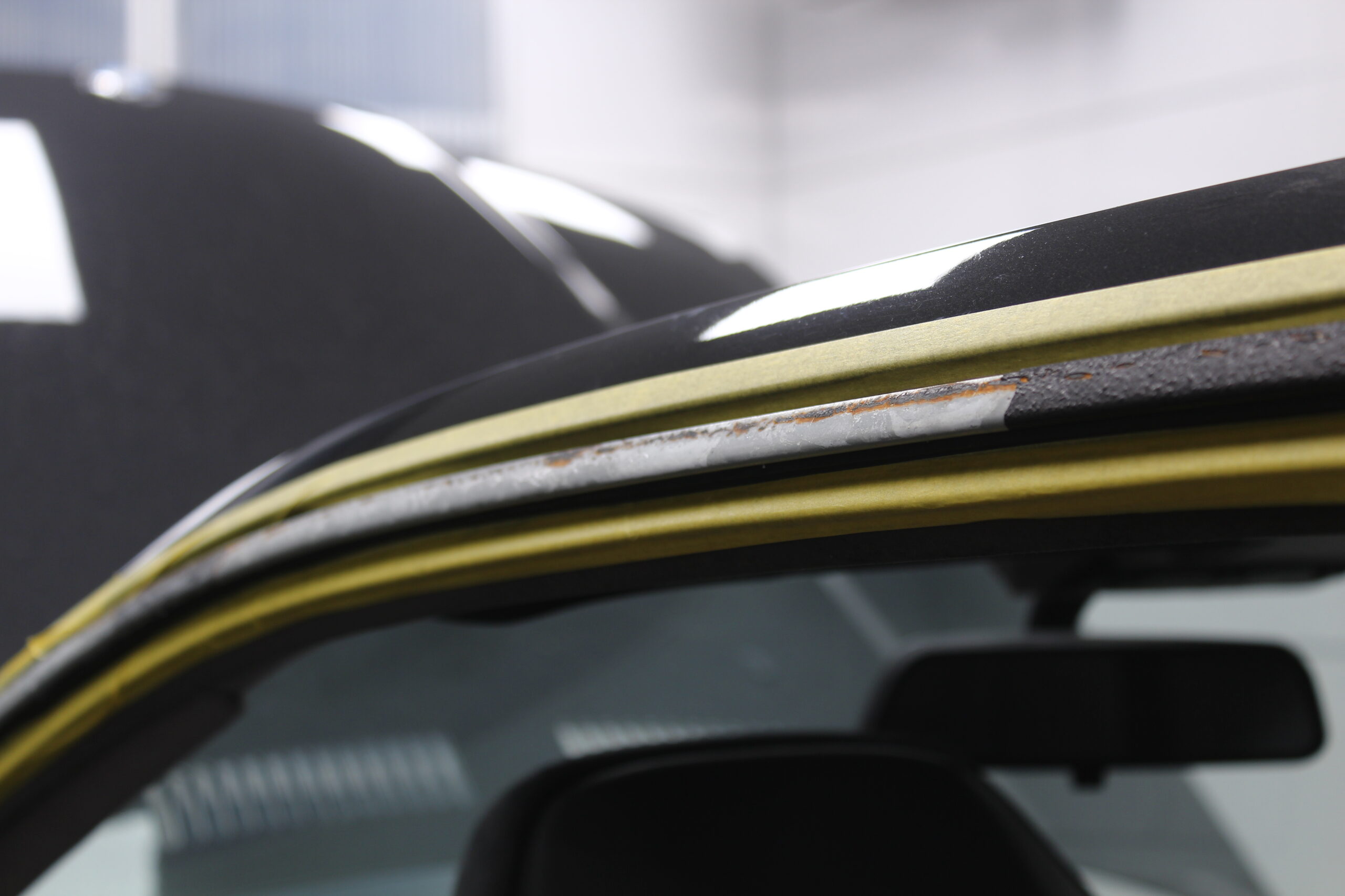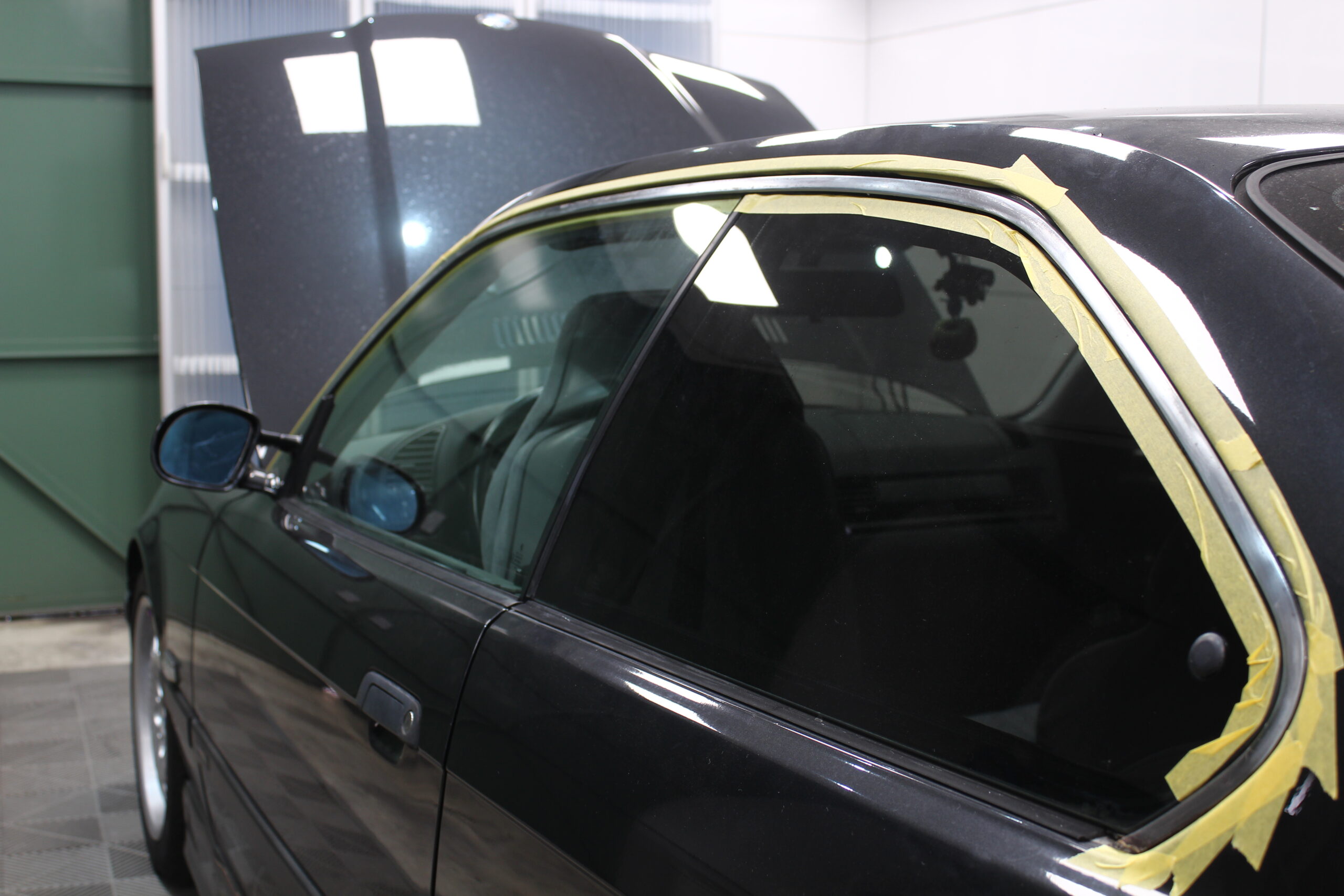 BMW・E36M3の鉄製の窓枠モールの劣化を除去しグロスブラックにリメイクする
