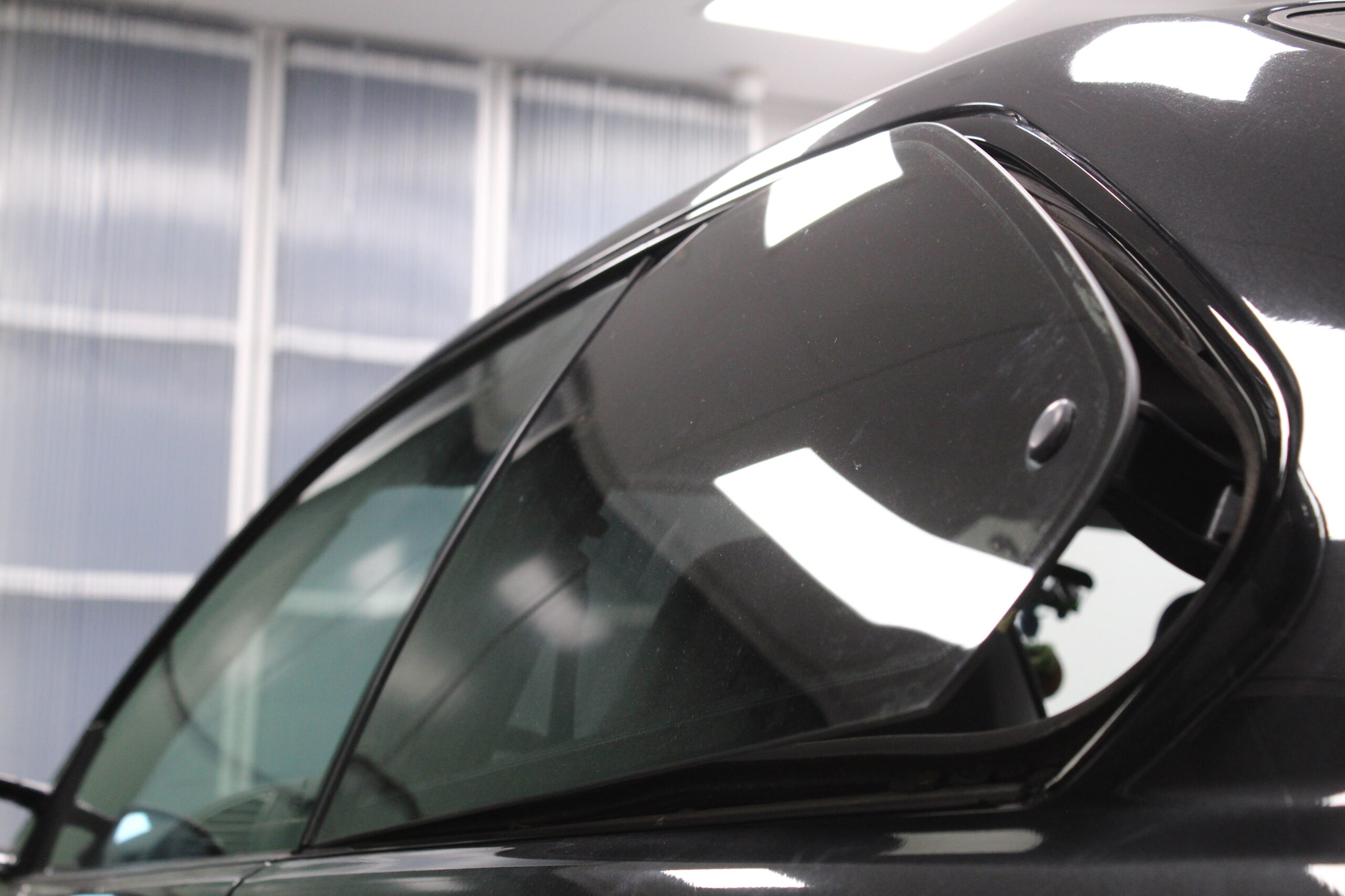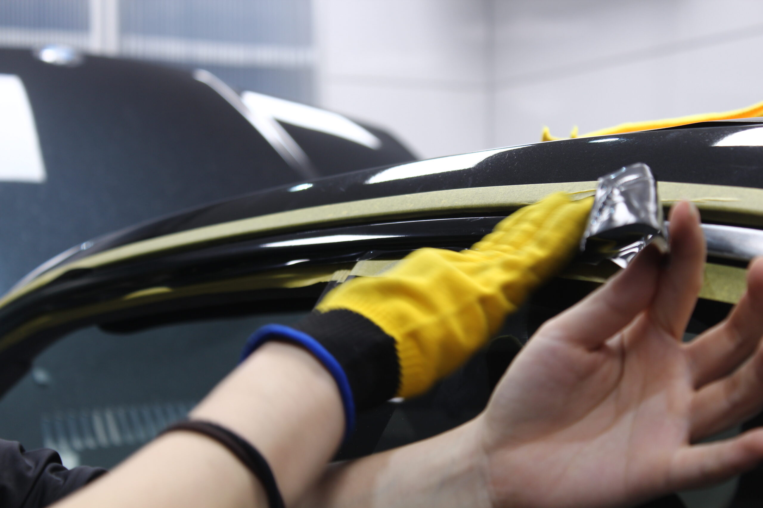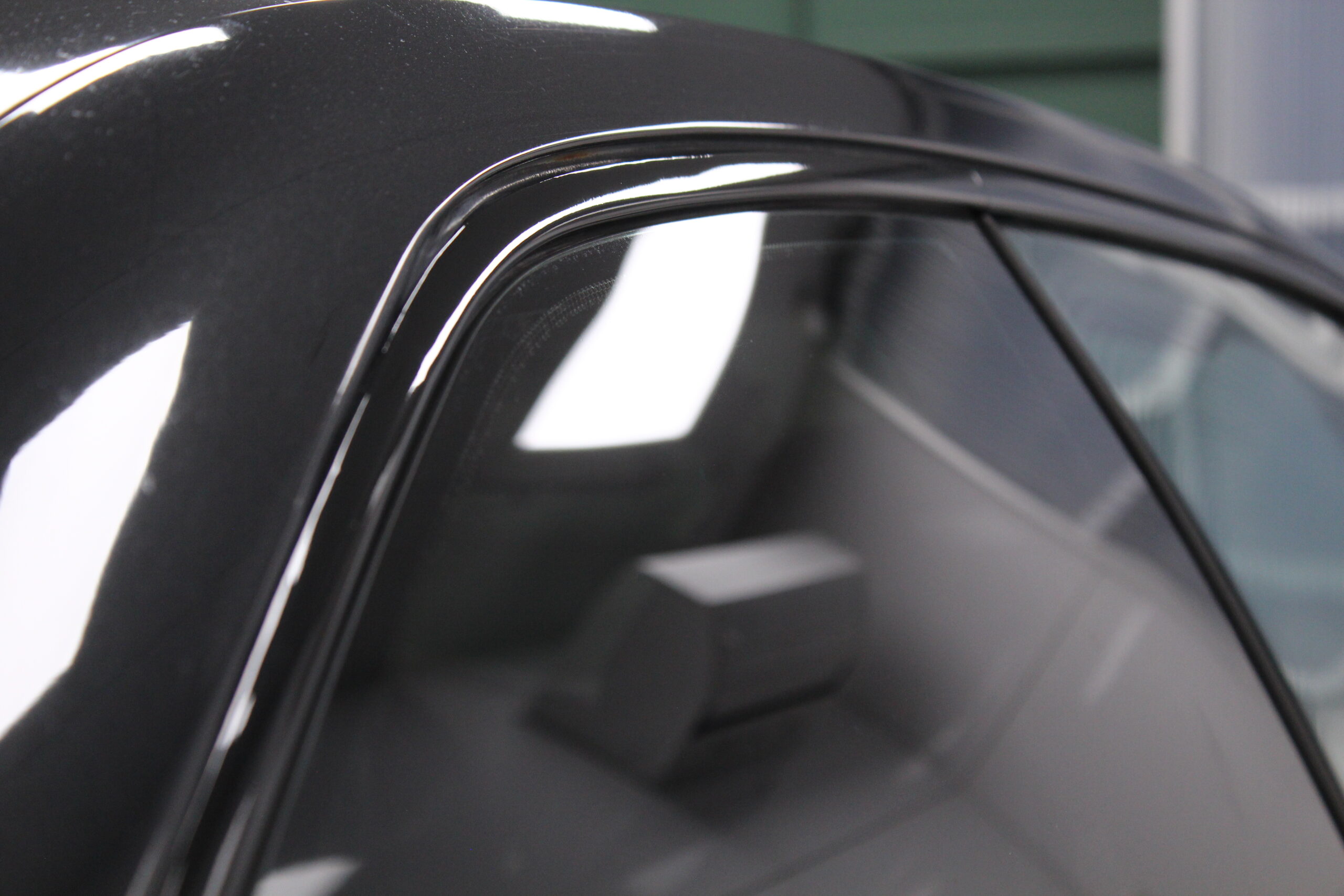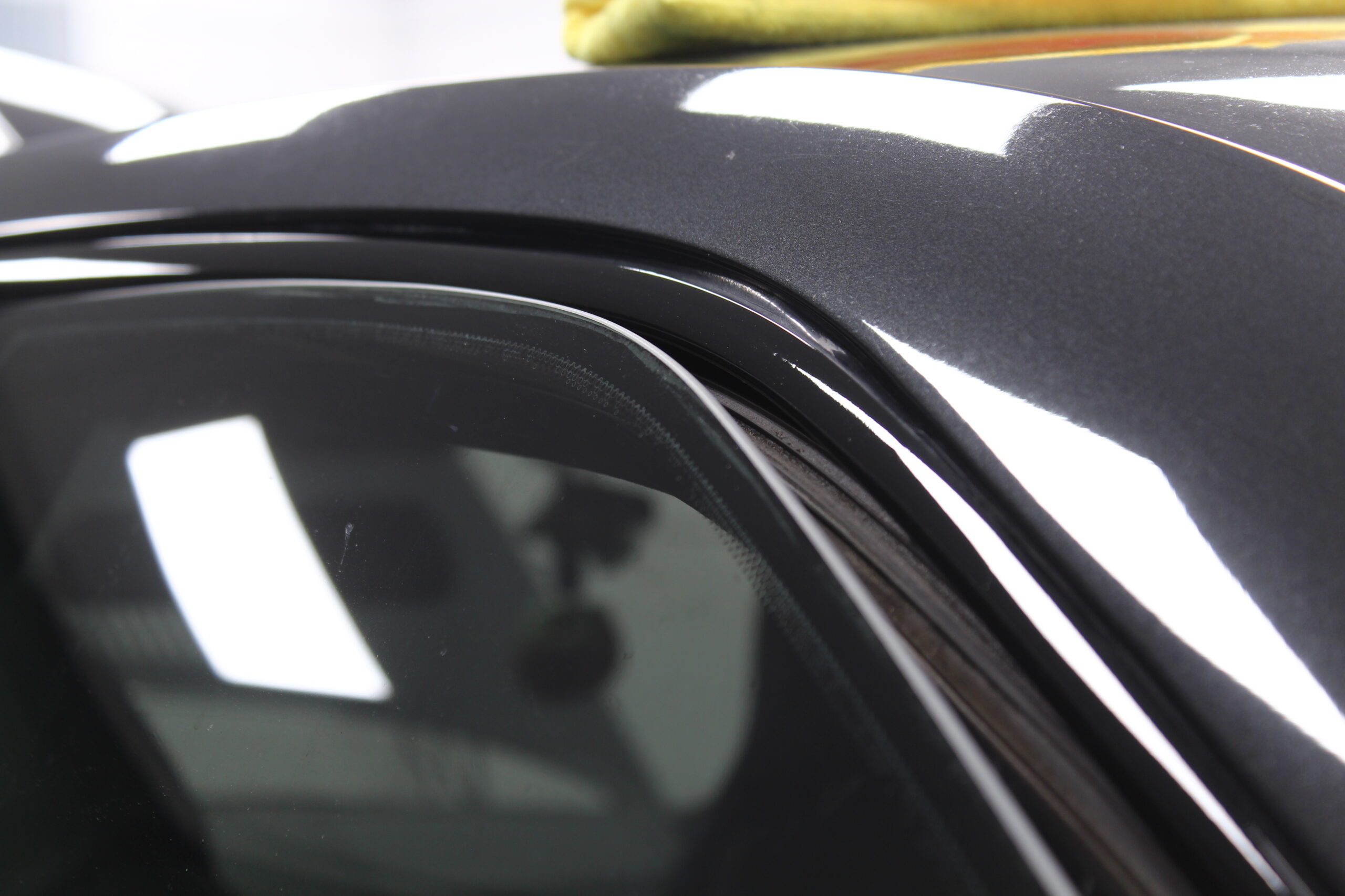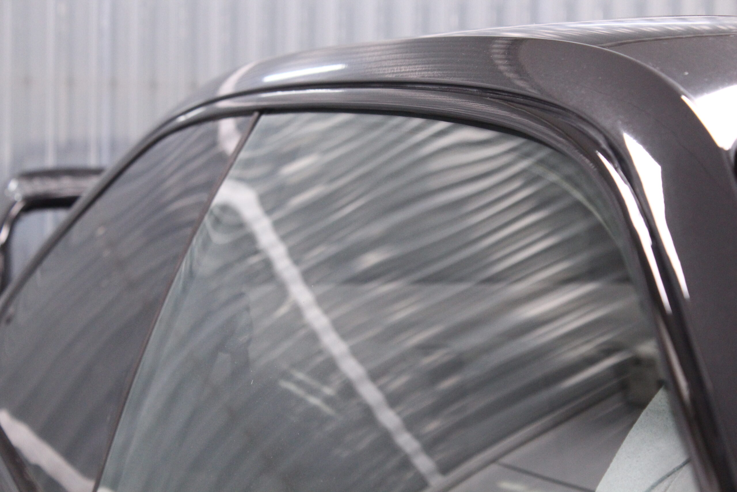 今時の輸入車の多くはアルミ素材で作られているために、赤錆が発生し塗装がボロボロになることありませんが逆に白錆が出て見た目が悪くなりますが。今回は鉄のモールで赤錆が長年の雨で発生して塗装が浮いてしまって剥がれてしまったのが汚く見える原因だったのですが、それを除去し新たにグロスブラックのラッピングフィルムでリメイクさせていただきました。