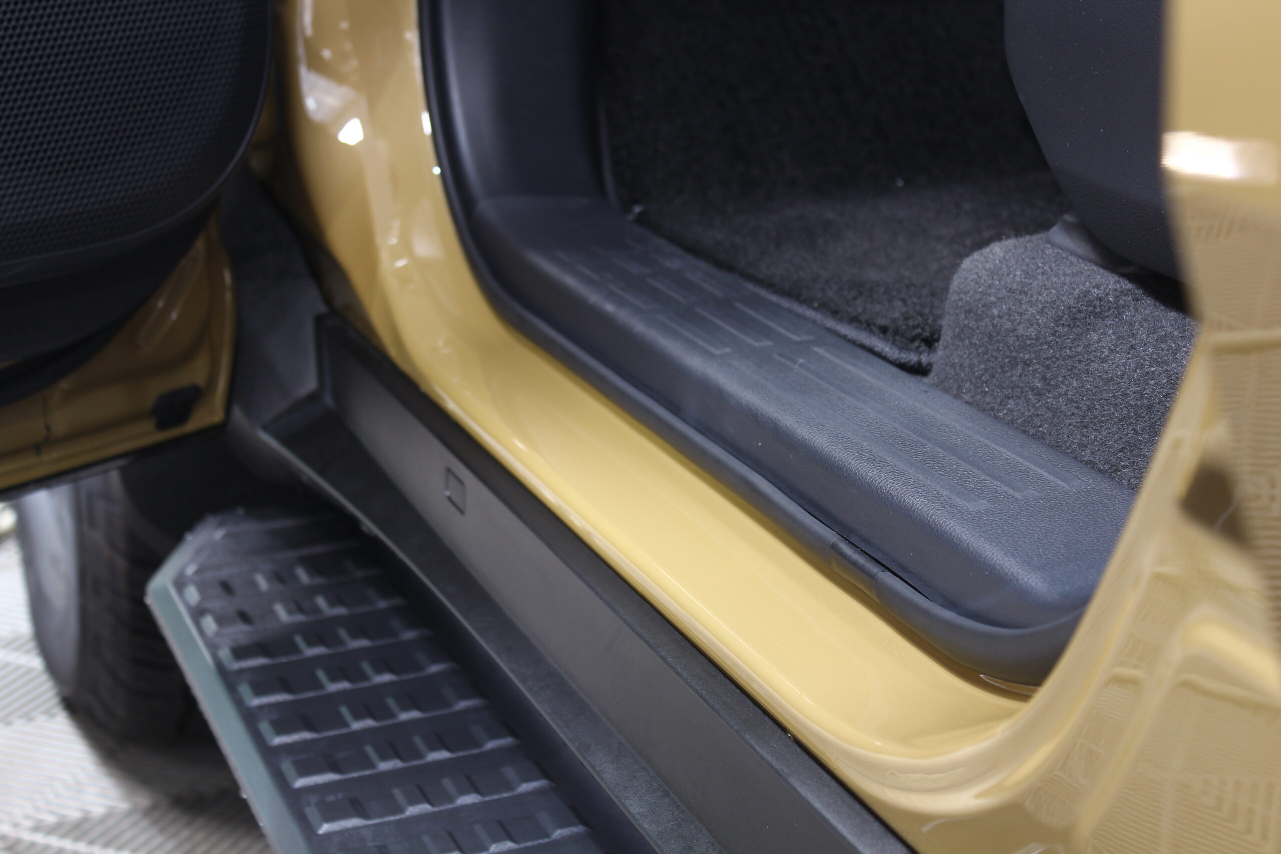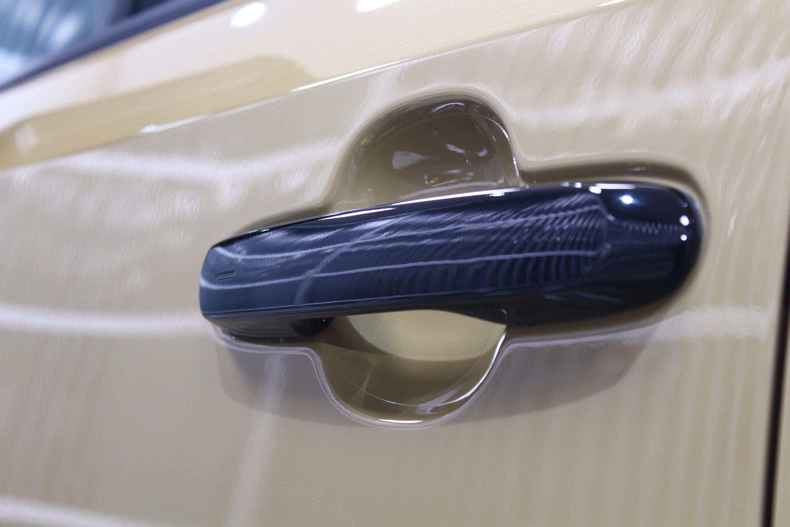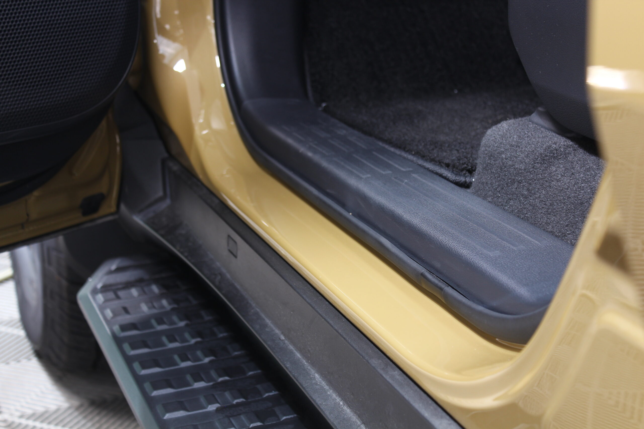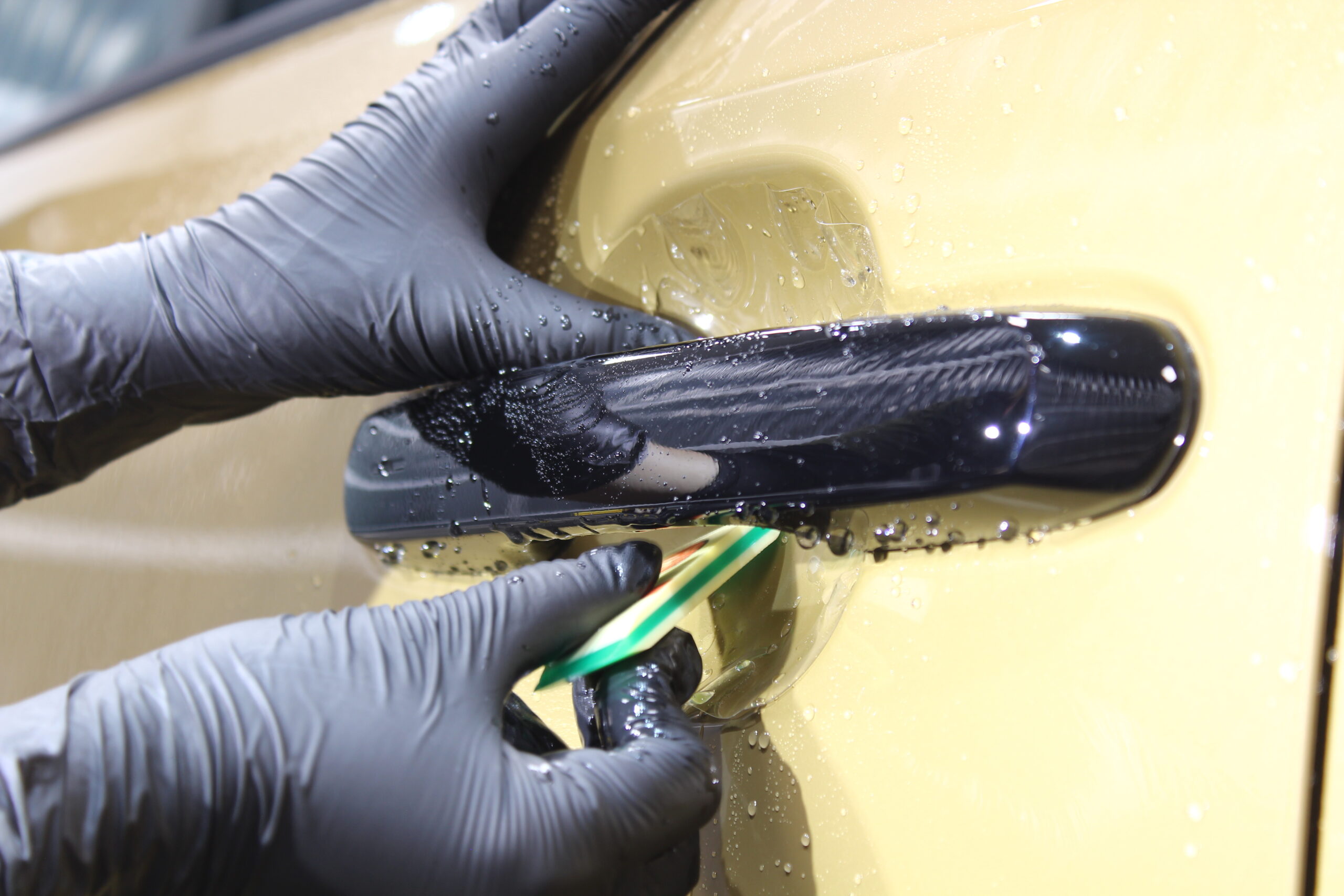 乗り降りするときなどに車に靴のヒールが当たったり、爪が当たったりと生活傷がつきやすい部分のプロテクションフィルムで保護します。