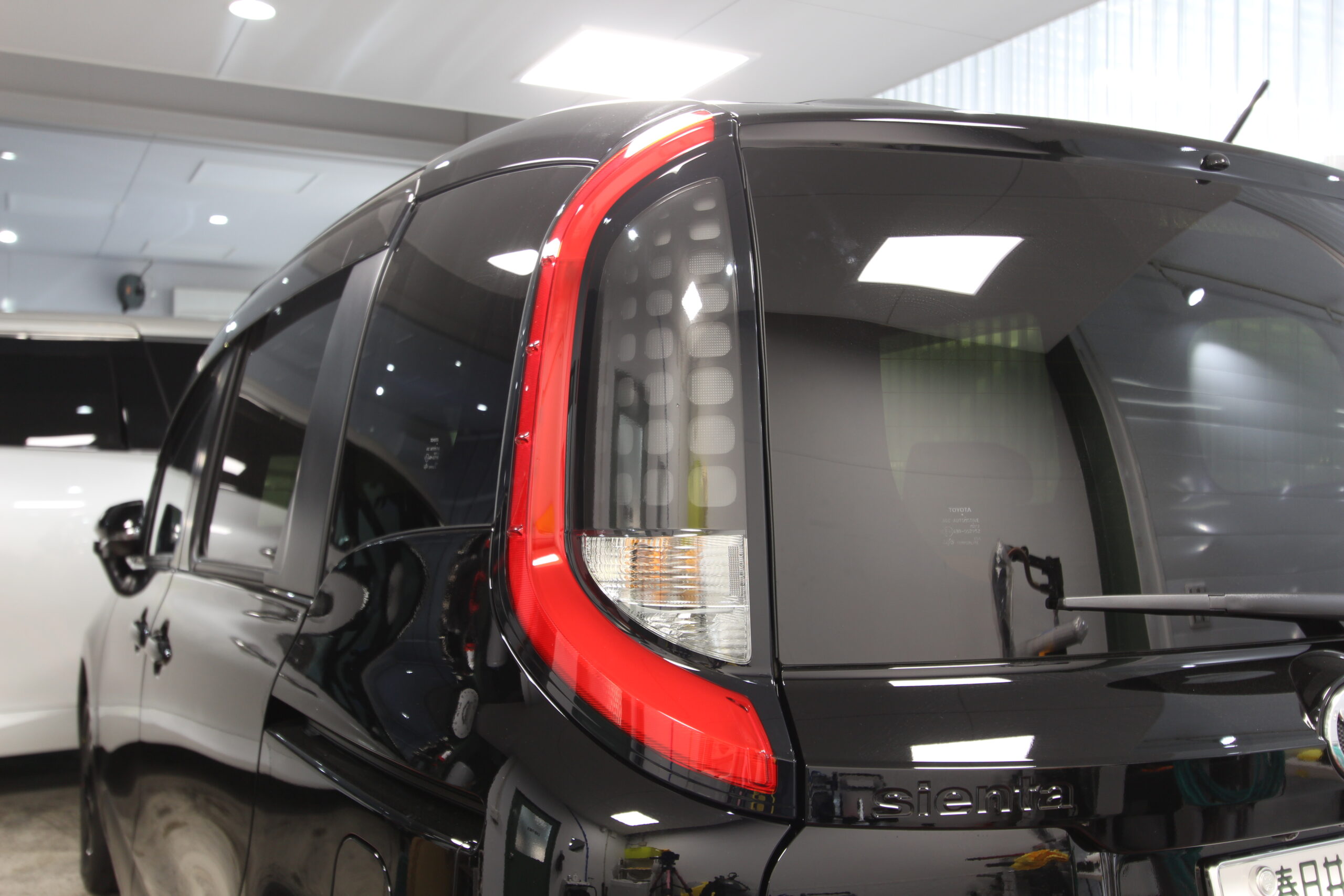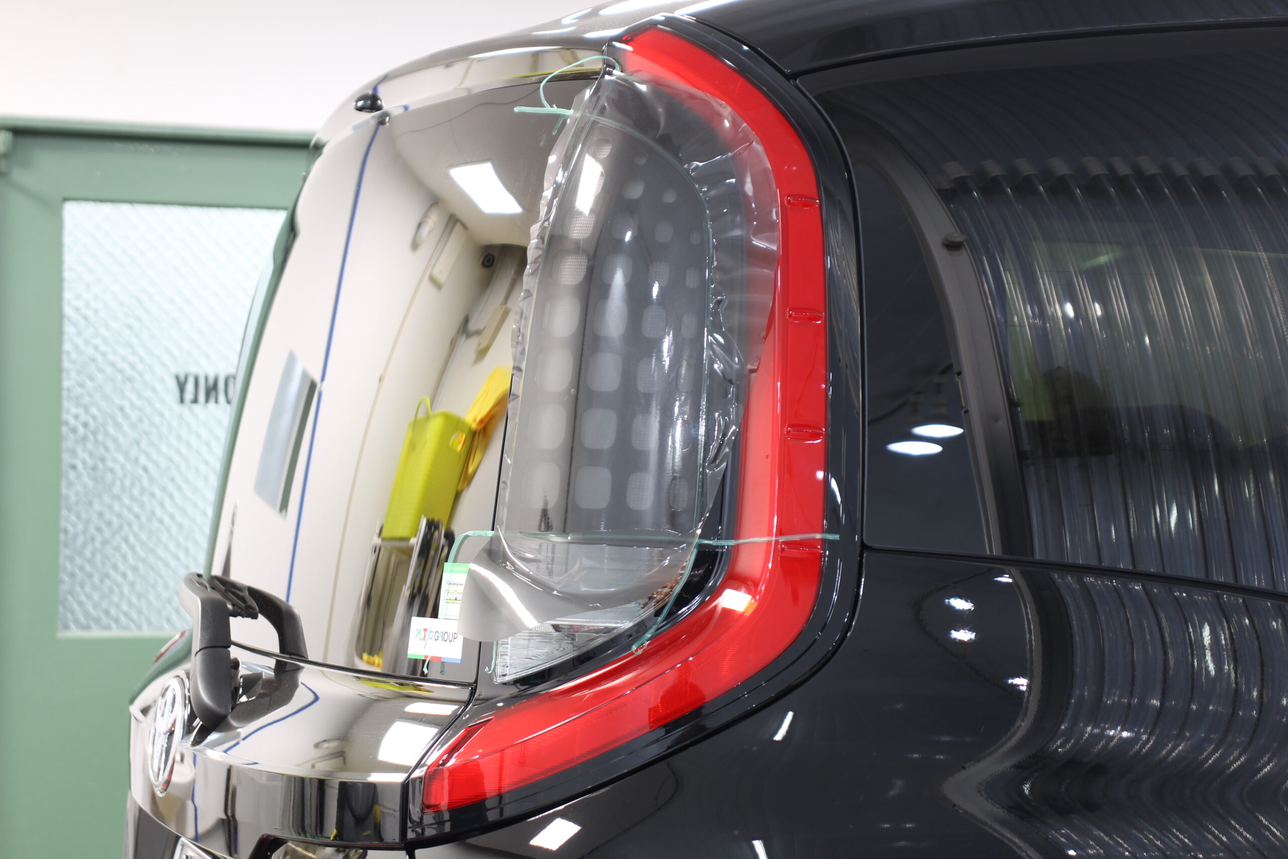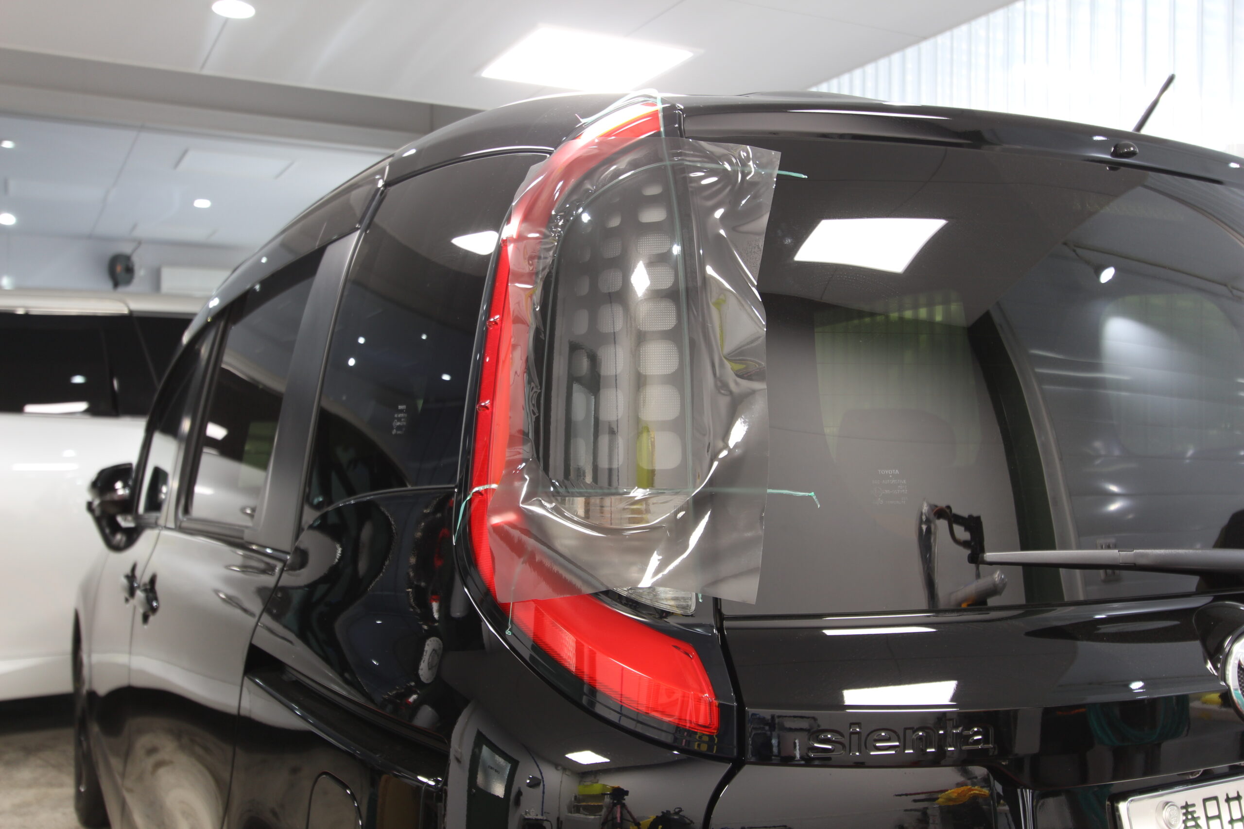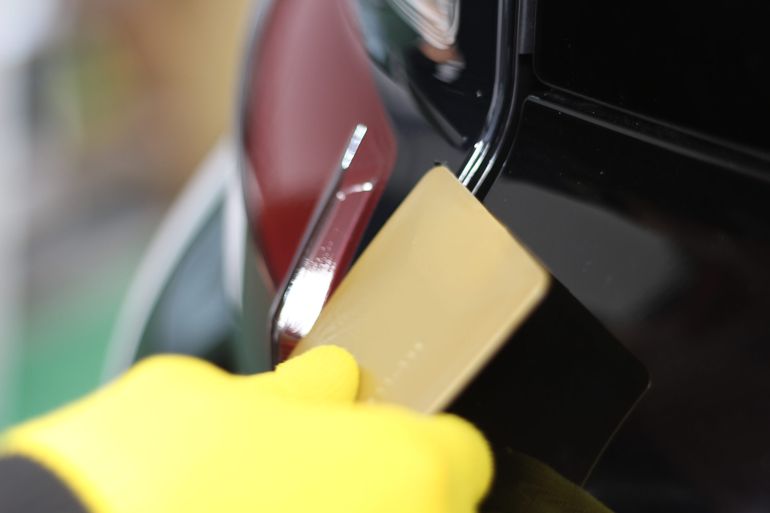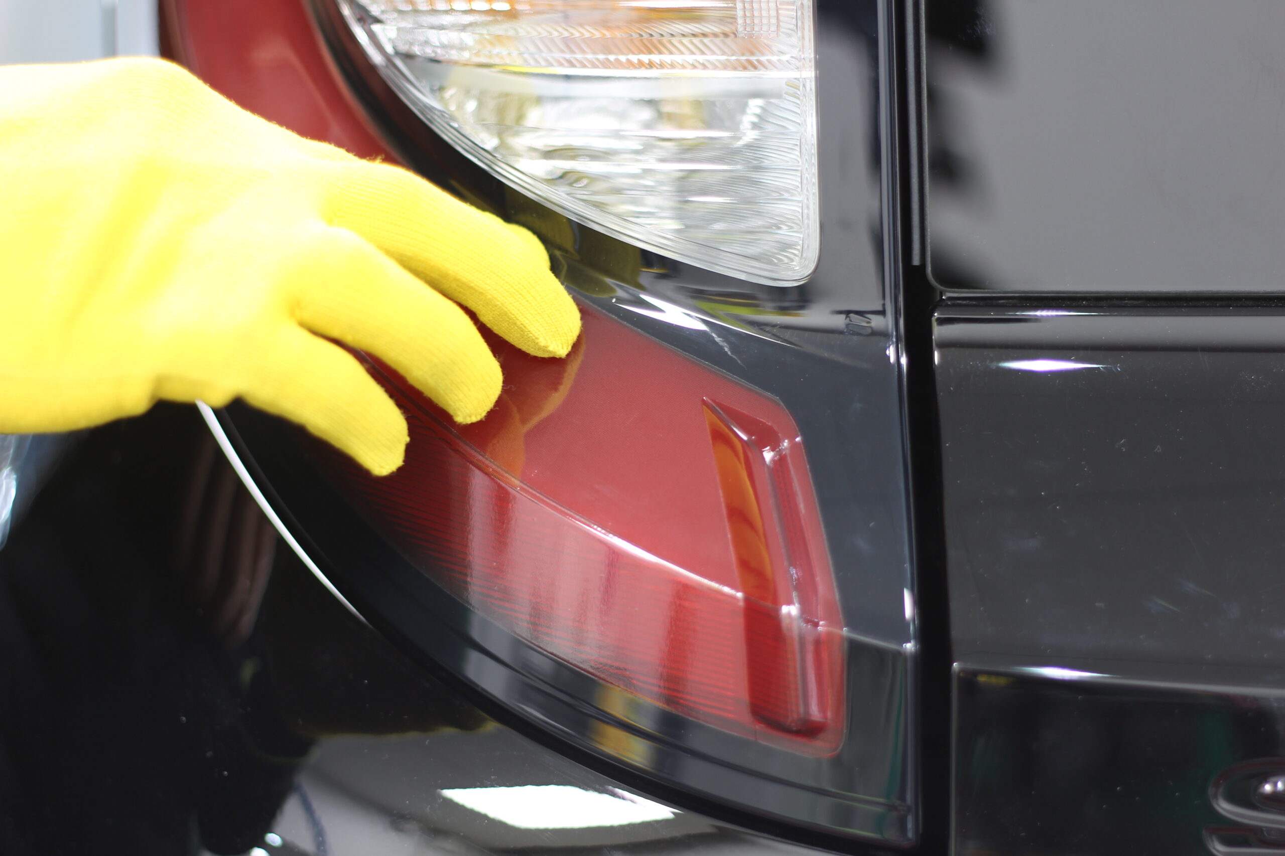 大きく見やすい形状のテールレンズですが、オーナー様のイメージと一部合わない箇所をスモークラッピングフィルムでスモーク加工します。