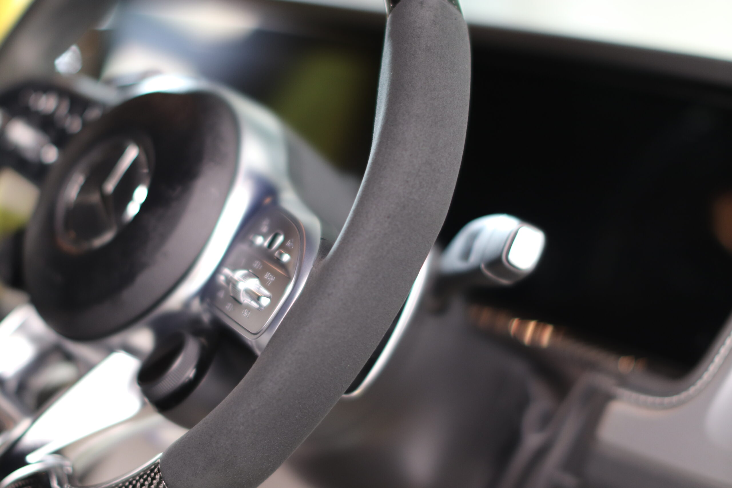 高級車のステアリングに採用されていることの多いバックスキン生地のステアリングですが、毎日握っている事で手から出る油で表面が汚れ本来の性能や見た目や触り心地などが失われます。