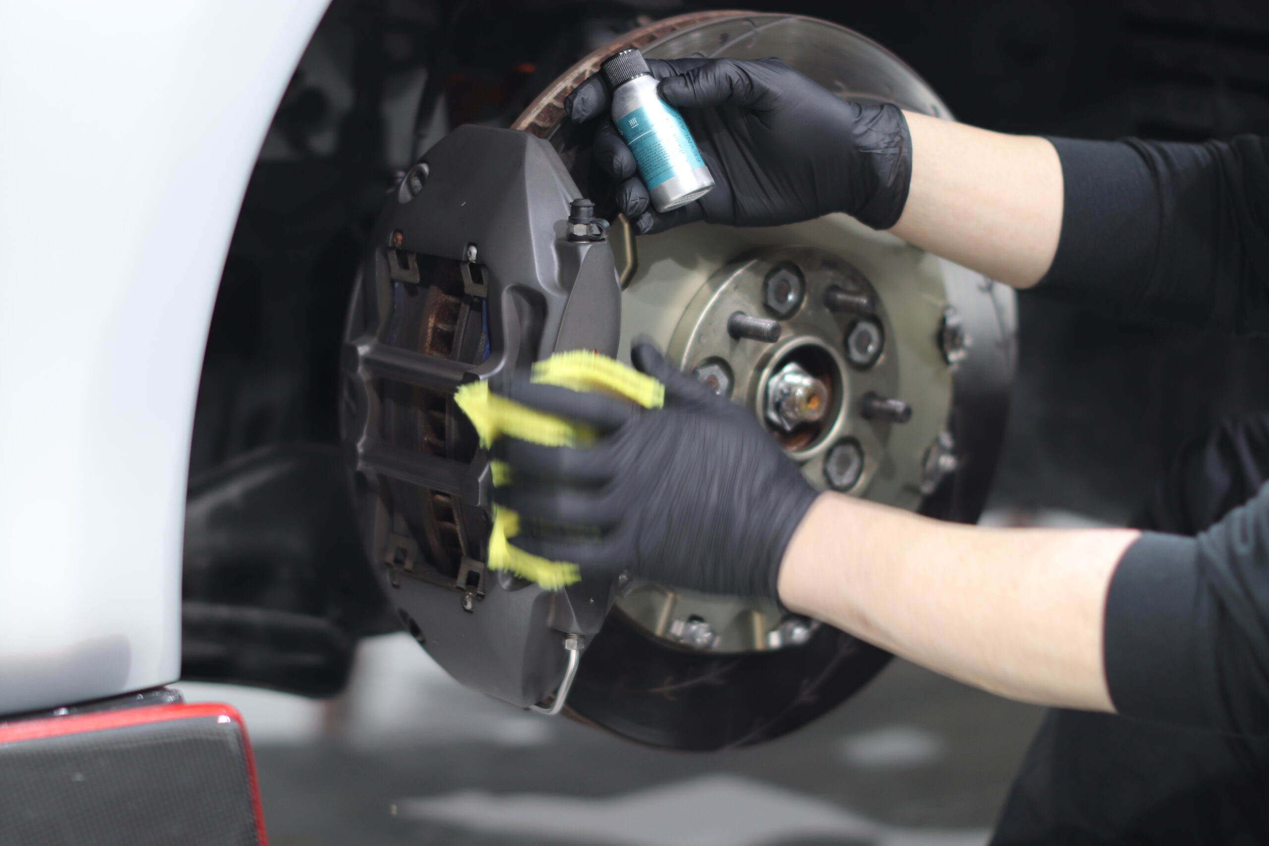 スポーツ走行を楽しまれるオーナー様は、ブレーキダストやタイヤカスで足回りが非常に汚れてきてしまいます。