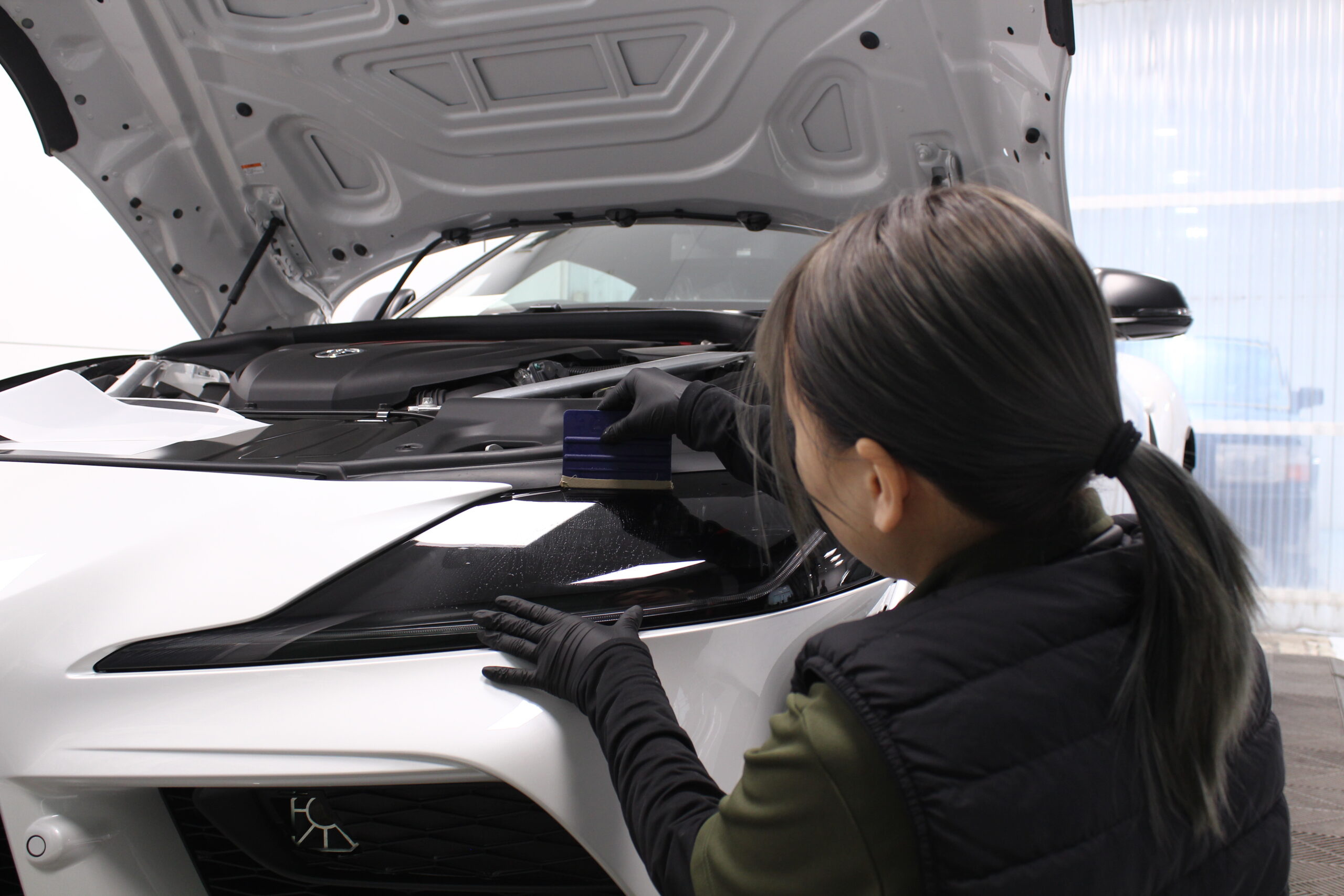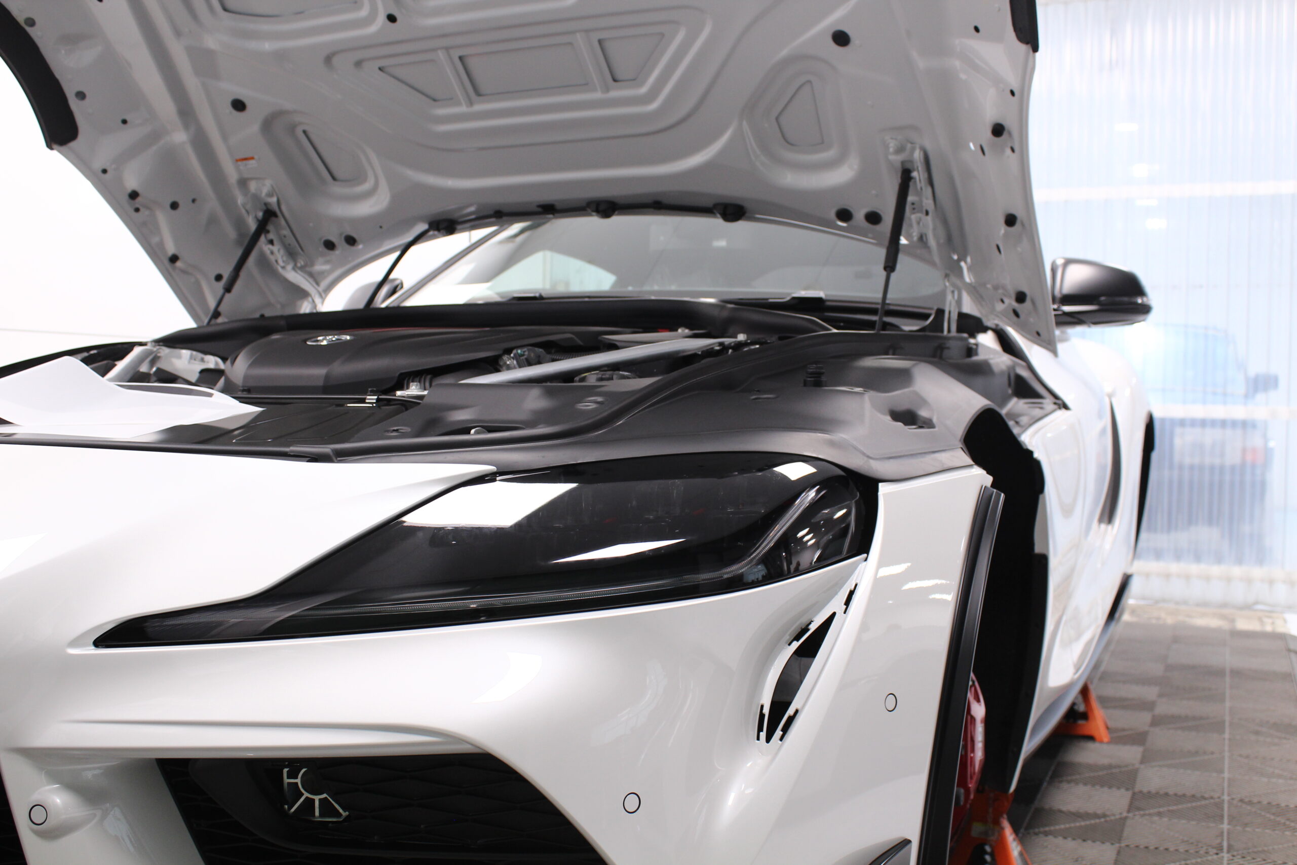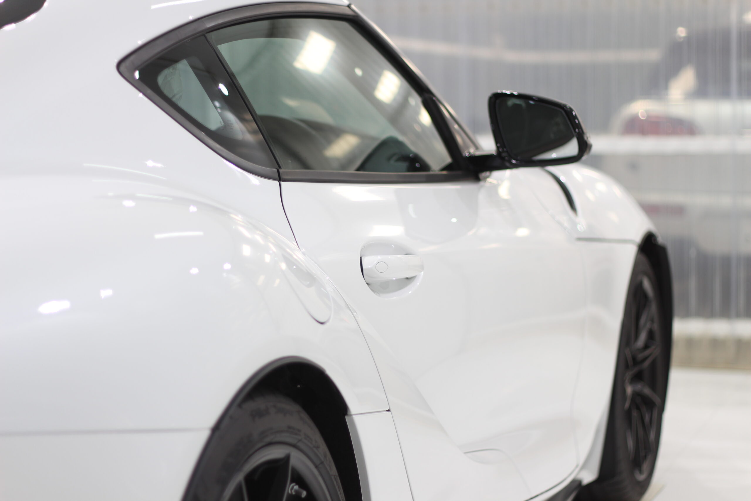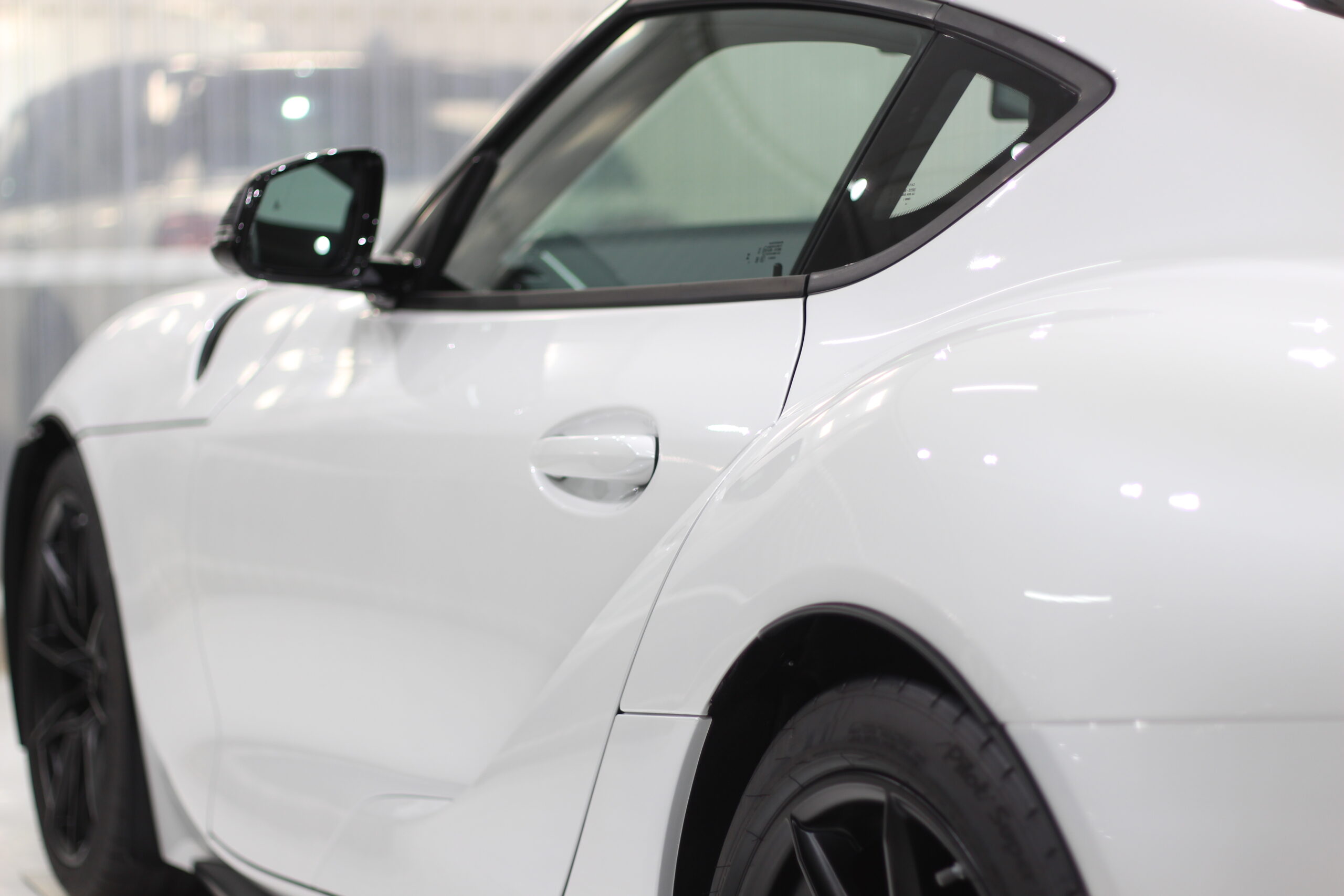 基本的には新車の個体ではあるので綺麗な状態ではありますが、海外から来るスープラは少し薄汚れがついている状態だったので新車塗膜に優しい磨きで整えながら、カスタムパーツを取り付ける準備もします。