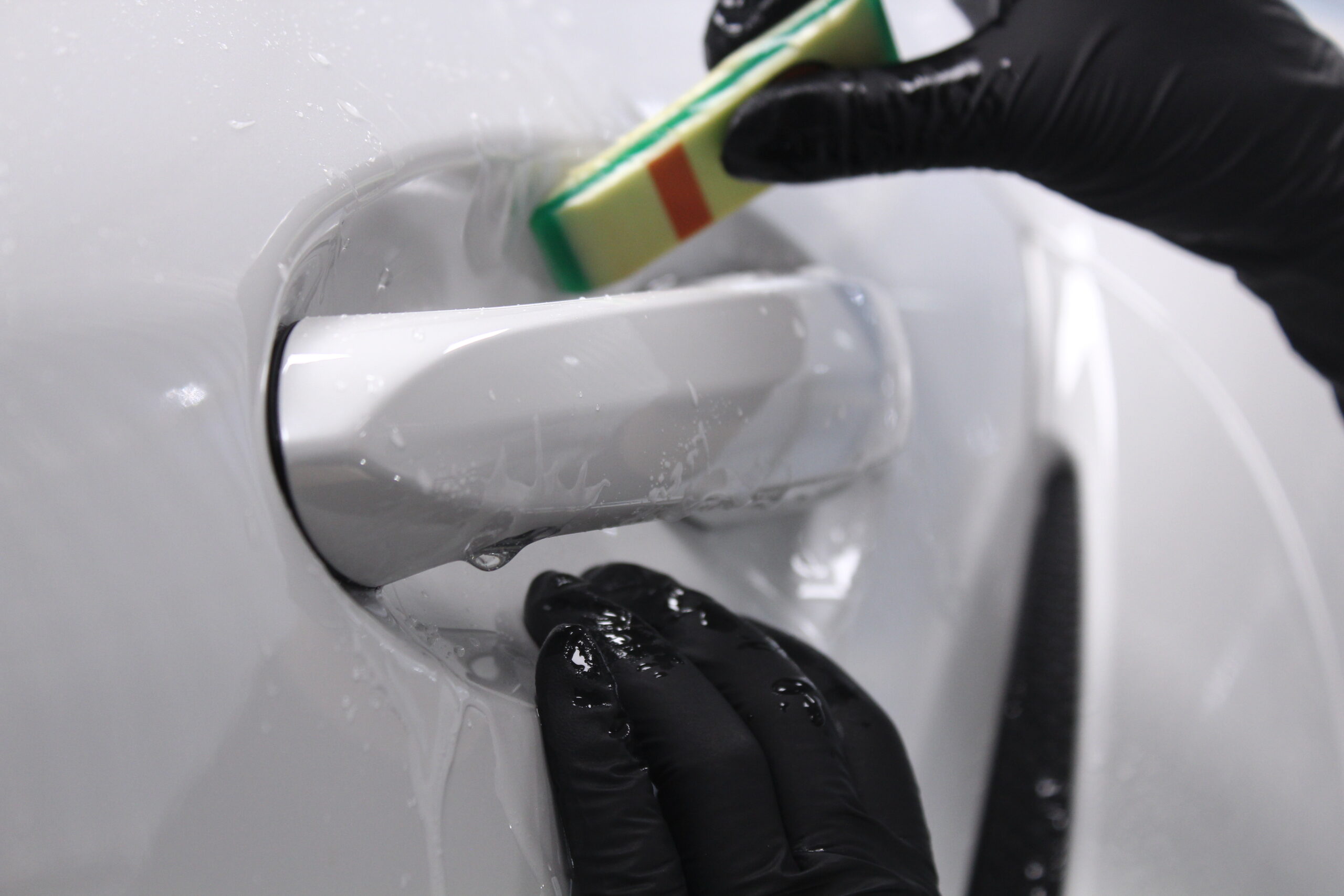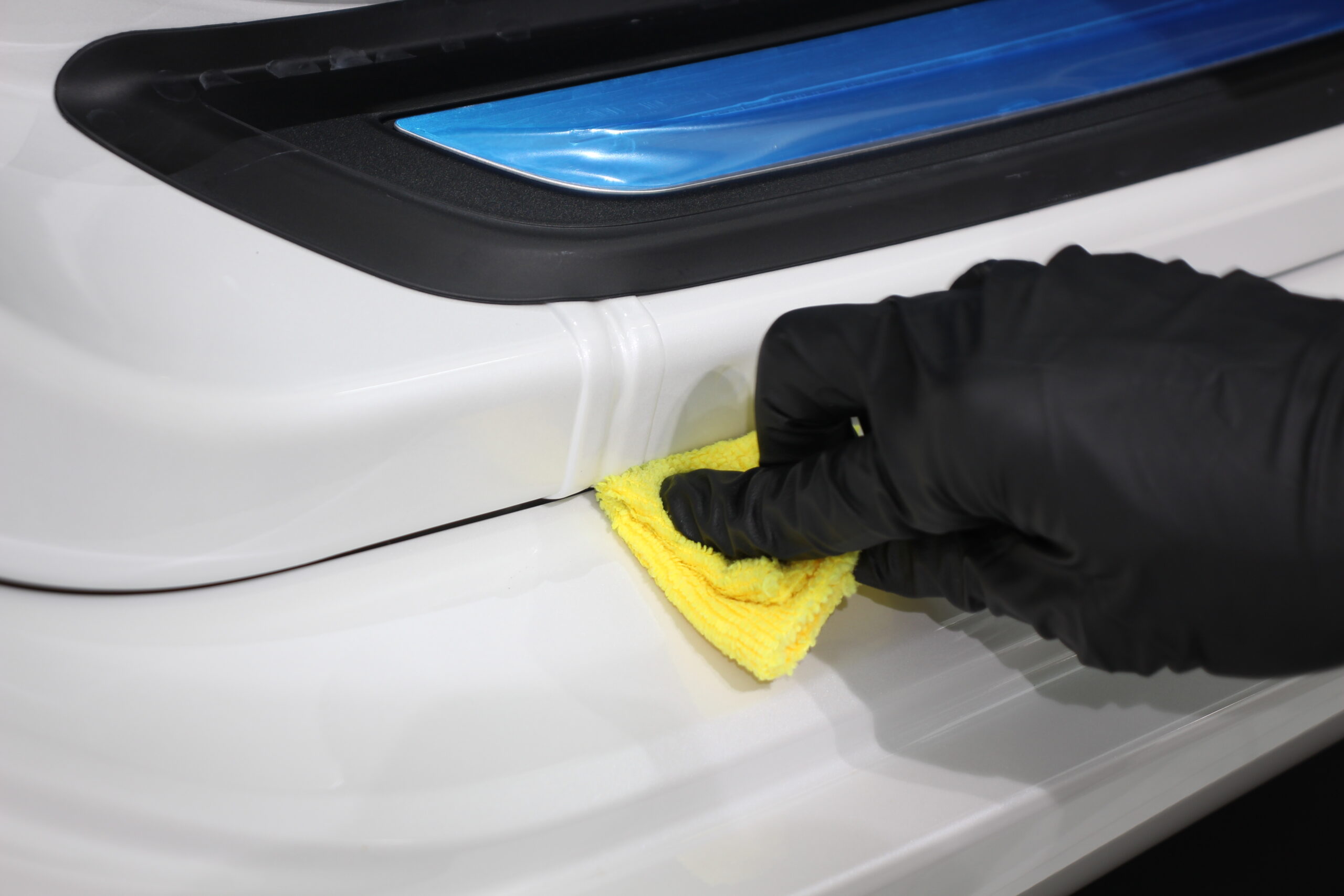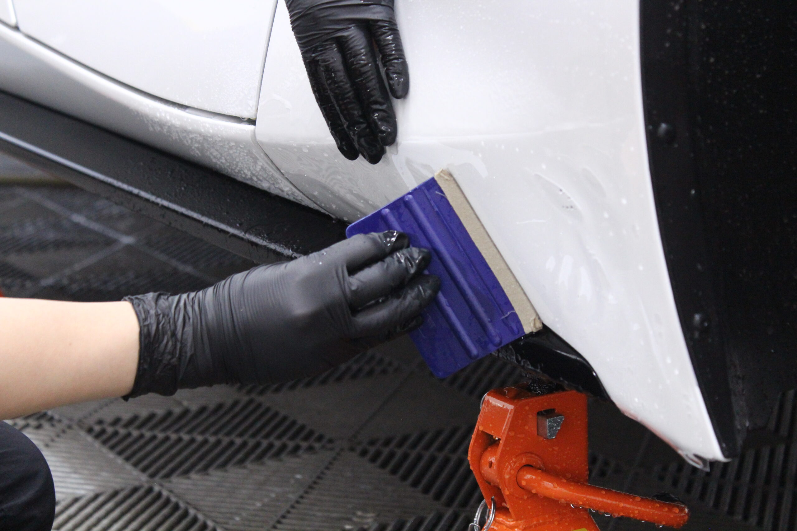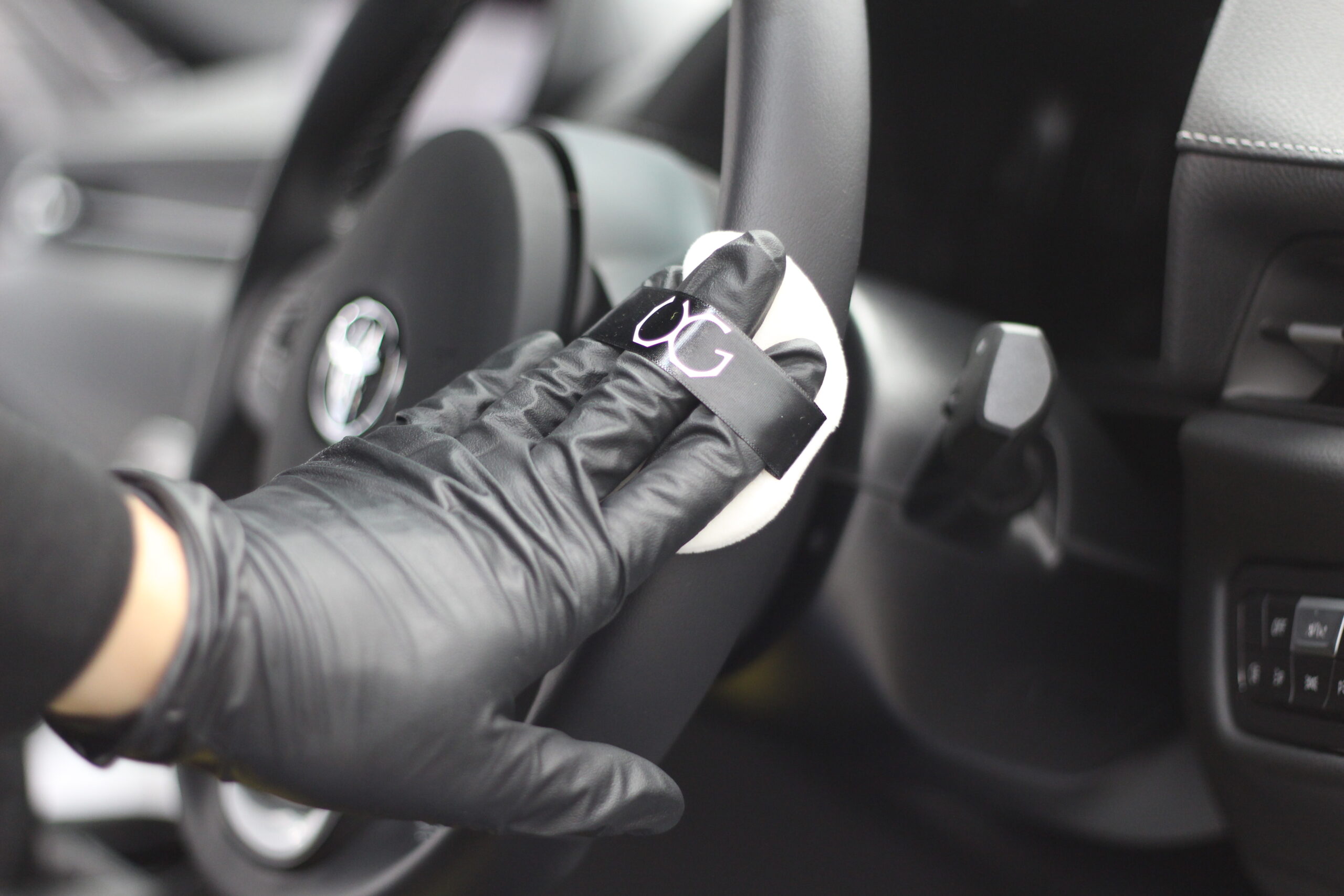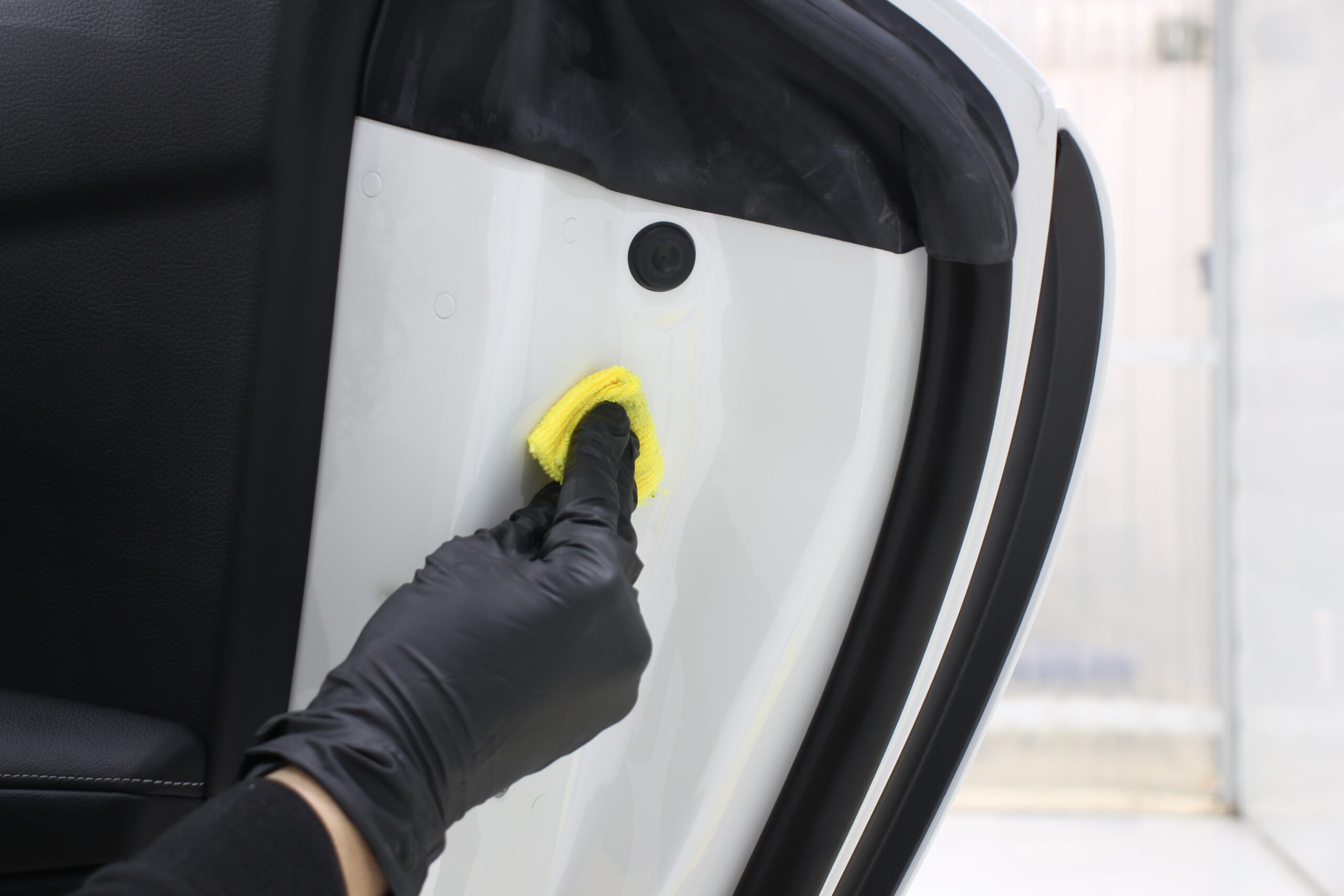 内装部分には一部レザーが採用されているパーツがあるので、そちらはレザーコーティングを施工して操作パネルにはプロテクションフィルムを施工し運転時についてしまうダメージを防ぎます。