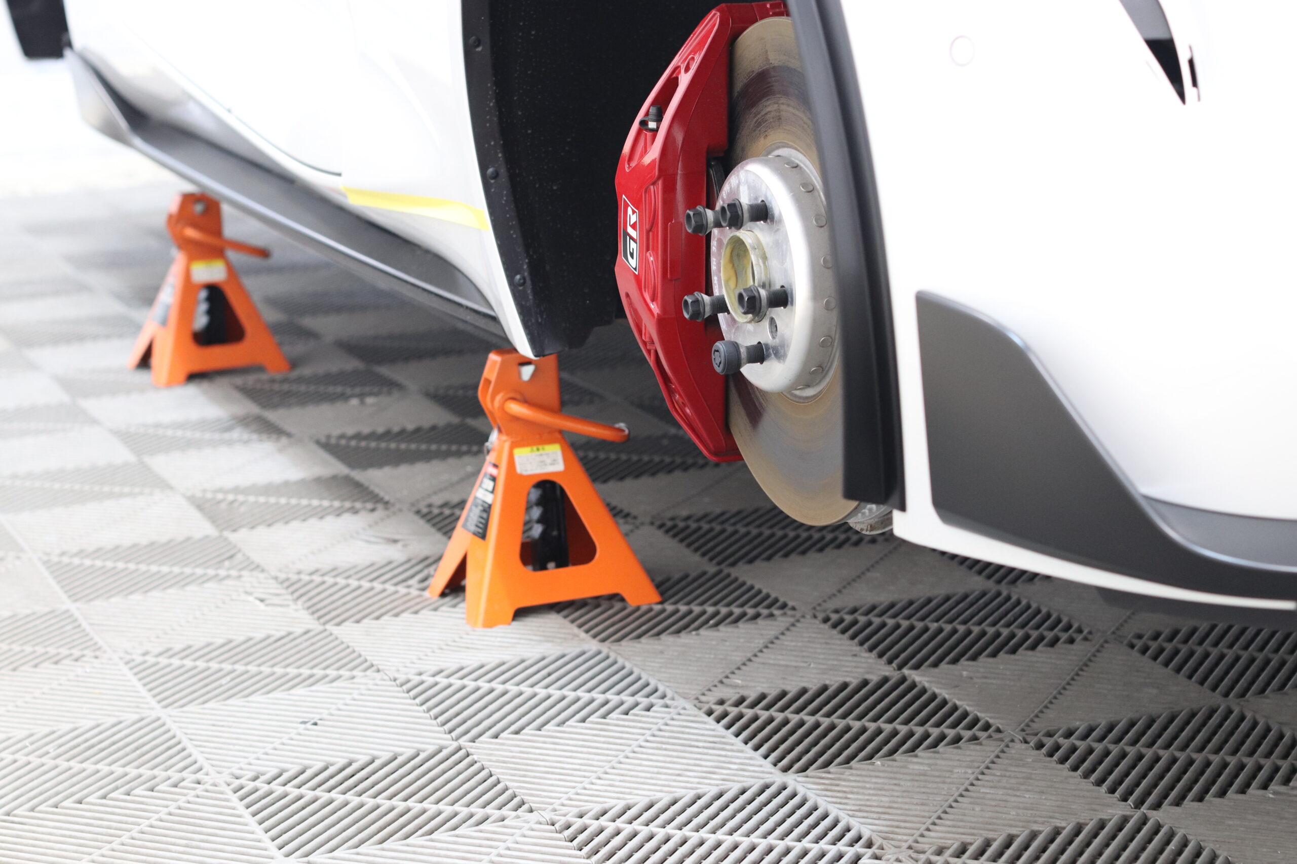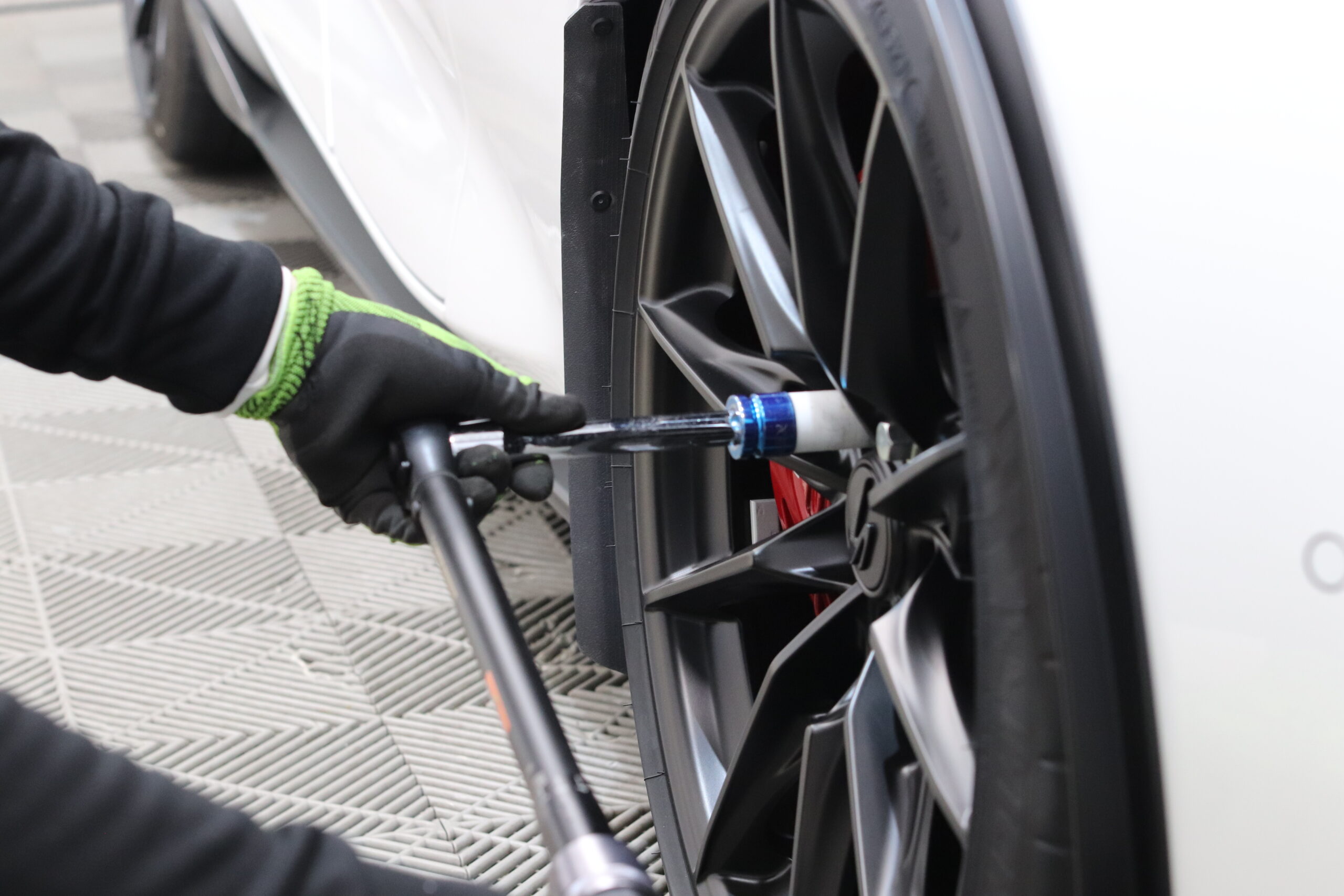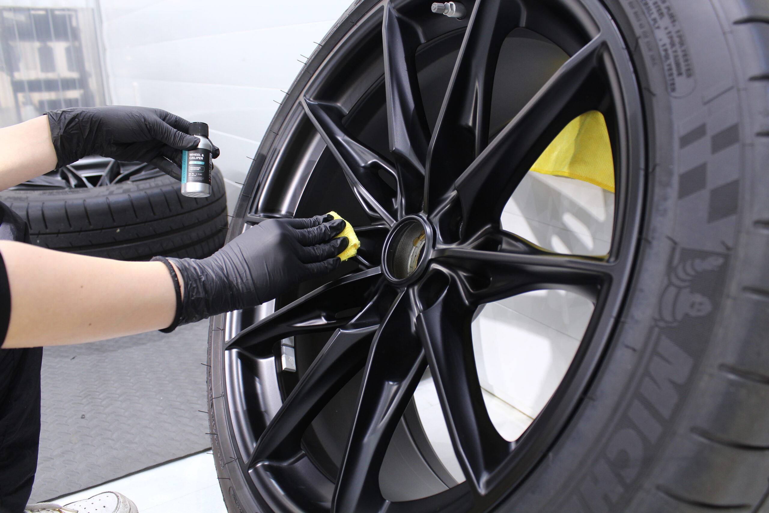 オプション作業で車体からホイール外し通常車体についている状態では施工できない部分も施工し保護します。