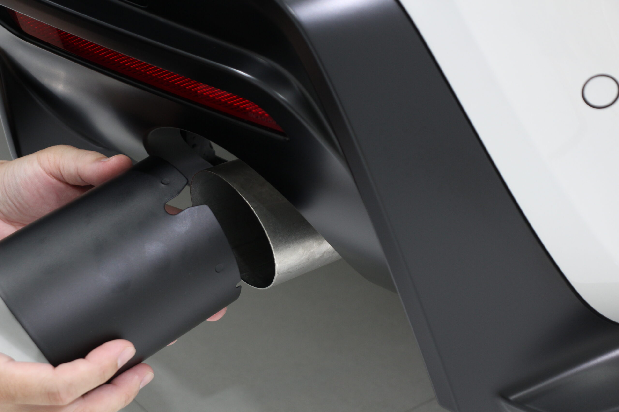 マフラーエンドやエンブレムやメッキ部分をマットブラックに変更します。