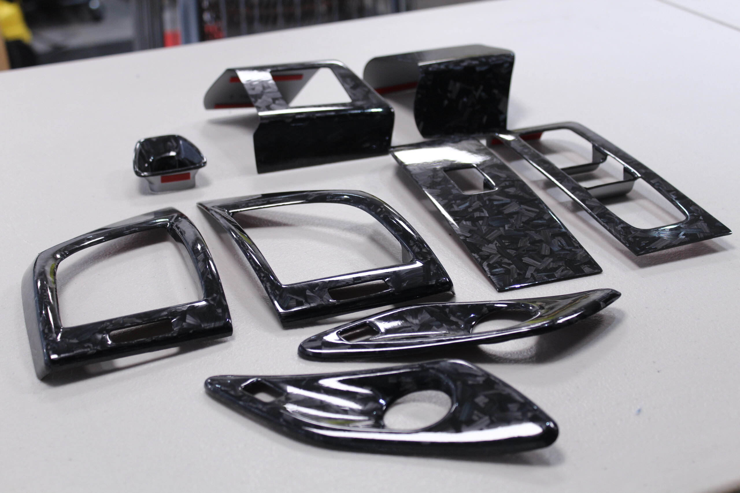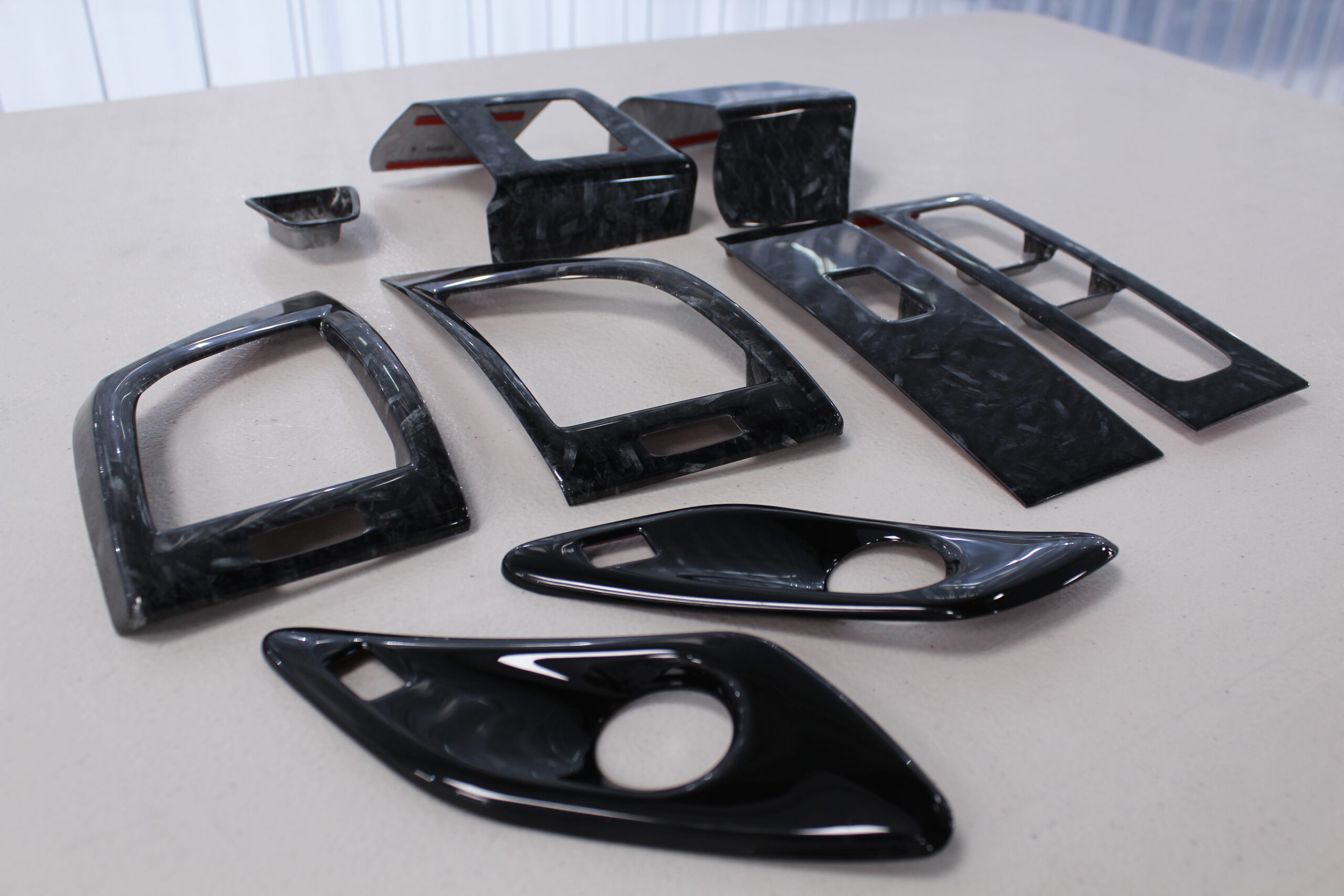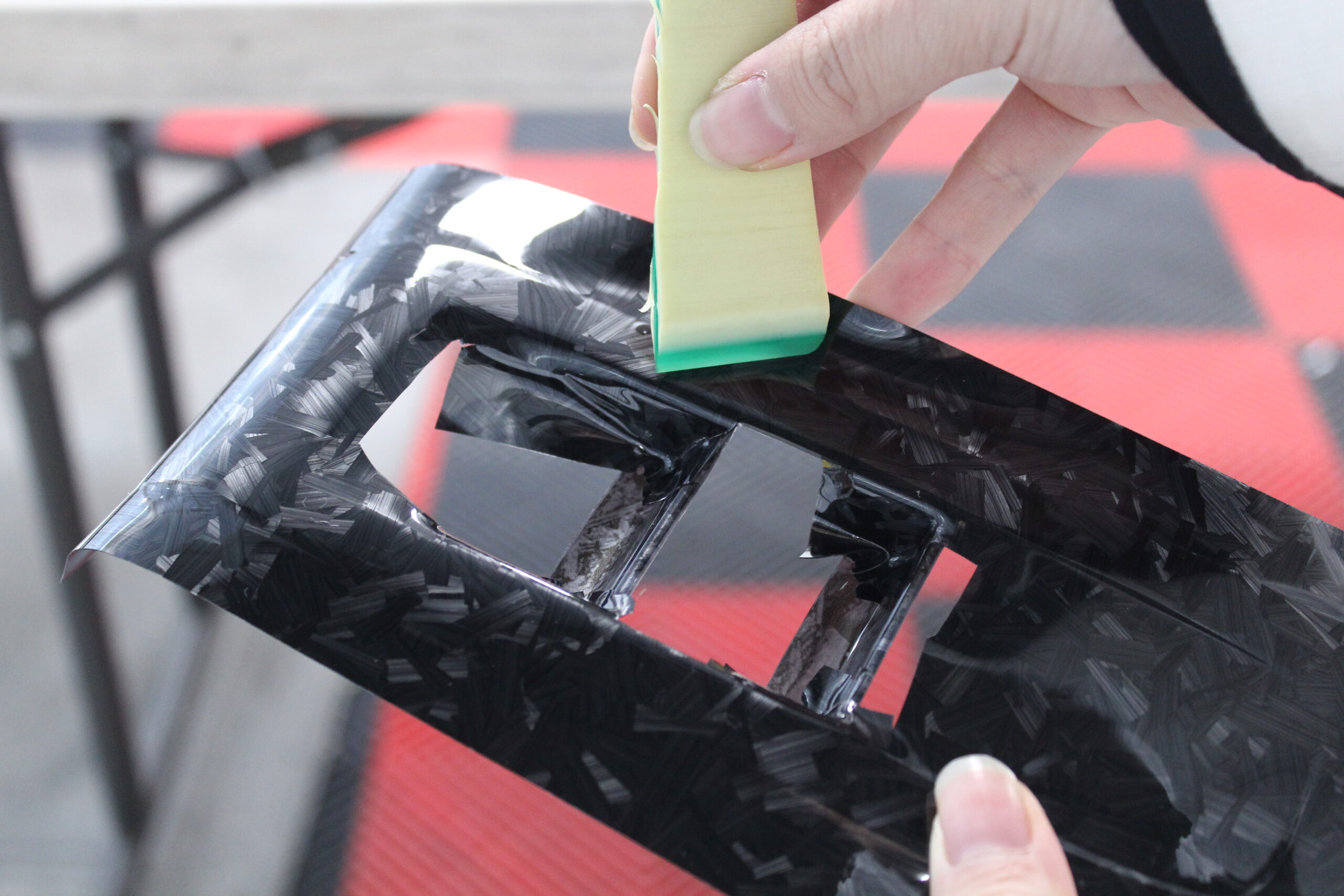 社外品で買ったフォージドカーボン風の加工がしてあるパーツを買ったのですが、あまりにもフェイク感が強すぎで、もっとリアルな物を新たに施工し直します。