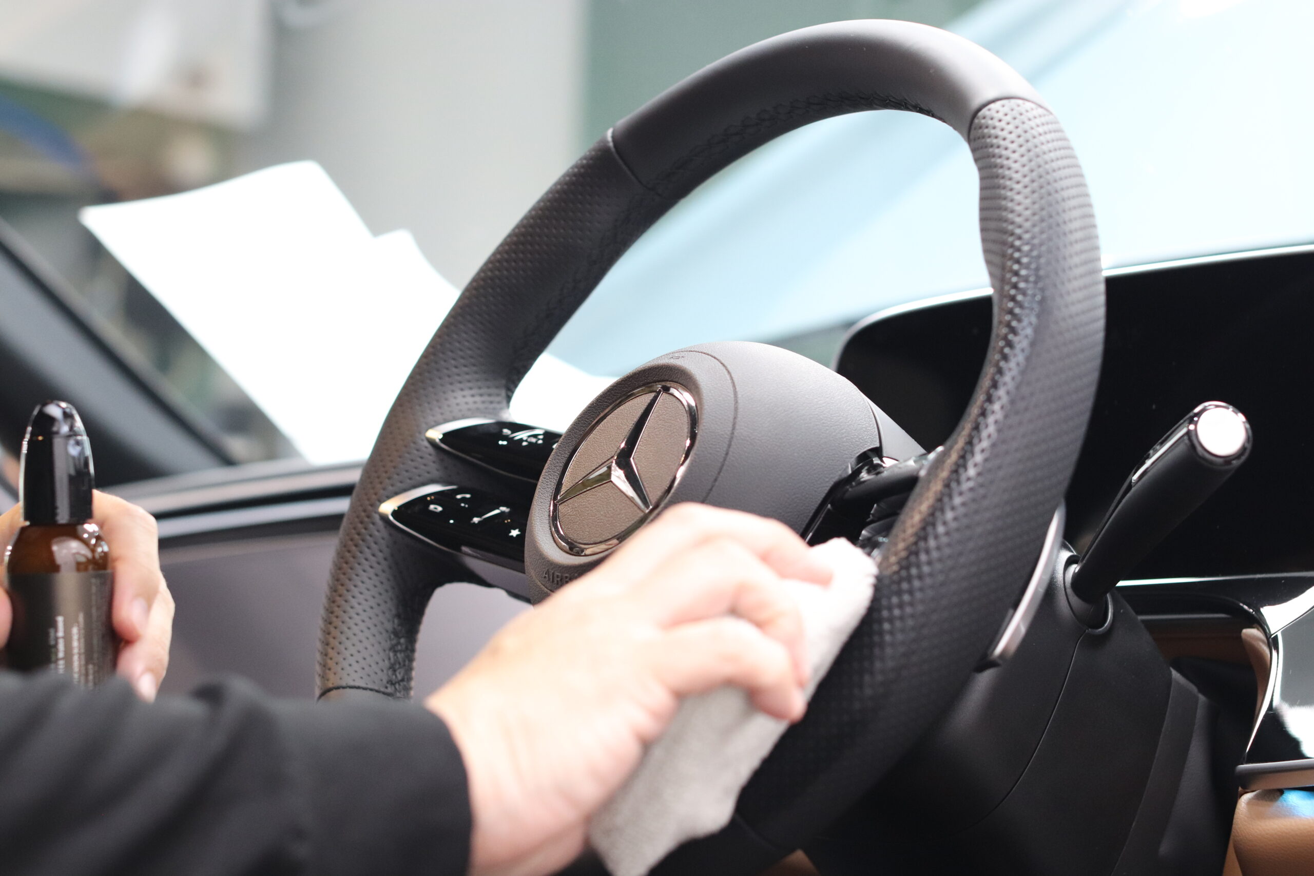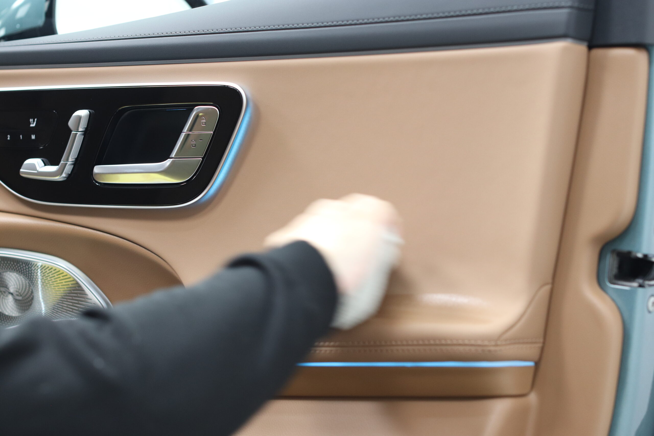 今回は内装部分に使われているレザーの部分をコーティングします。