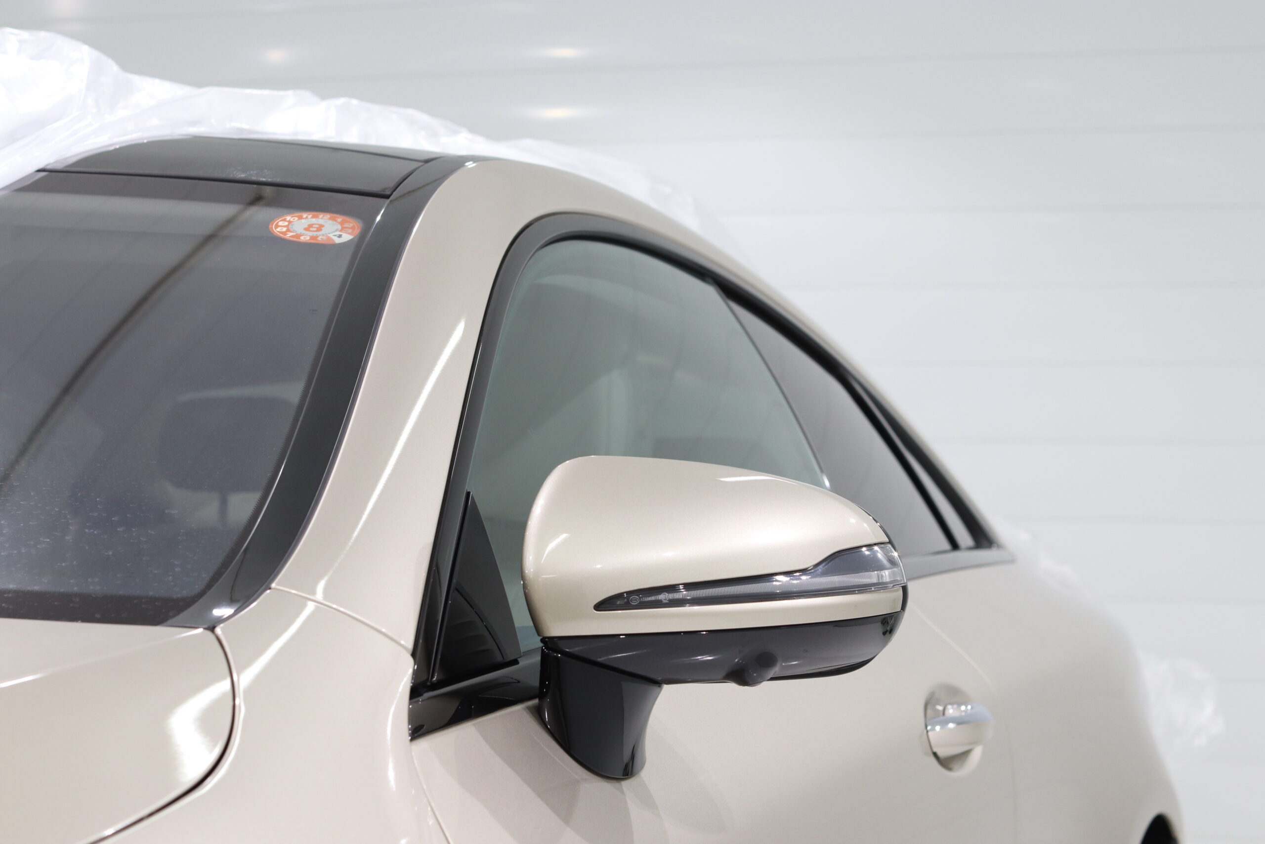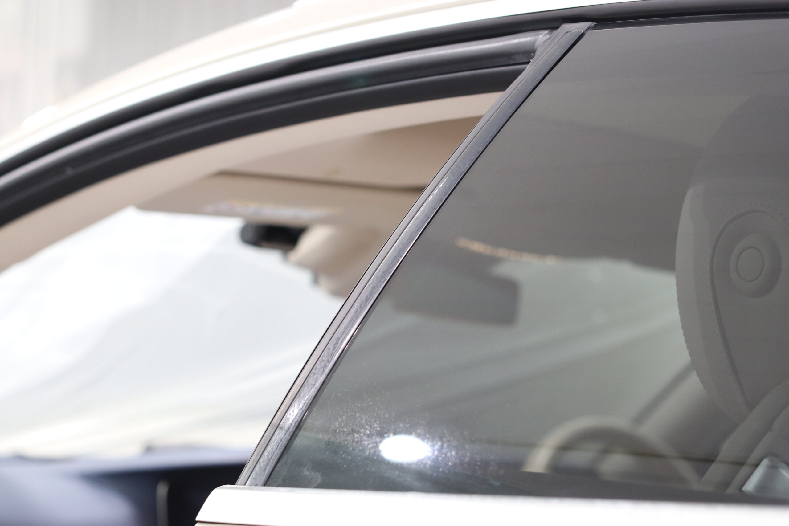 メルセデスベンツの窓枠モールにグロスブラックラッピングフィルム施工
