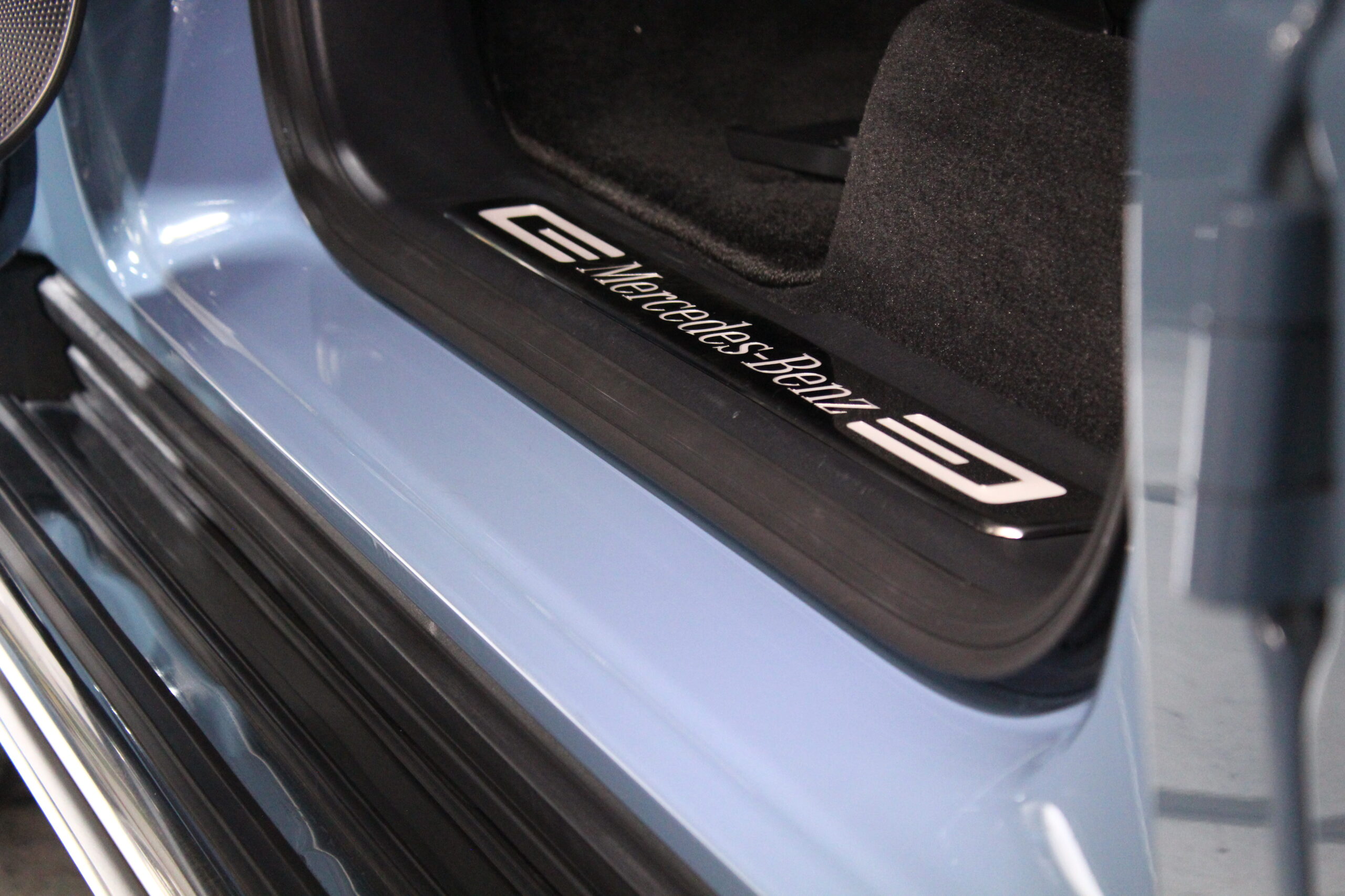 今回プロテクションフィルムの再施工と一緒に乗り降りする際に靴が当たるスカッフプレート部分にもプロテクションフィルムを追加で施工します。