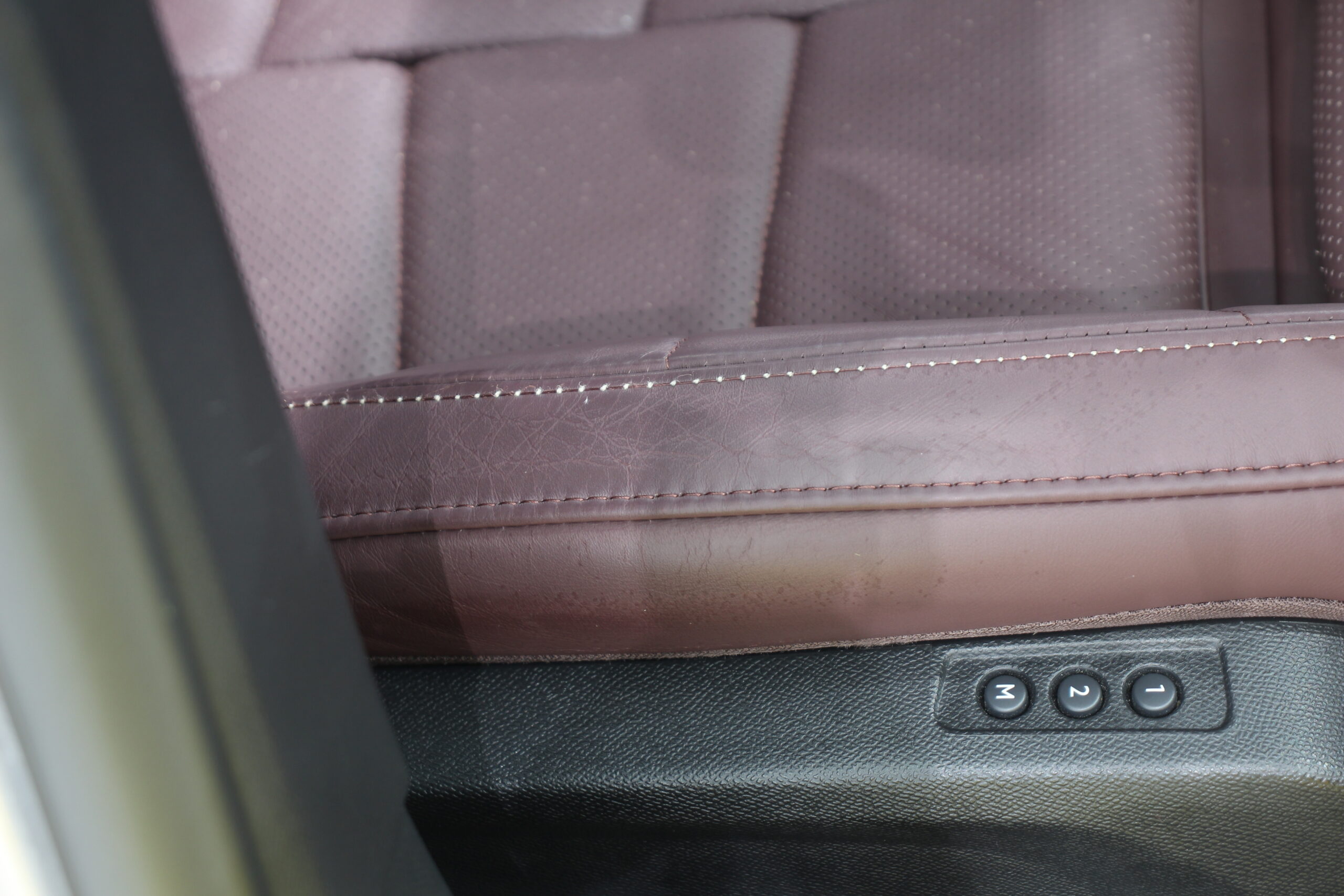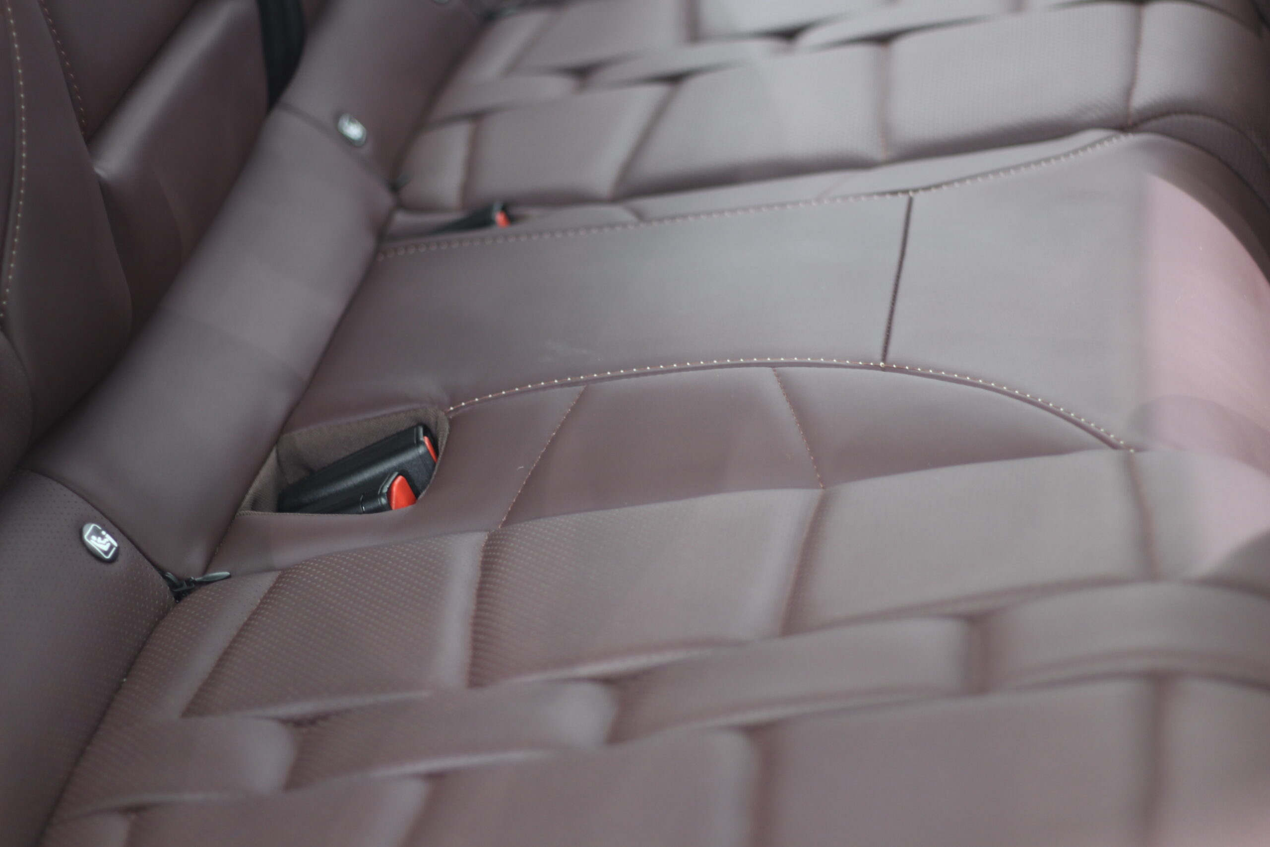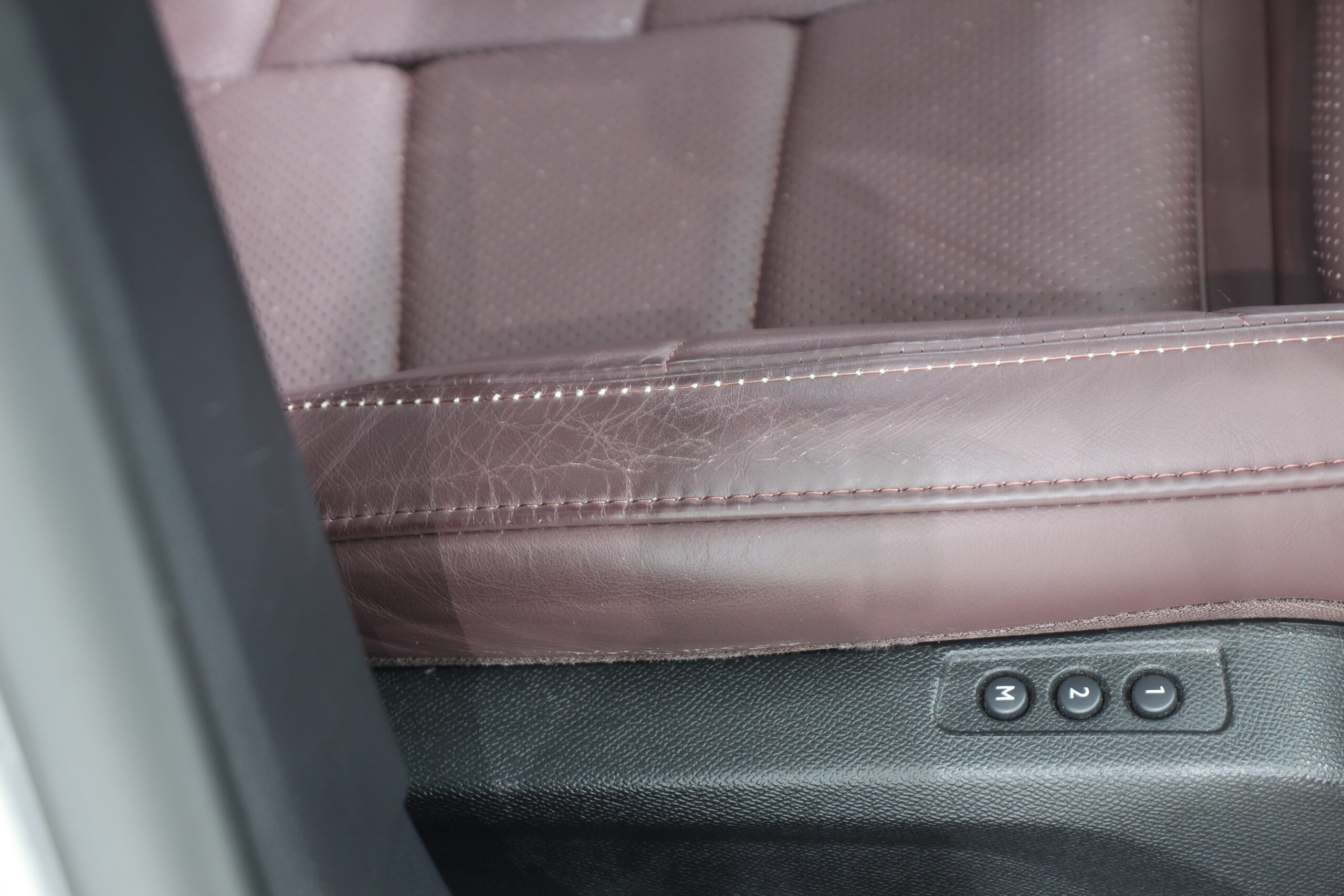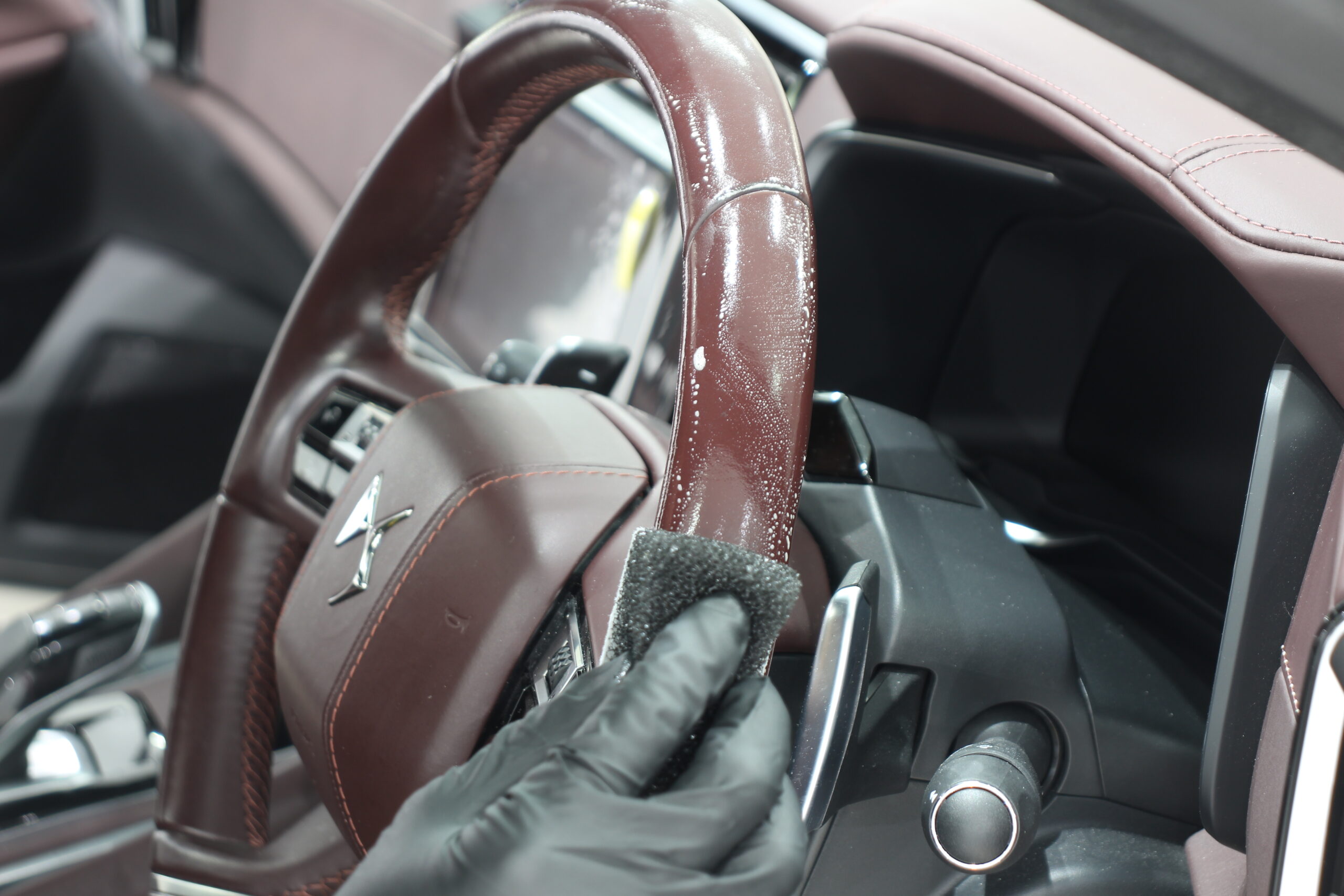 ボルドーカラーの内装レザーにレザーコーティング施工