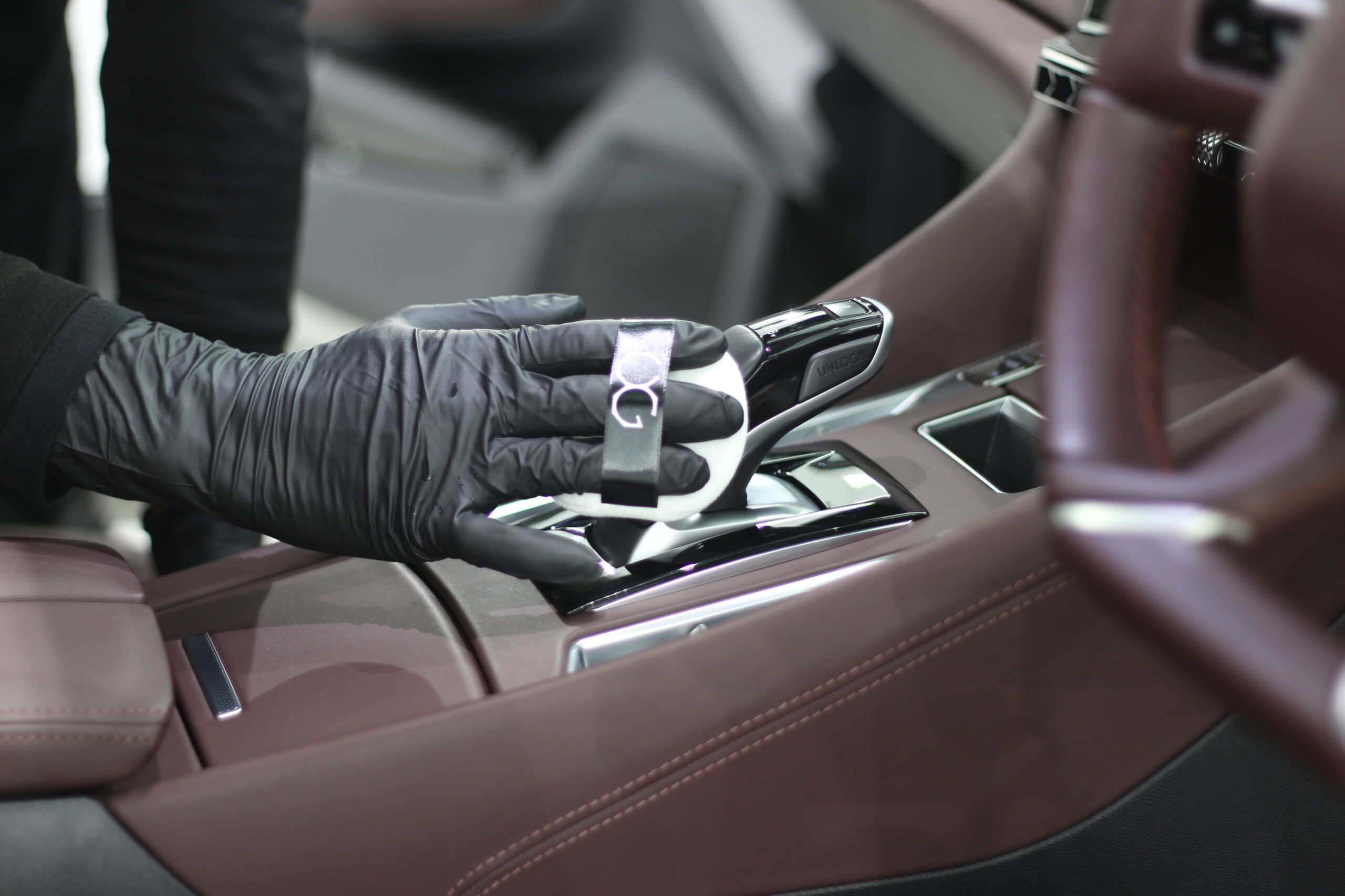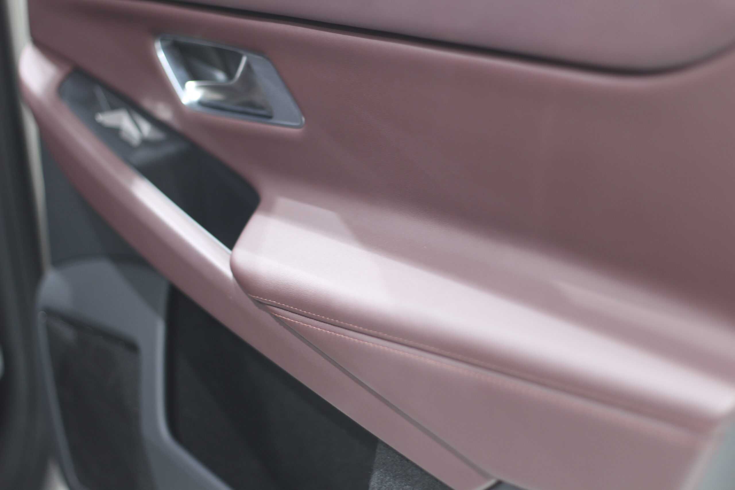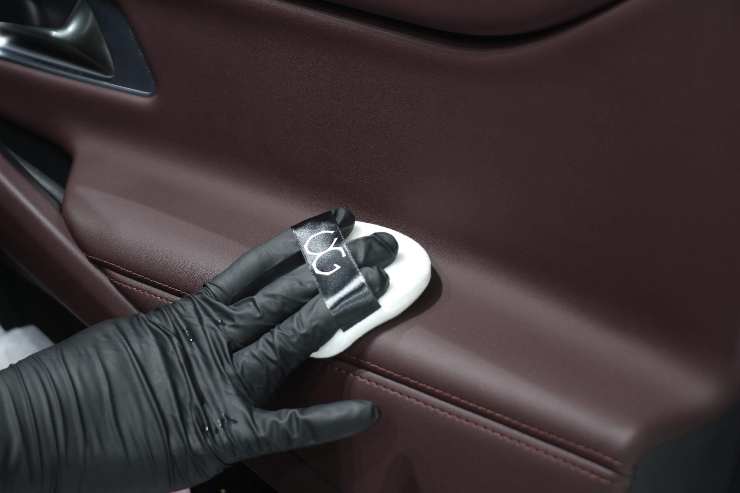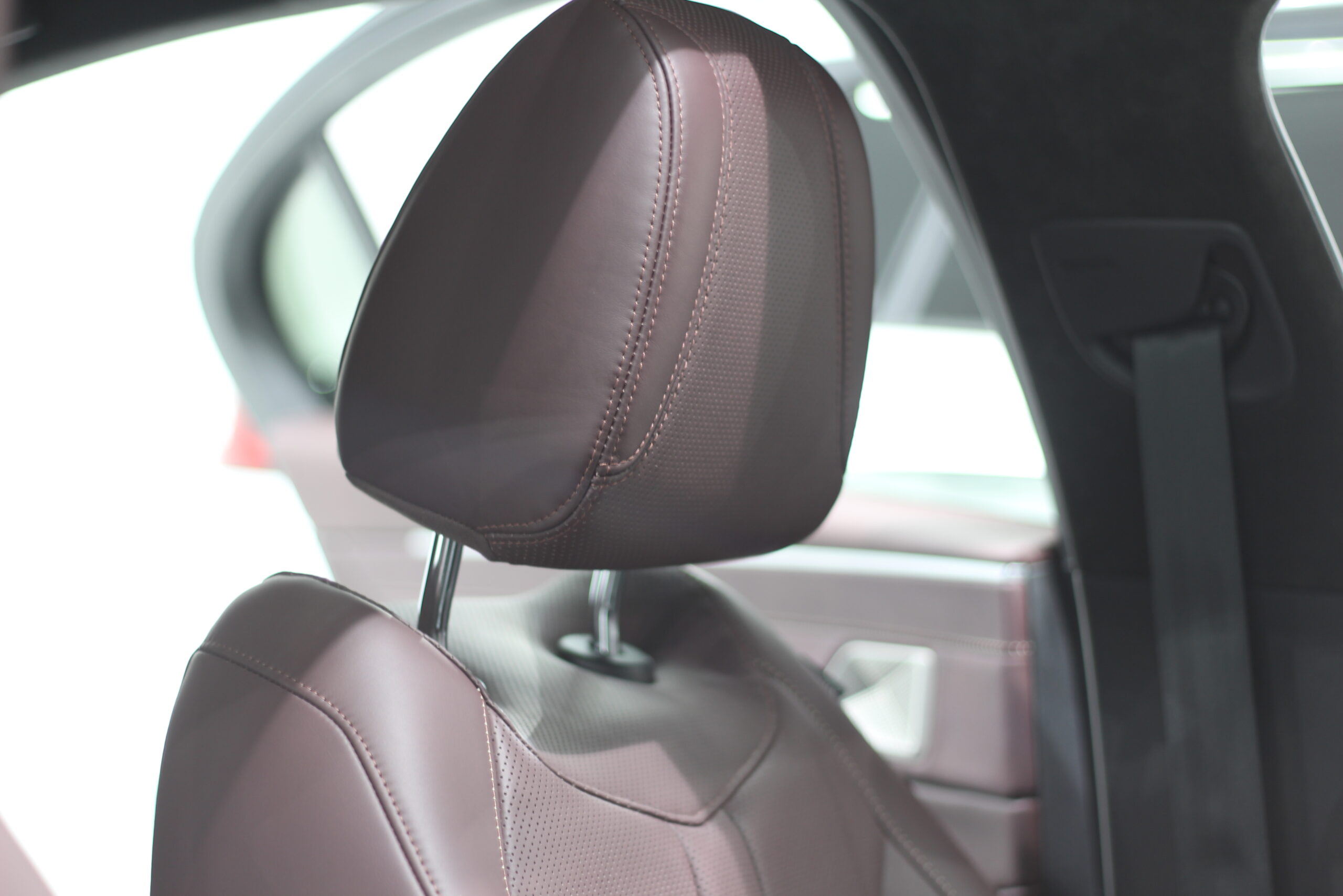 ボルドーカラーの内装レザーにレザーコーティング施工