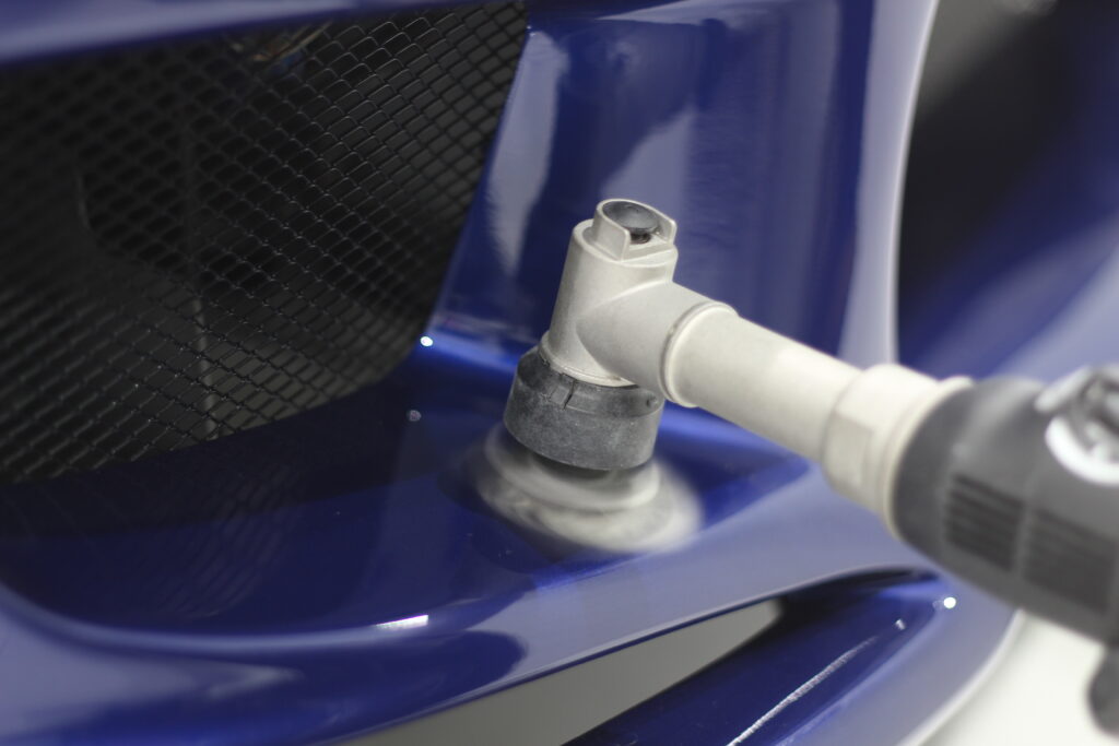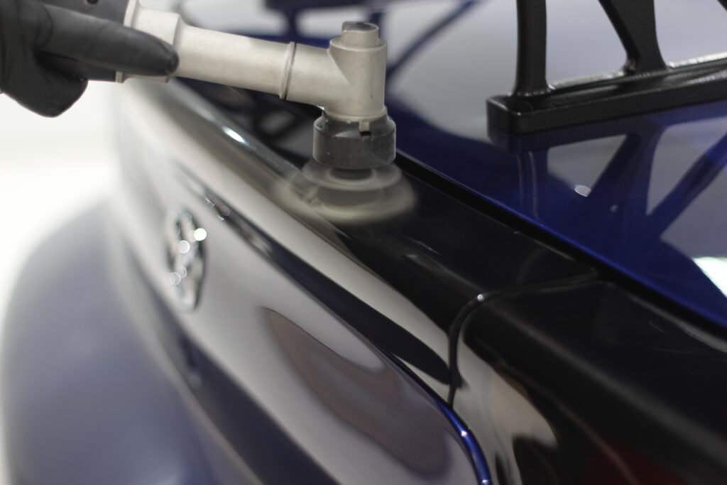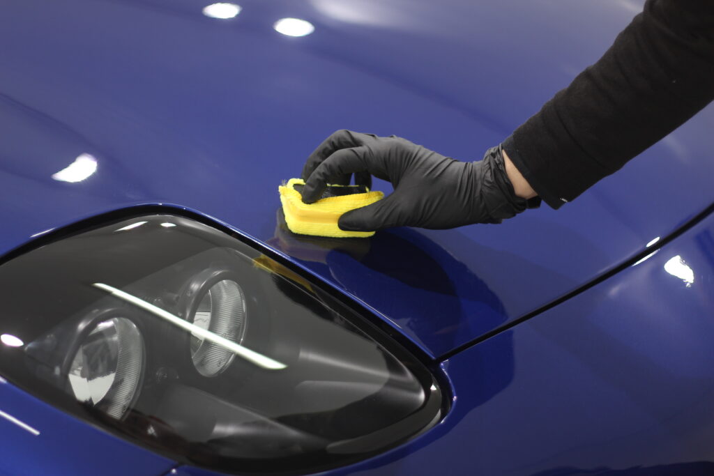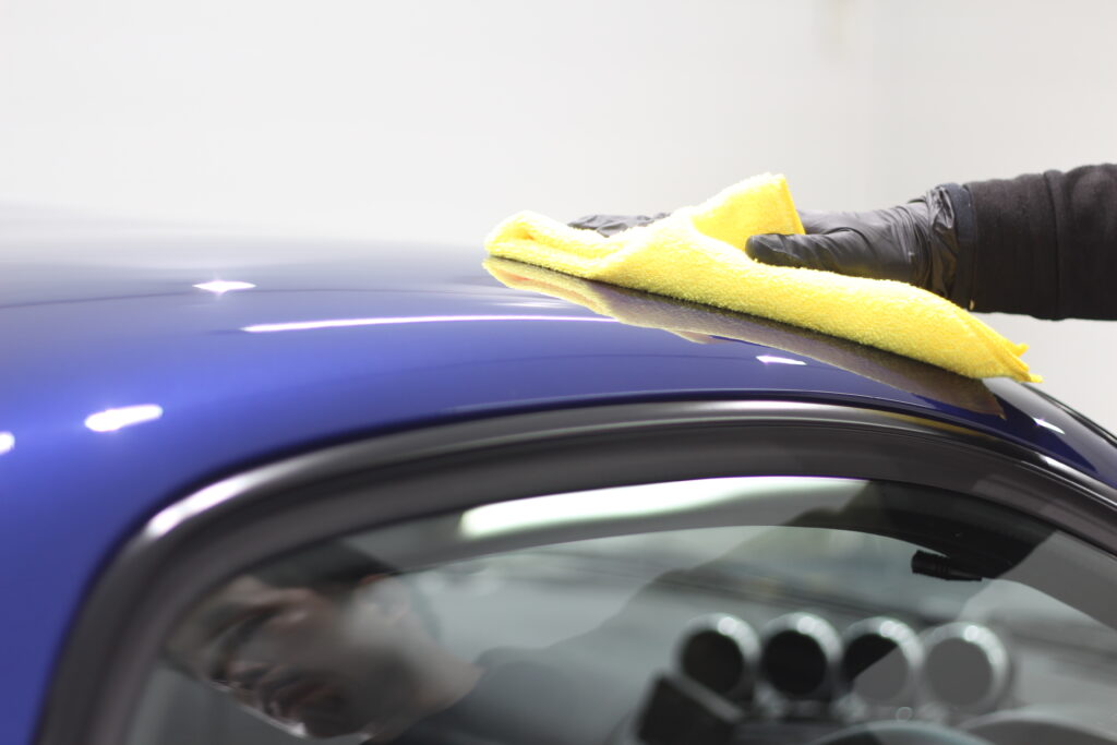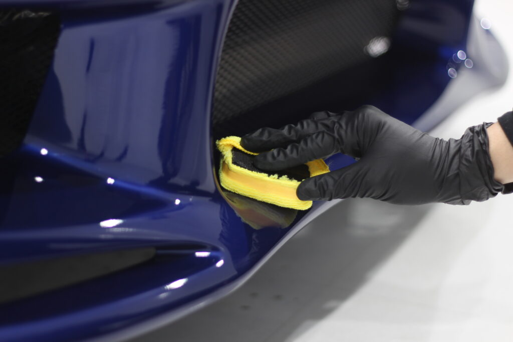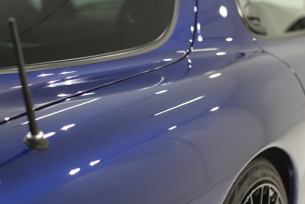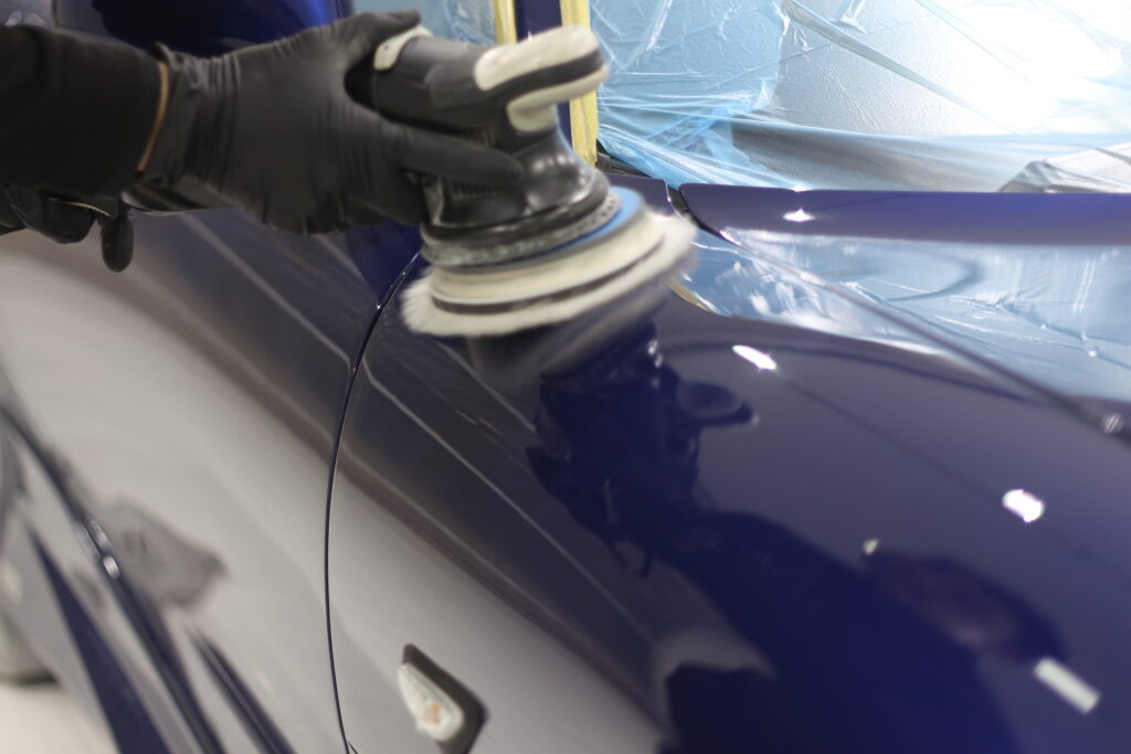 全塗装後にせっかく塗り直した塗装が美しい状態で維持できるようにセラミックコーティングを施工しますが、全塗装後の仕上げは我々の技術にて塗り立ての塗装を磨きすぎないように丁寧に磨いて塗装に曇りなどを除去し下地を作ります。