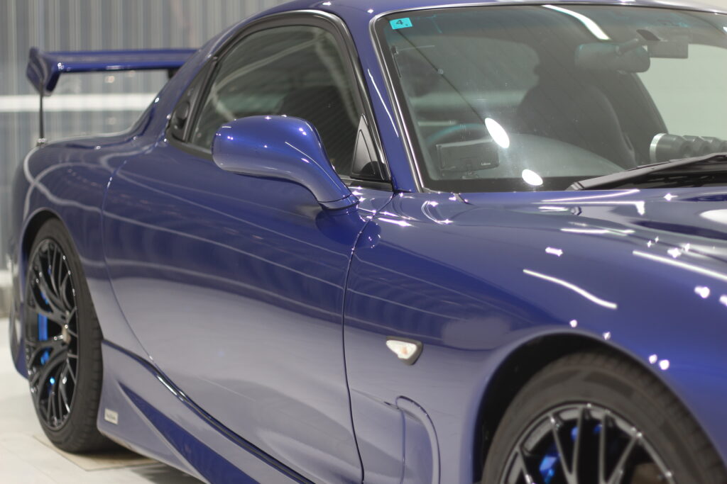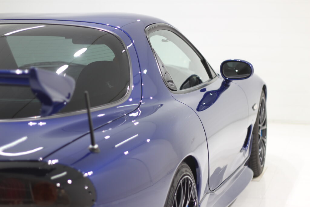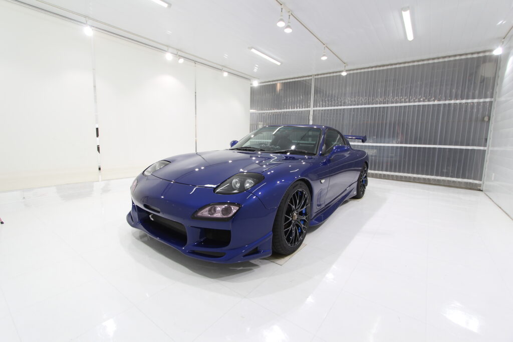 JDMと言うカージャンルの中でいくつもの車種が上がってきますが、形、エンジン、ヒストリーなどRX7は決して外せない一台ではないでしょうか?そんなRX7今では良い個体を見つけることも難しく傷んでしまった車両が多いですが、今回のRX7は大切に所有されている一台で内外装エンジンチューンともに非常に魅力的な一台となっているRX7に外装の塗装を守るセラミックコーティングを施工します。