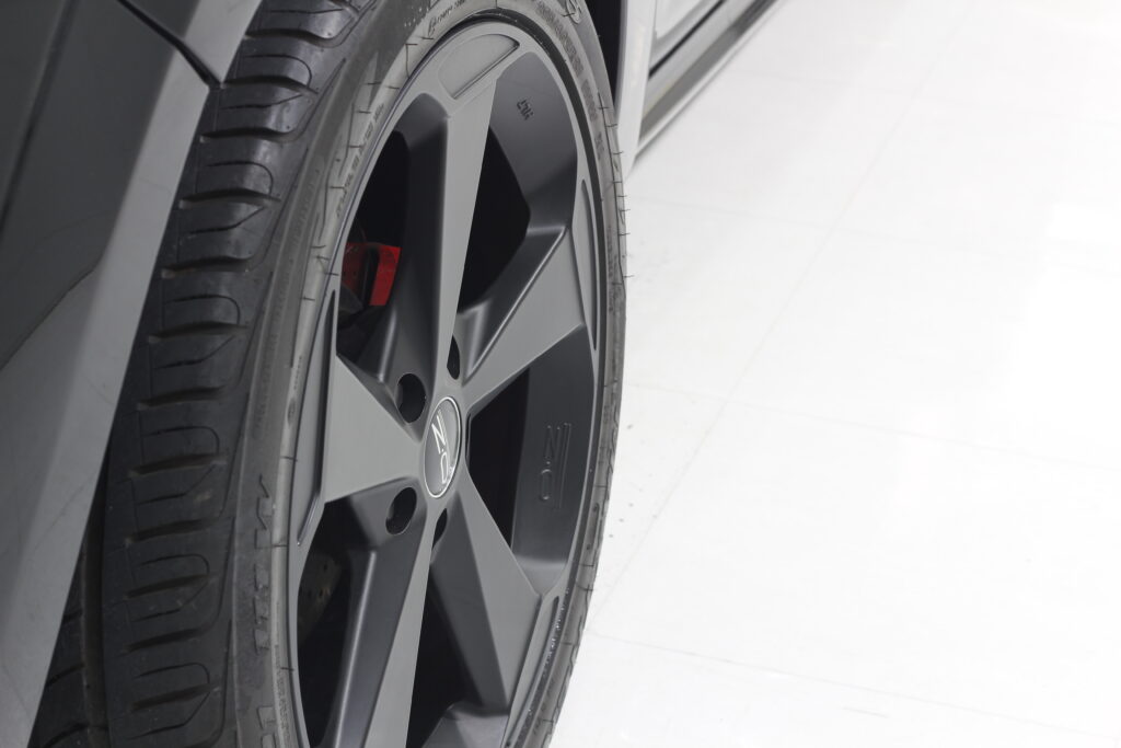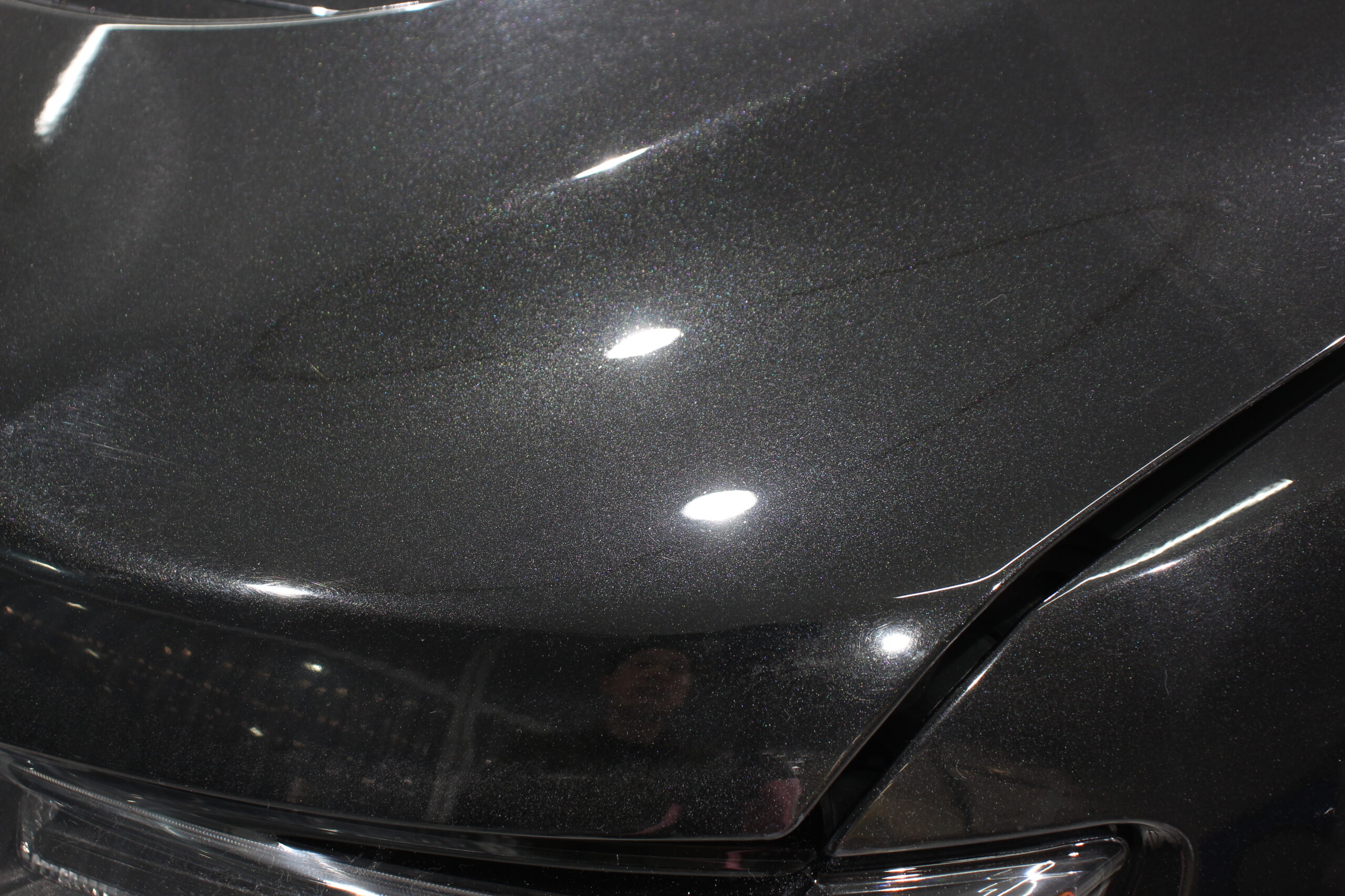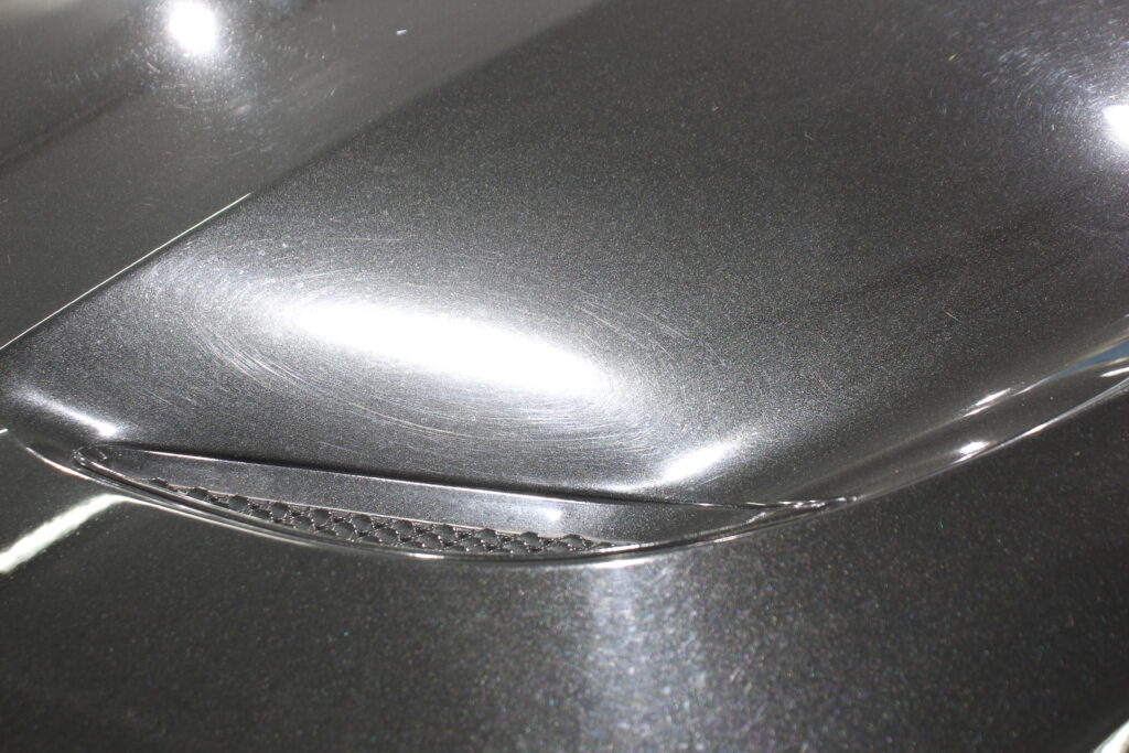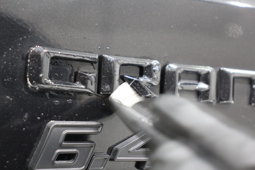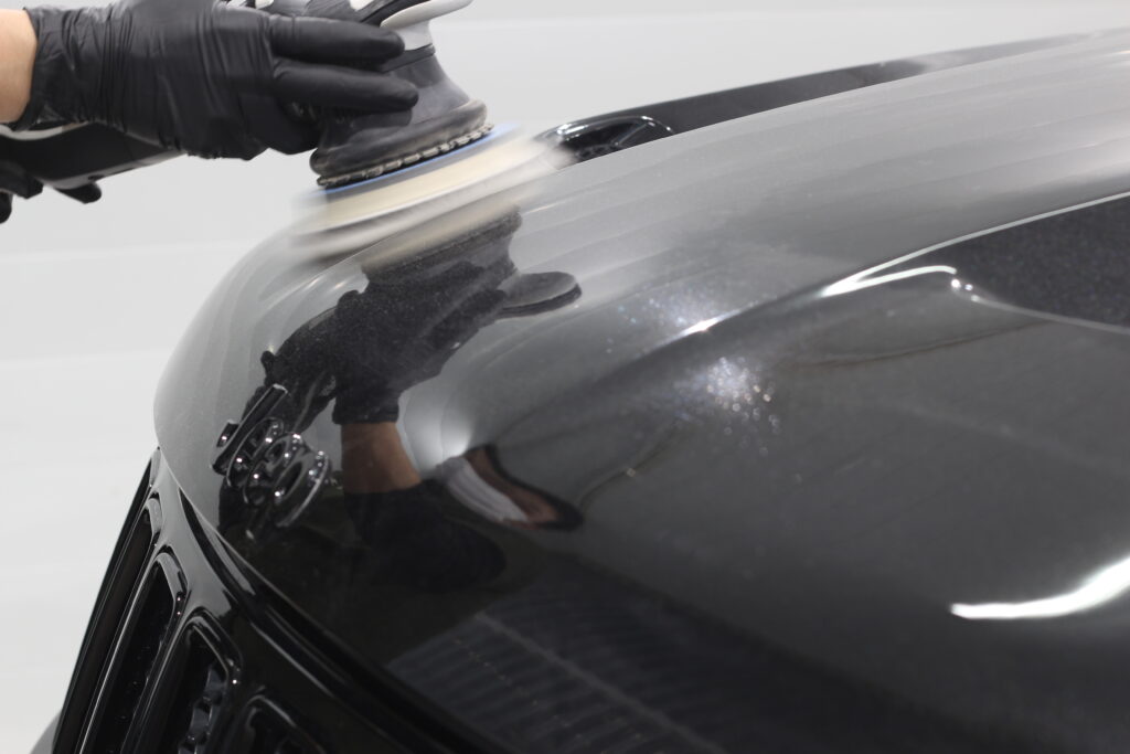 低燃費など一切無視の6,4リッターのエンジンを積んだハイパワーSUVのお車ですが、外装が黒と言うこともあり少し洗車傷などでくすんでしまった塗装面を磨きでリフレッシュさせてからボディーコーティングしていきます。