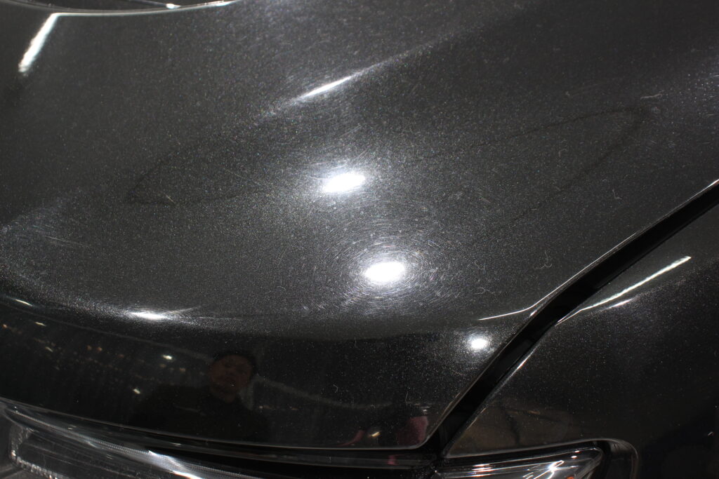 このような大きな車両は洗う頻度が下がりシミや洗車時の傷が蓄積されやすい傾向にありますが、塗装に負担をかけないように磨きでz除去いたします。