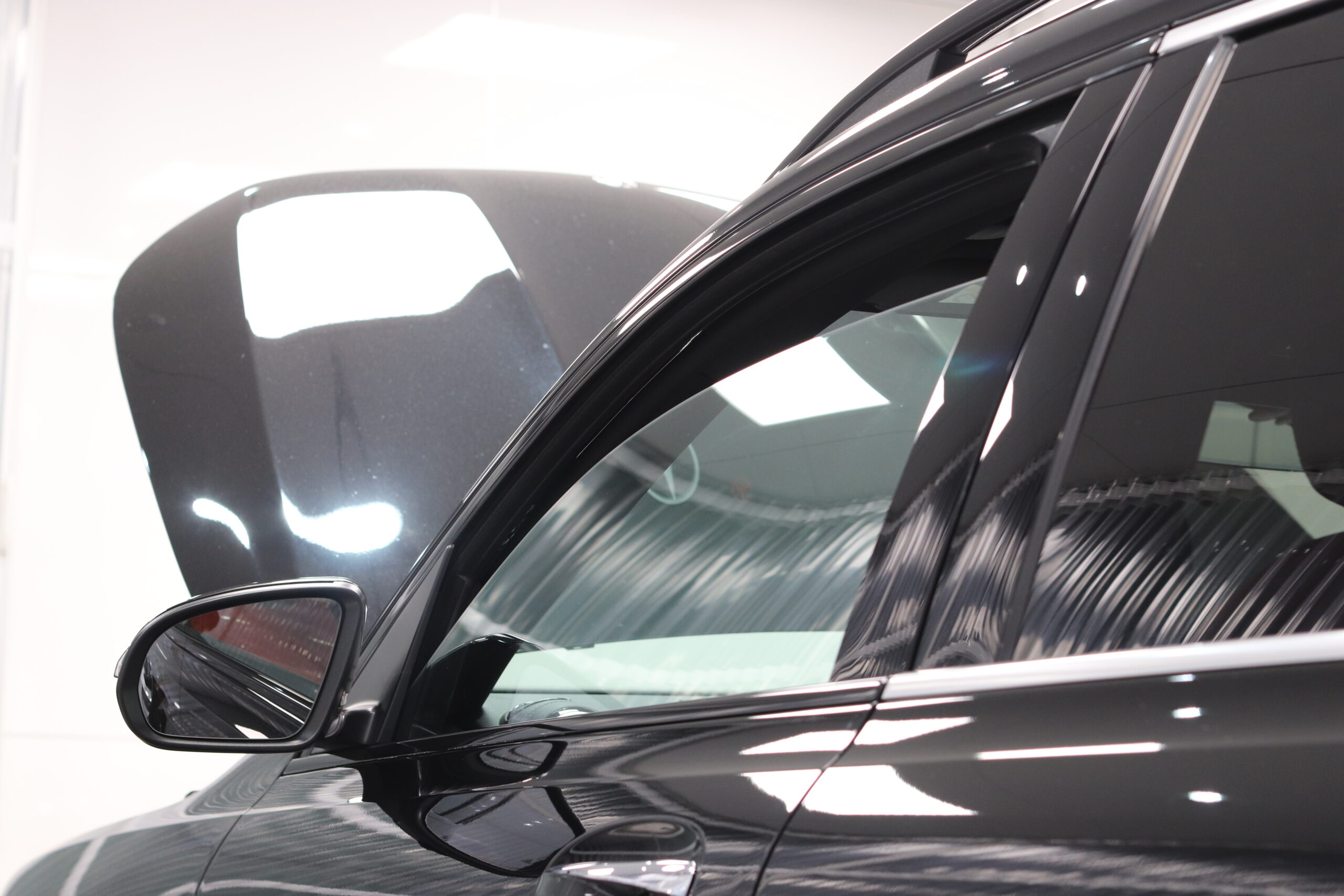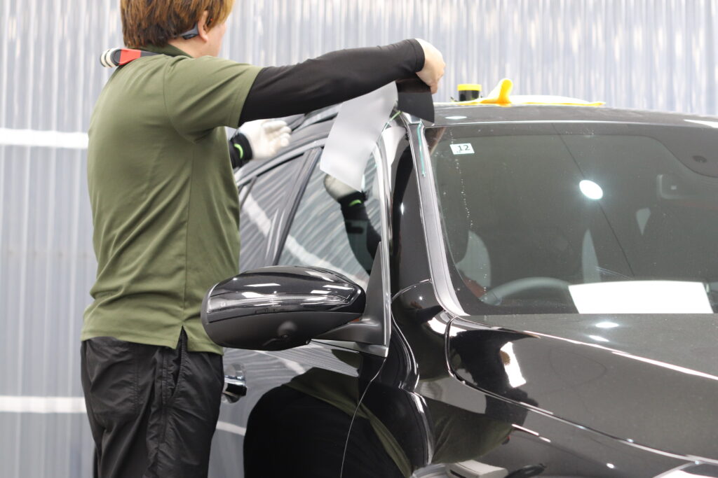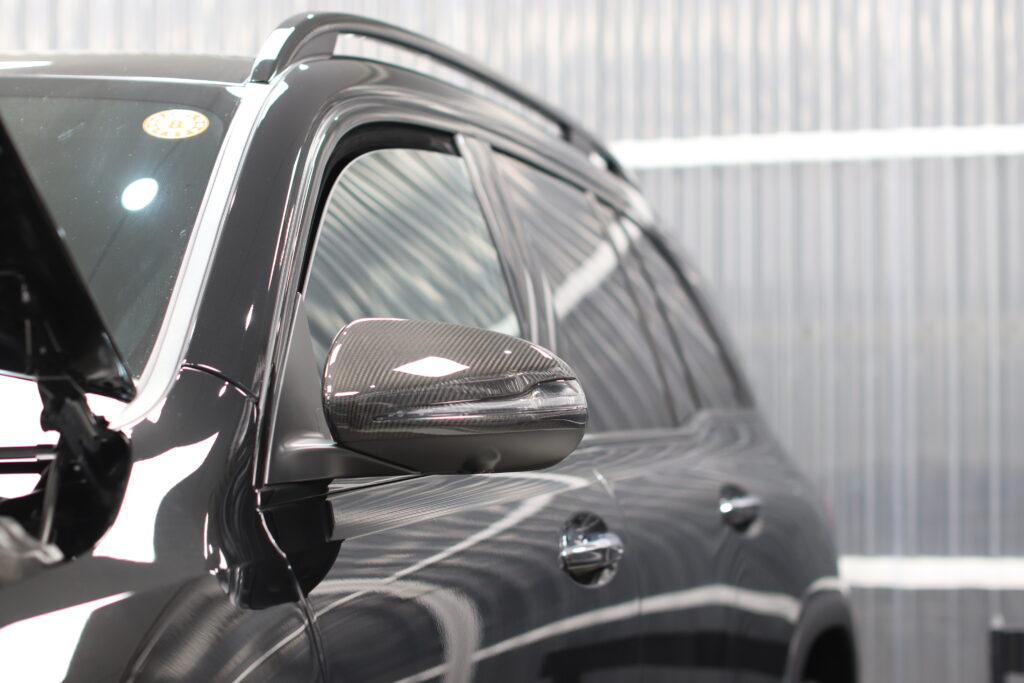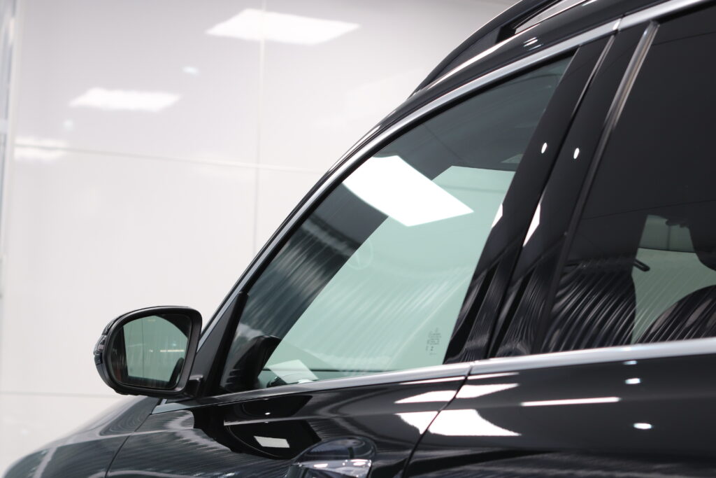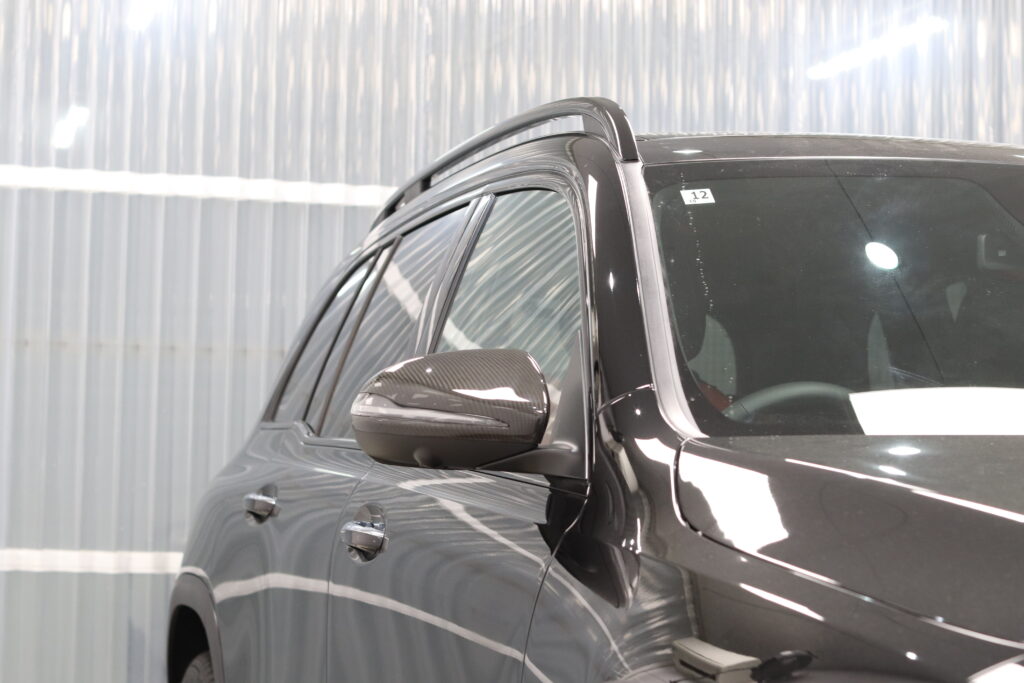 メルセデスベンツGLBの窓枠モールとルーフレールをフィルムで加工