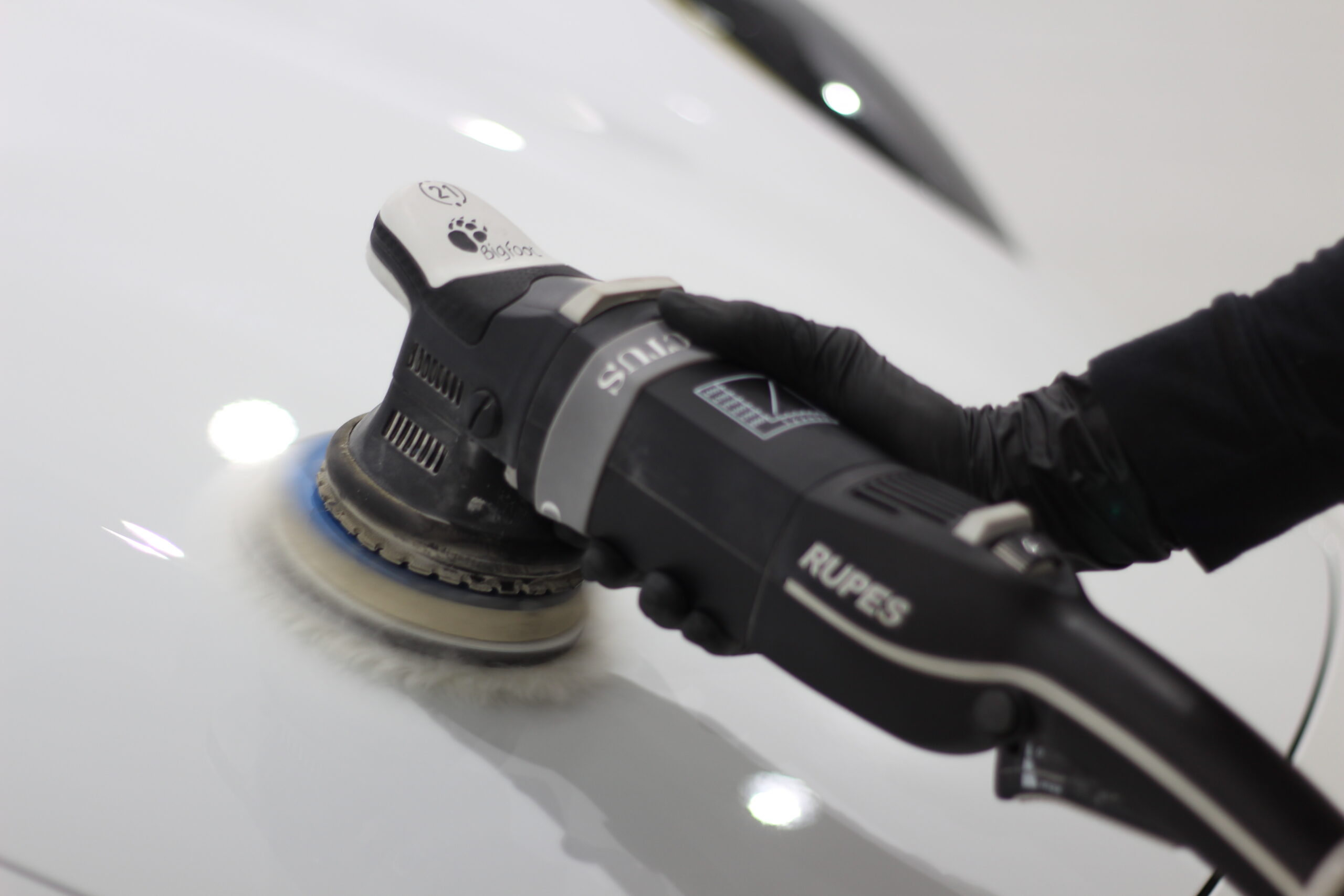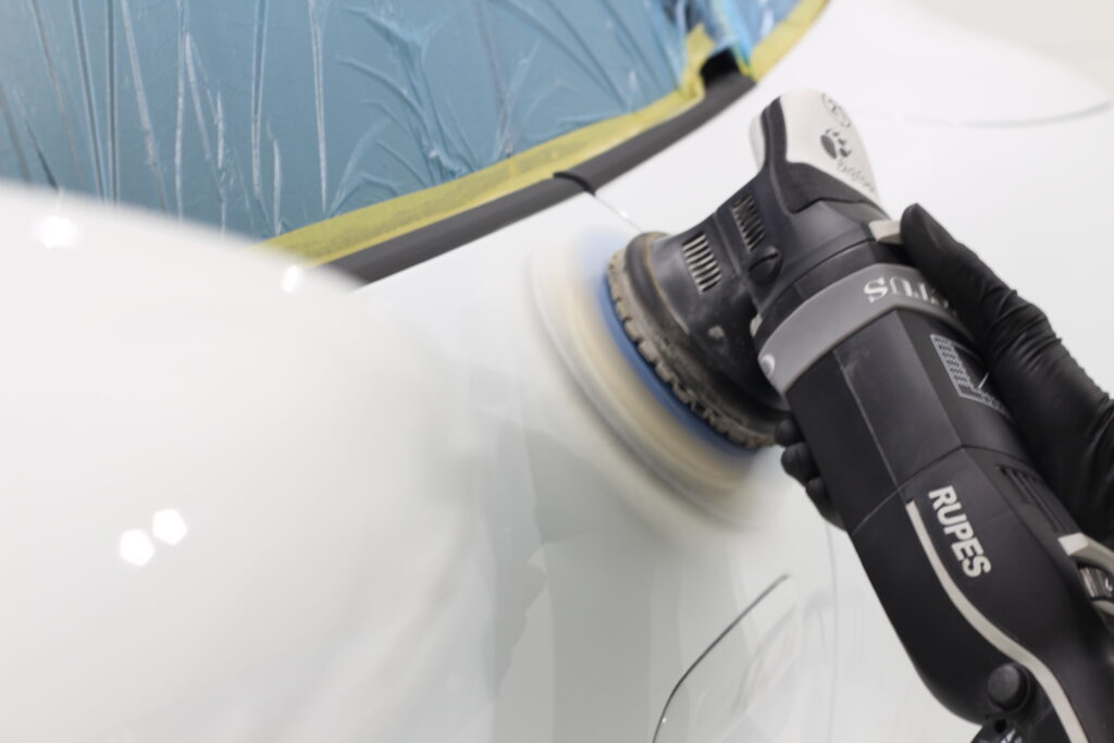 低走行で綺麗な状態を一度コーティングできる下地に整えるために磨きで表面を整えます。