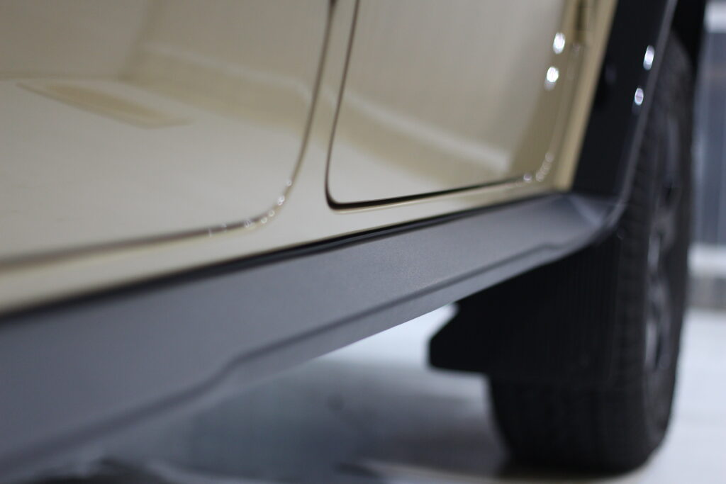 洗いにくい大きさや未塗装樹脂部分の色褪せが原因で少し車が疲れた様な印象を受けますが、これは主に黒い部分は黒く、艶のある部分は艶々になっていないアンバランスな状態が原因ですので、クリーニングや磨きやコーティングなどで状態をバランスさせて全体の調和を整えます。