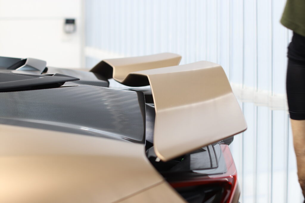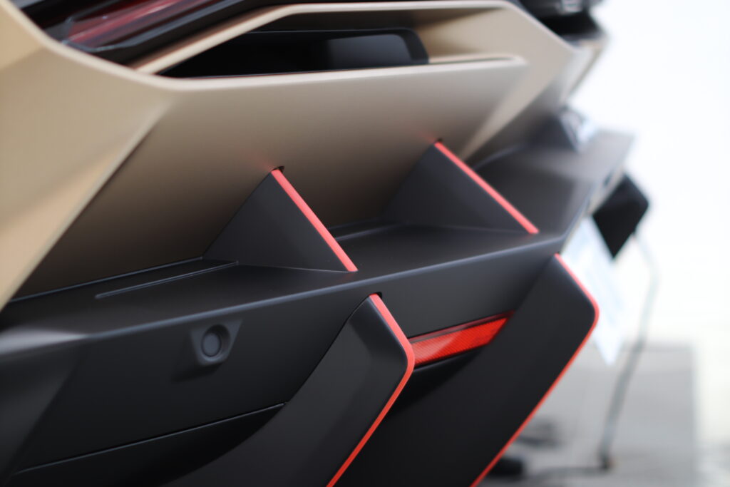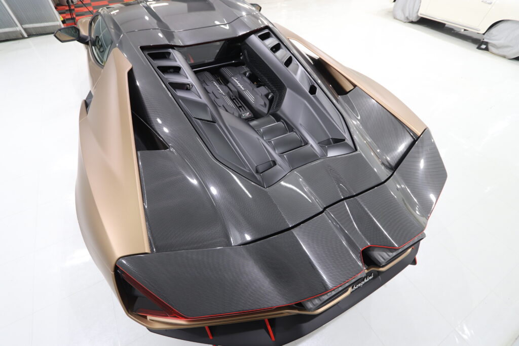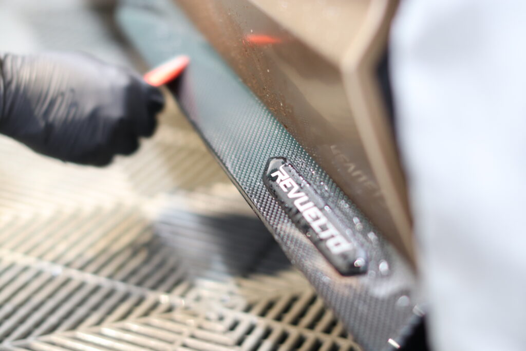 スーパーカーも新し時代の流れに乗りエンジン+モーターのHPEVになり今回紹介するランボルギーニ・レヴエルトも無音のスタートには驚きますが、今回は既に目立つこちらのレヴエルトのオーナー様より、かっこよくしたいとご相談いただきお任せフィルムカスタムで加工させていただきました。