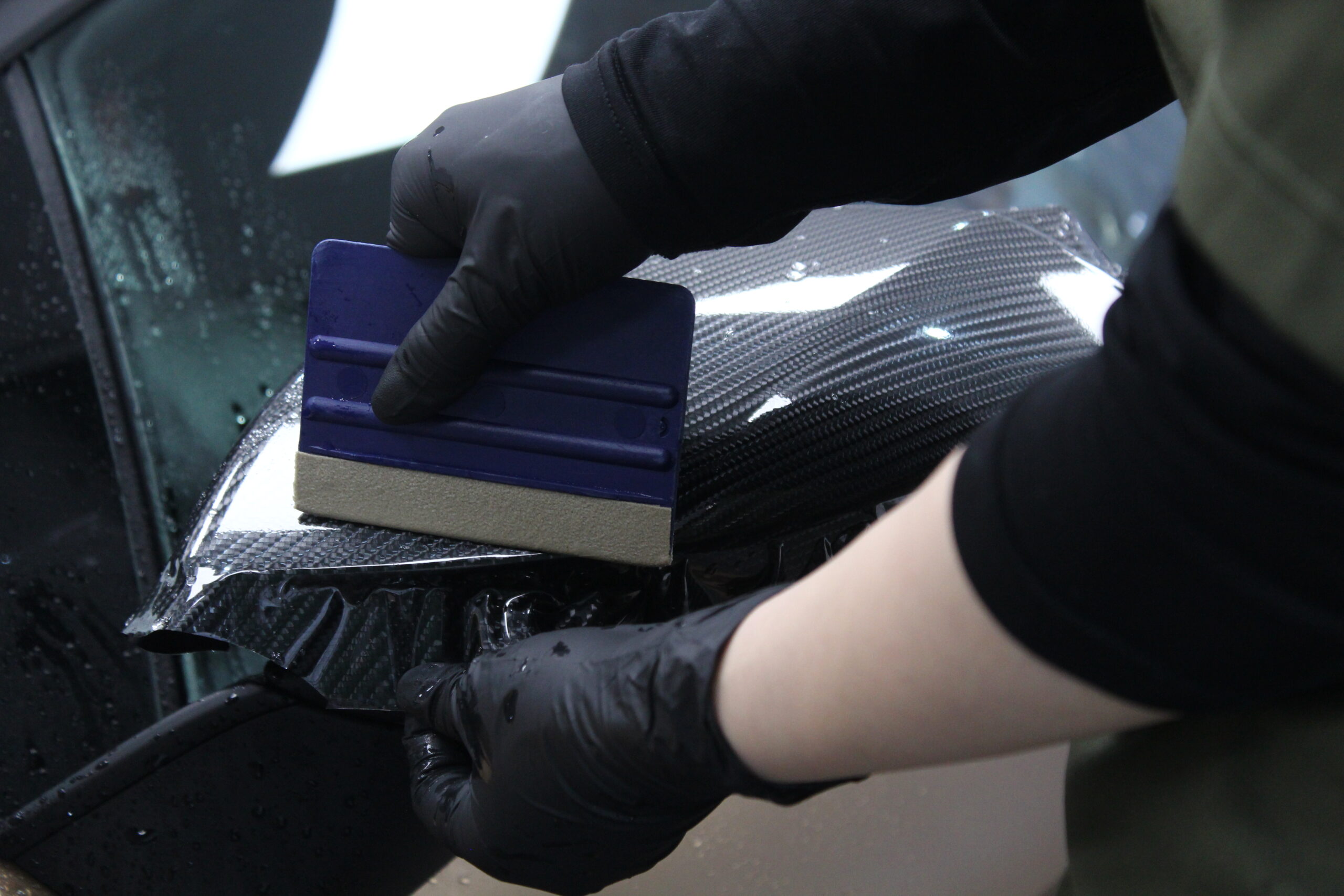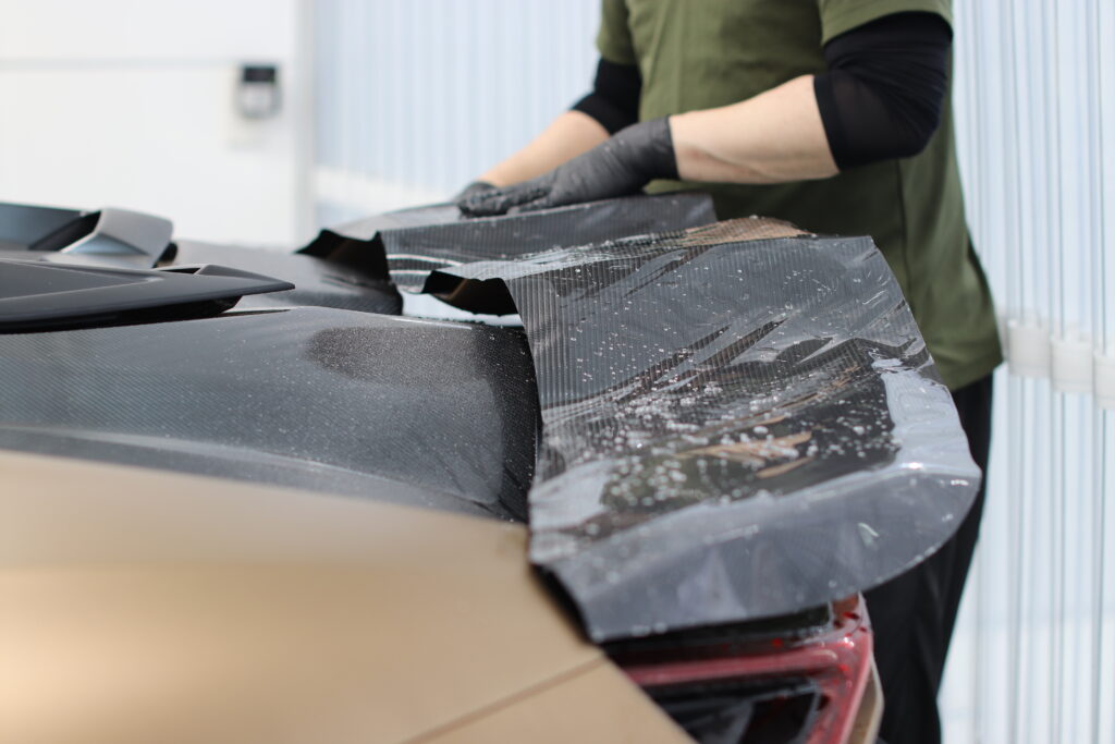 カーボン調のプロテクションフィルムでカスタム施工。